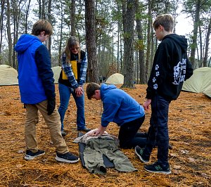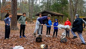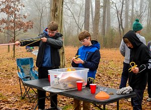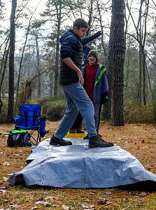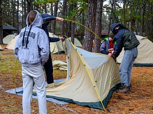 We camped for the weekend at Camp Horseshoe in Rising Sun, MD. We camped in the Camp Craft area and set up Patrol cooking under the Goodman Pavilion. The adults cooked and ate under the pavilion in Camp Craft. The temperature on Saturday morning was 29°F earning everyone who camped both nights 3 Texas Tough Points.