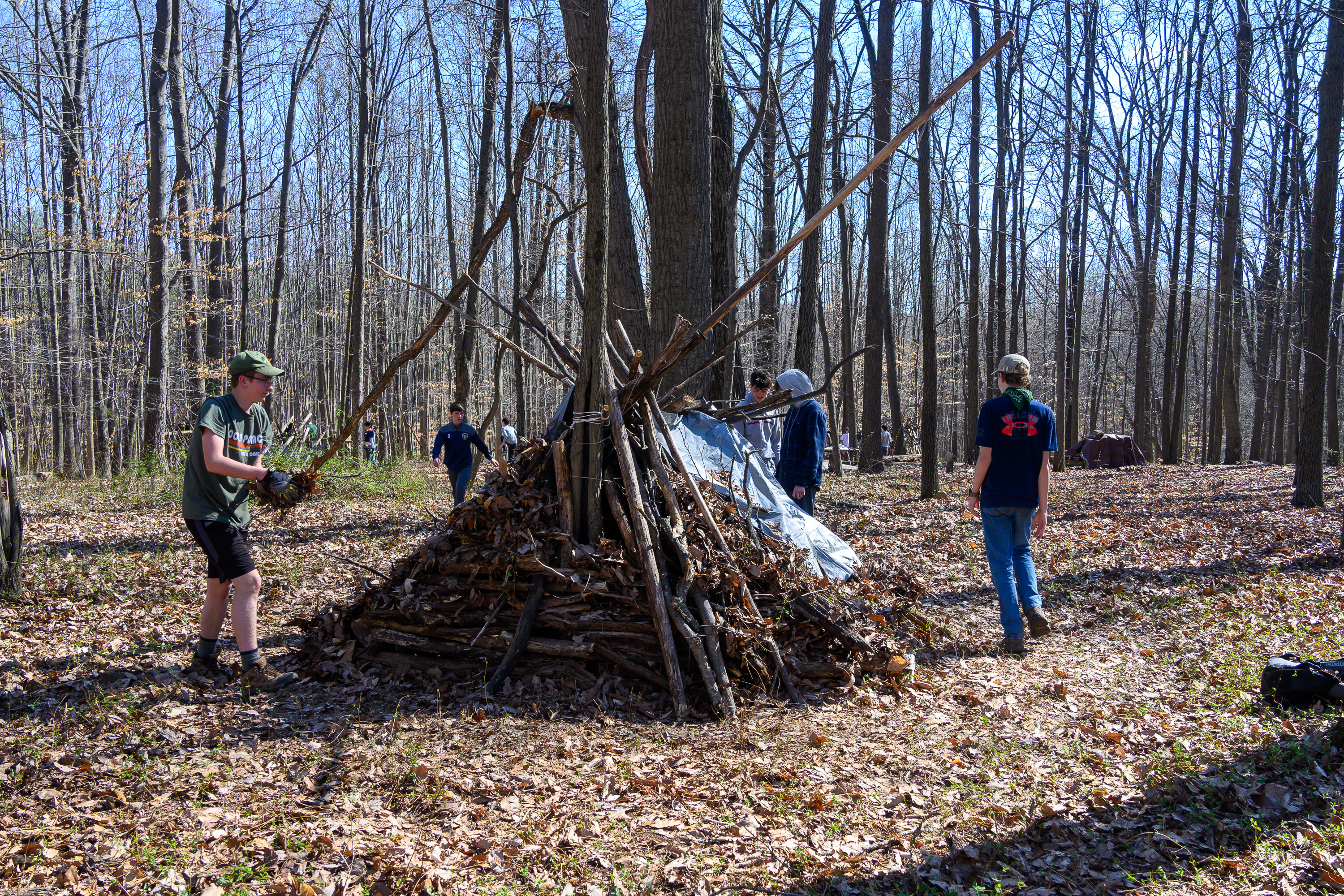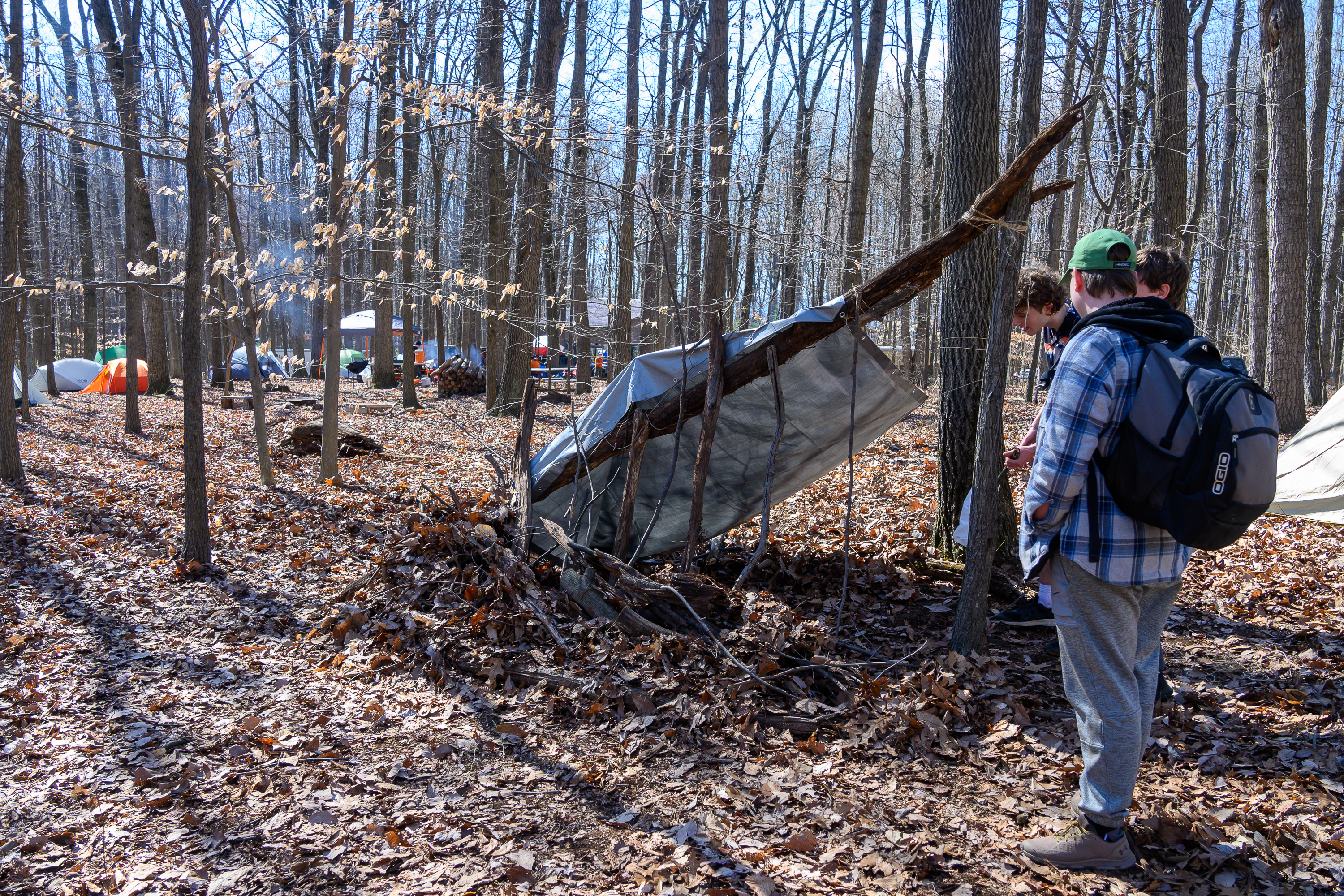Our March 2024 camping trip was to Walkersville Watershed in Walkersville, Maryland on the the 15-17 March. This was our first time camping here and the consensus of scouts and adults is that we are coming back. Saturday's main program was emergency shelter building. After the shelters were judge there were a couple of capture the flag games played involving the shelters. Some scouts slept overnight in several of the shelters.