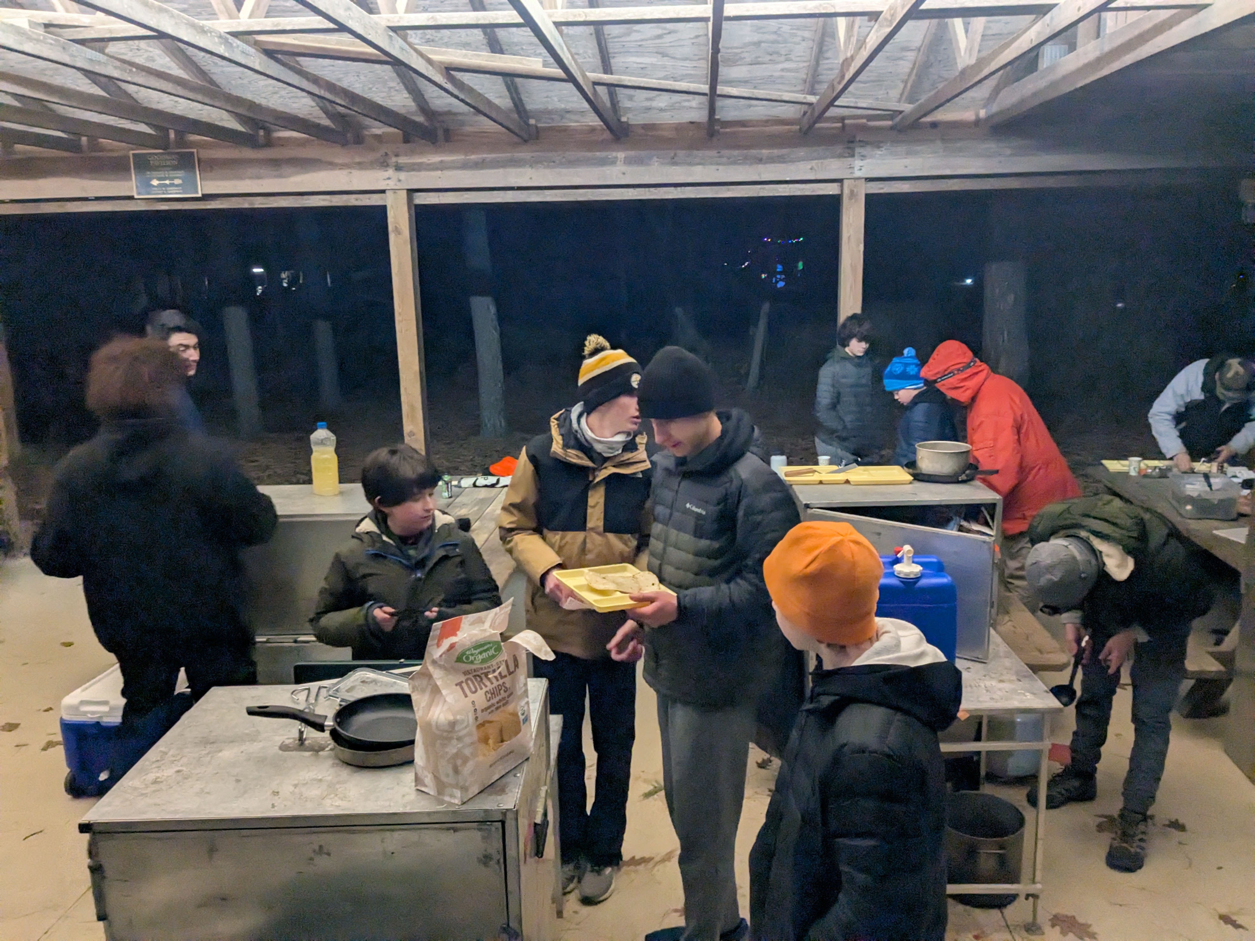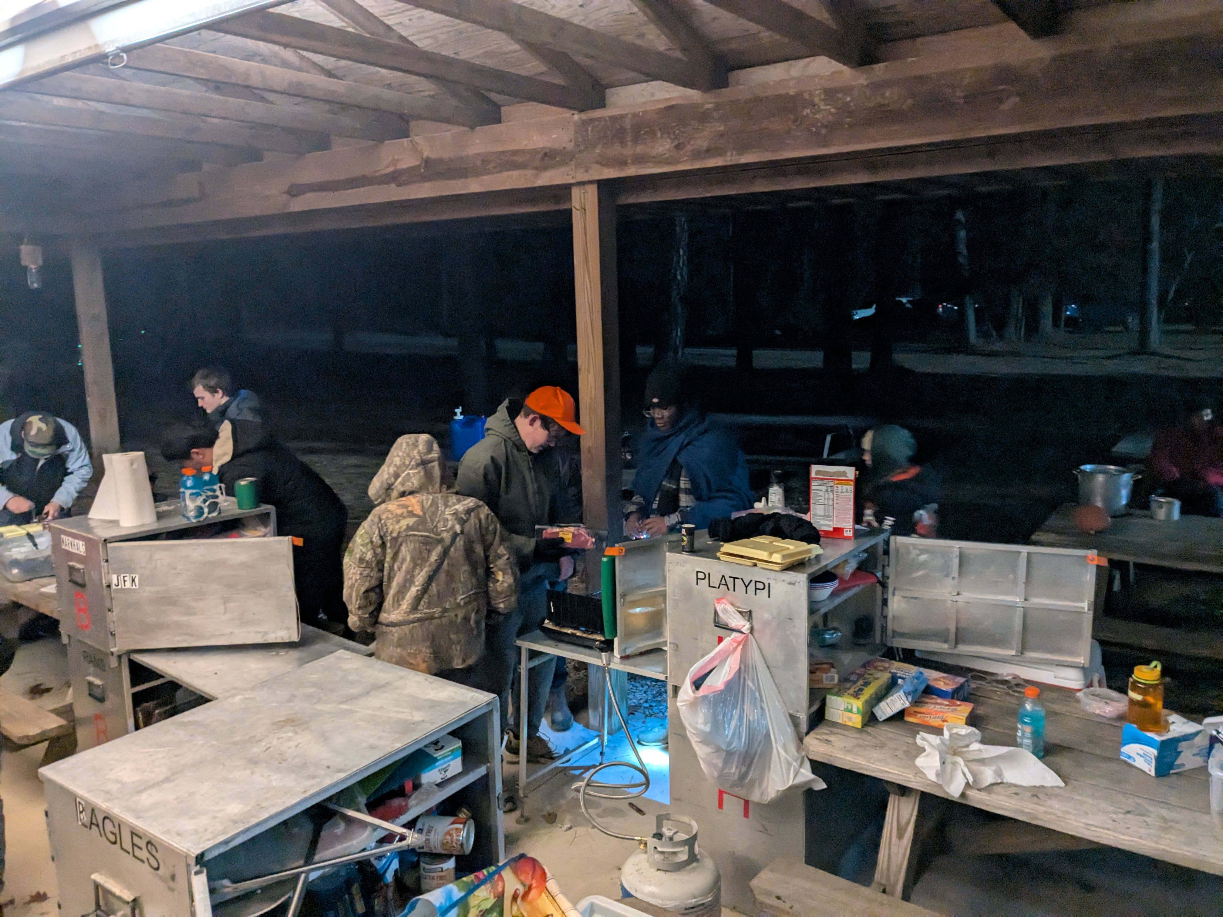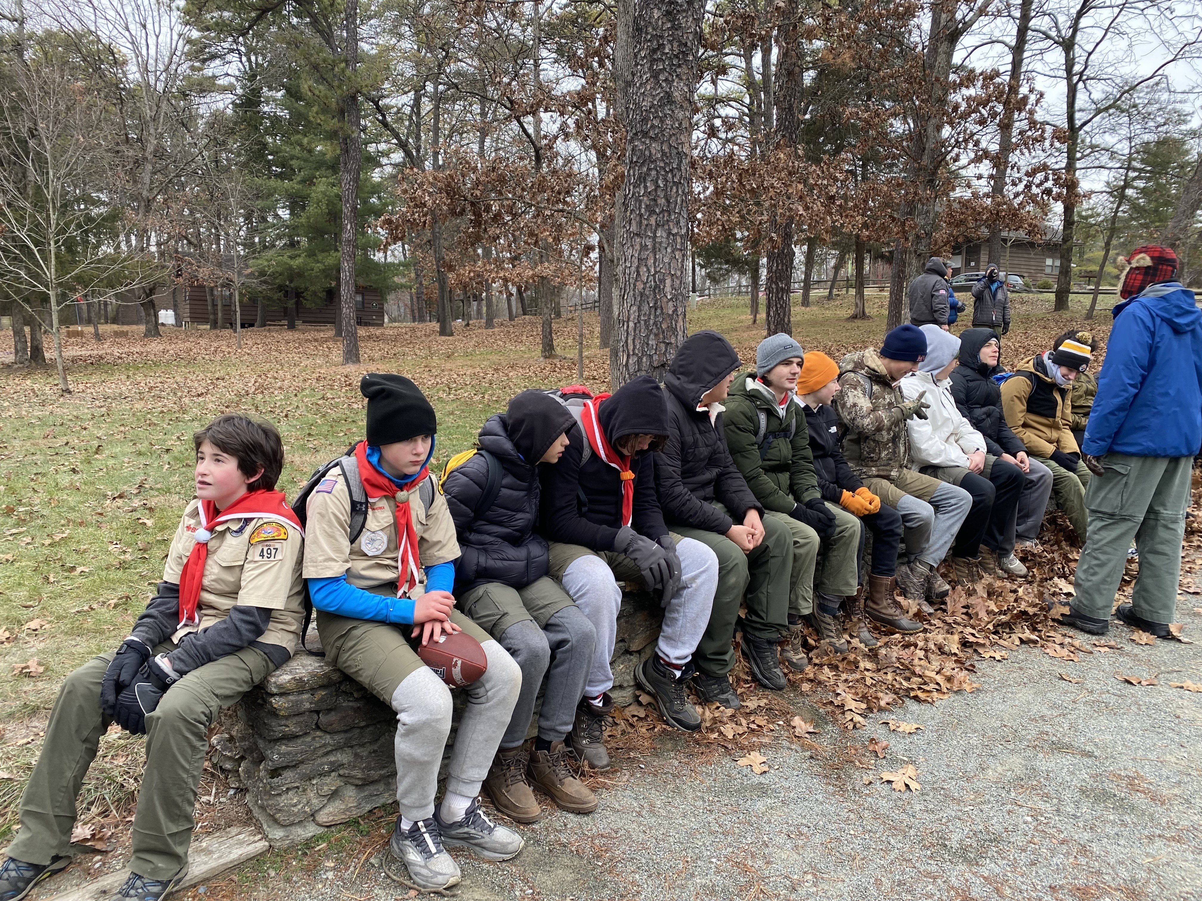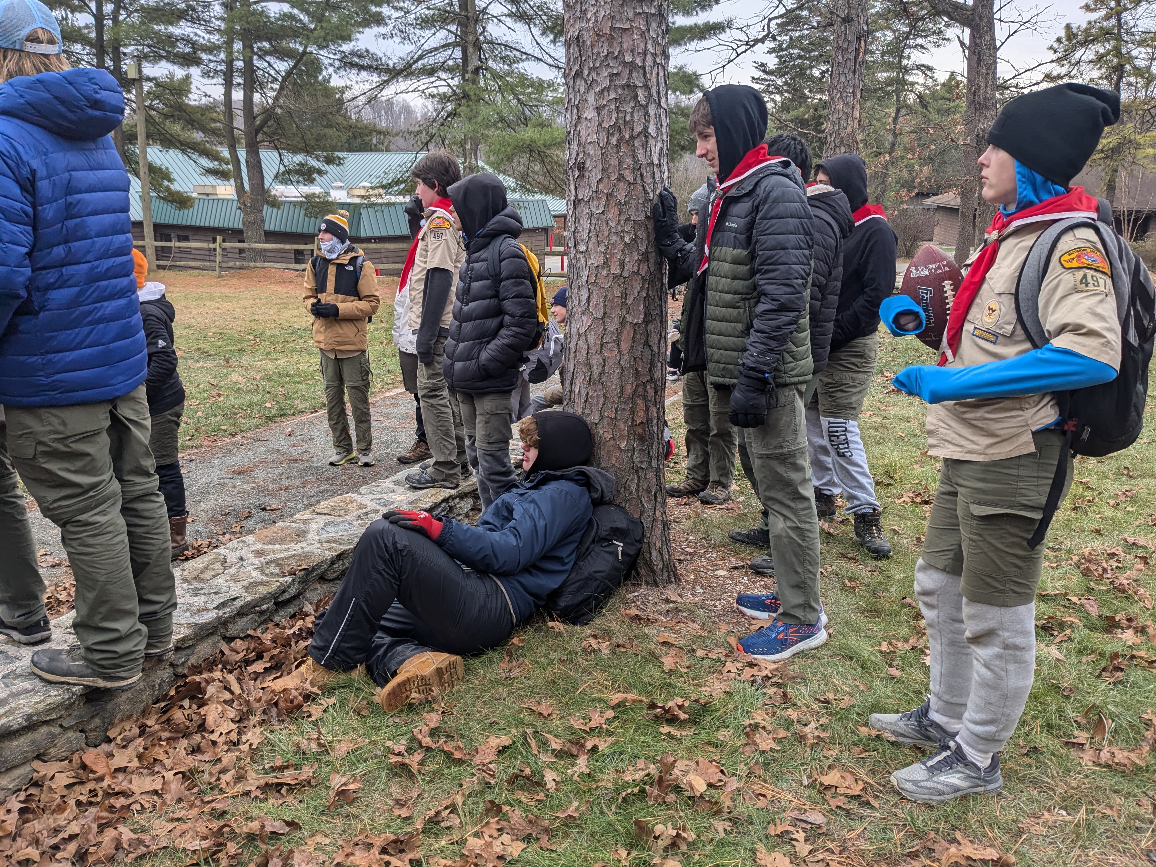 On December 13-15, 2024 we camped in the Campcraft Area and used Goodman Pavilion for patrol cooking at Camp Horseshoe in Rising Sun, MD.The overnight low temperature on Saturday morning was 22°F and on Sunday it was 20°F. Scouts and adults who camped both nights in an unheated environment earned 23 Texas Tough Points for the weekend.
