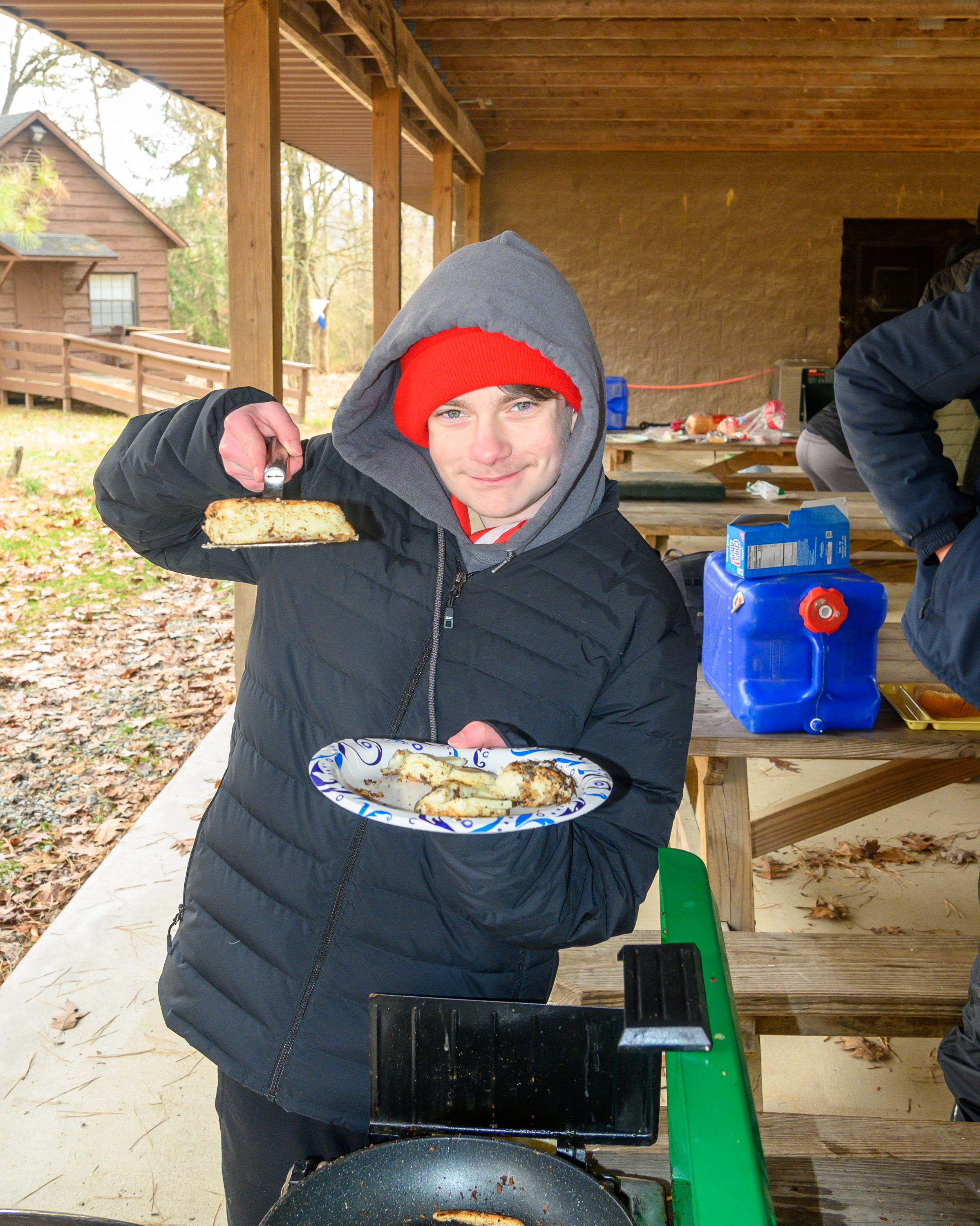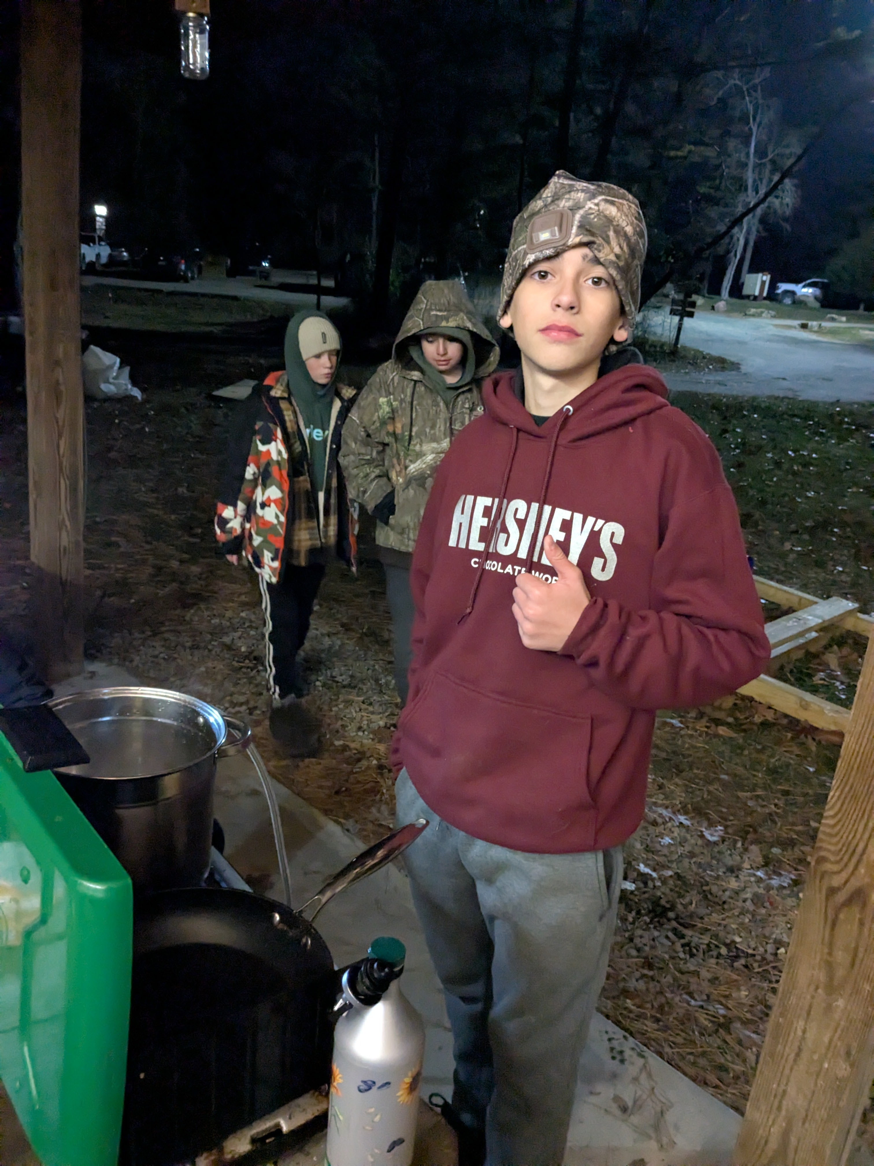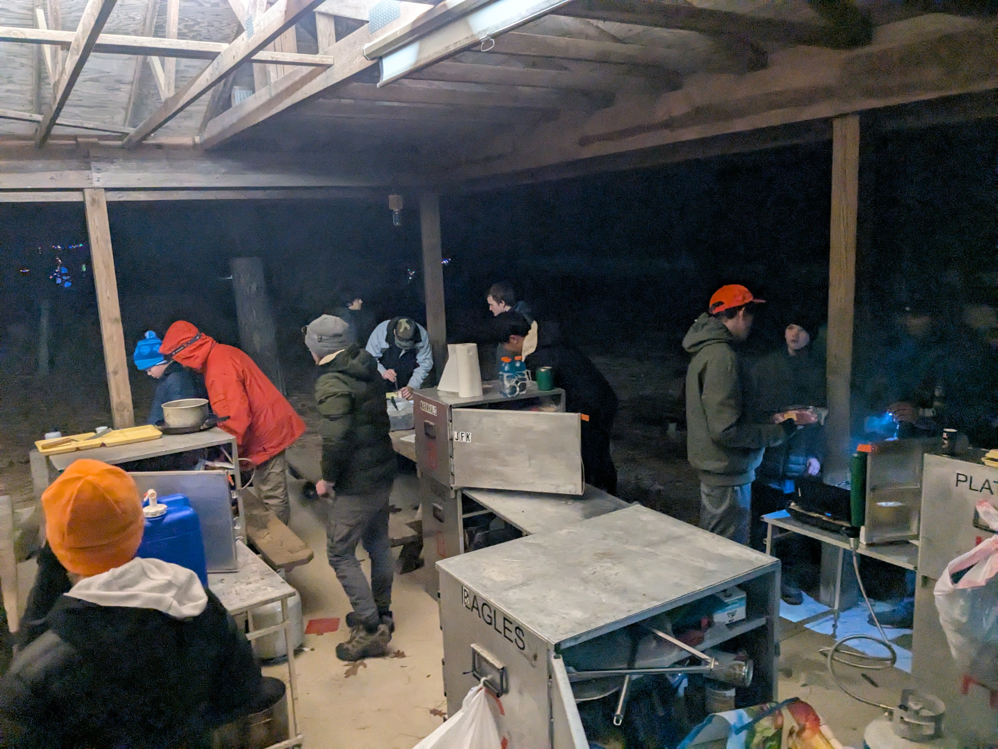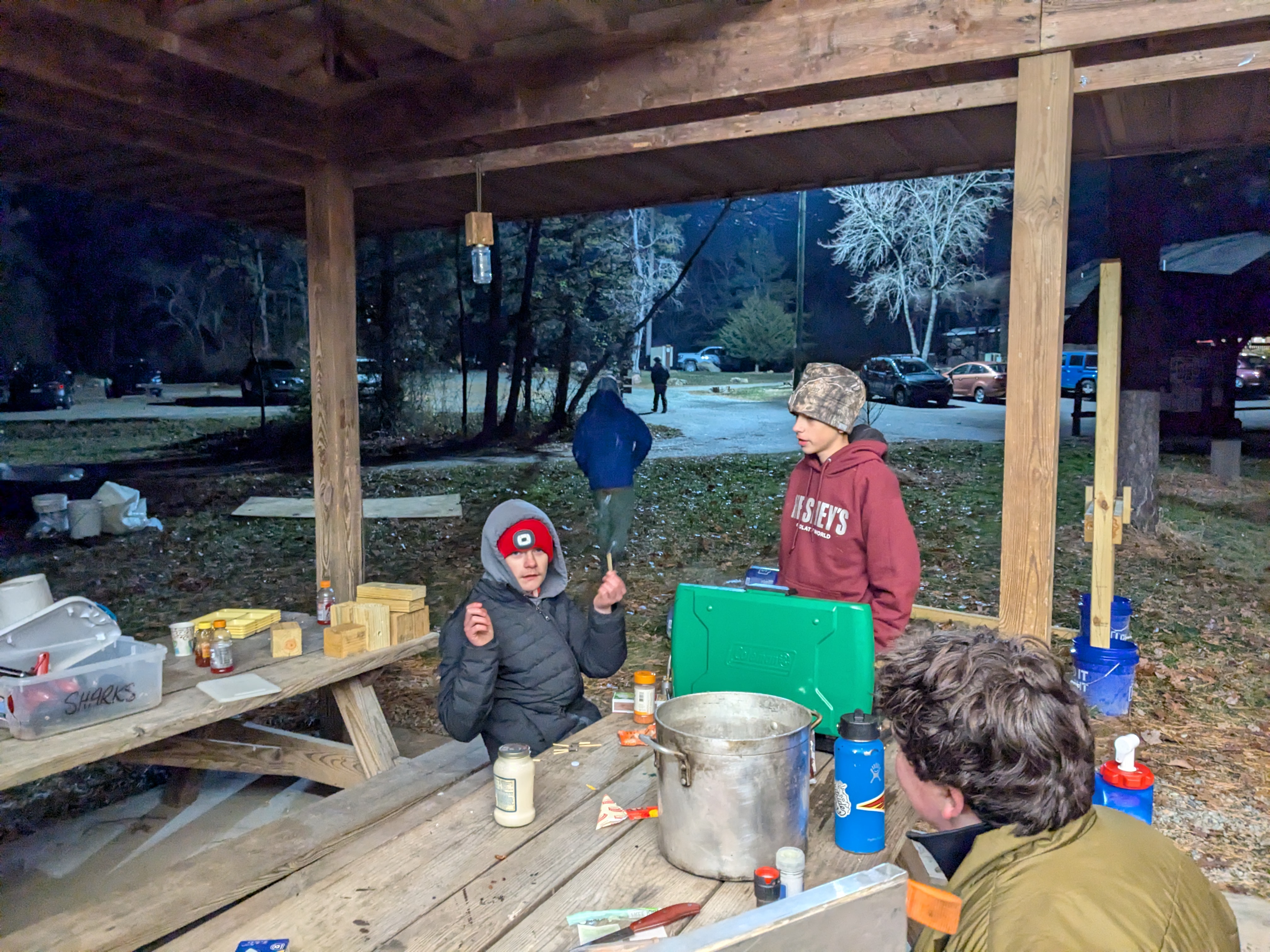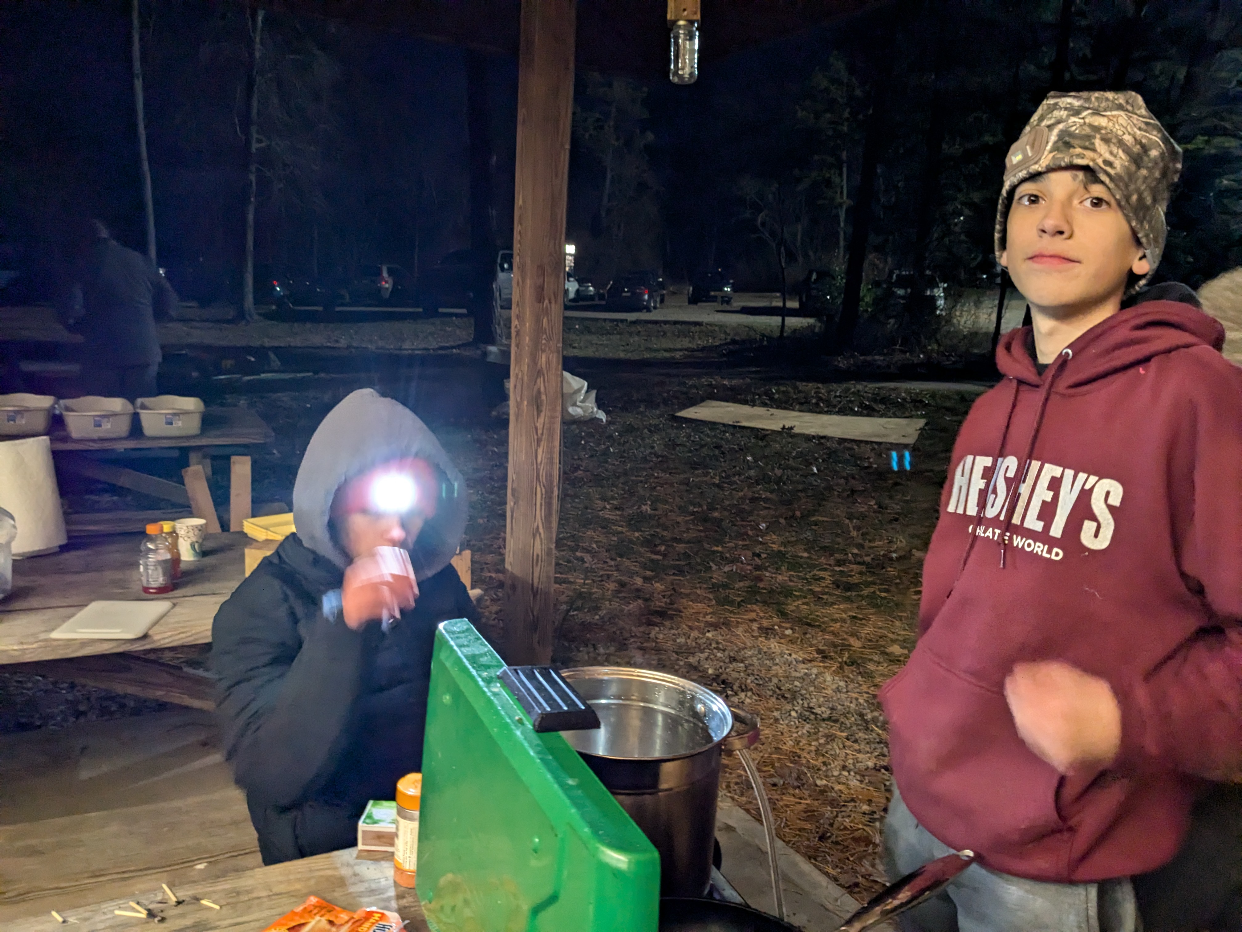 On December 13-15, 2024 we camped in the Campcraft Area and used Goodman Pavilion for patrol cooking at Camp Horseshoe in Rising Sun, MD.The overnight low temperature on Saturday morning was 22°F and on Sunday it was 20°F. Scouts and adults who camped both nights in an unheated environment earned 23 Texas Tough Points for the weekend.
