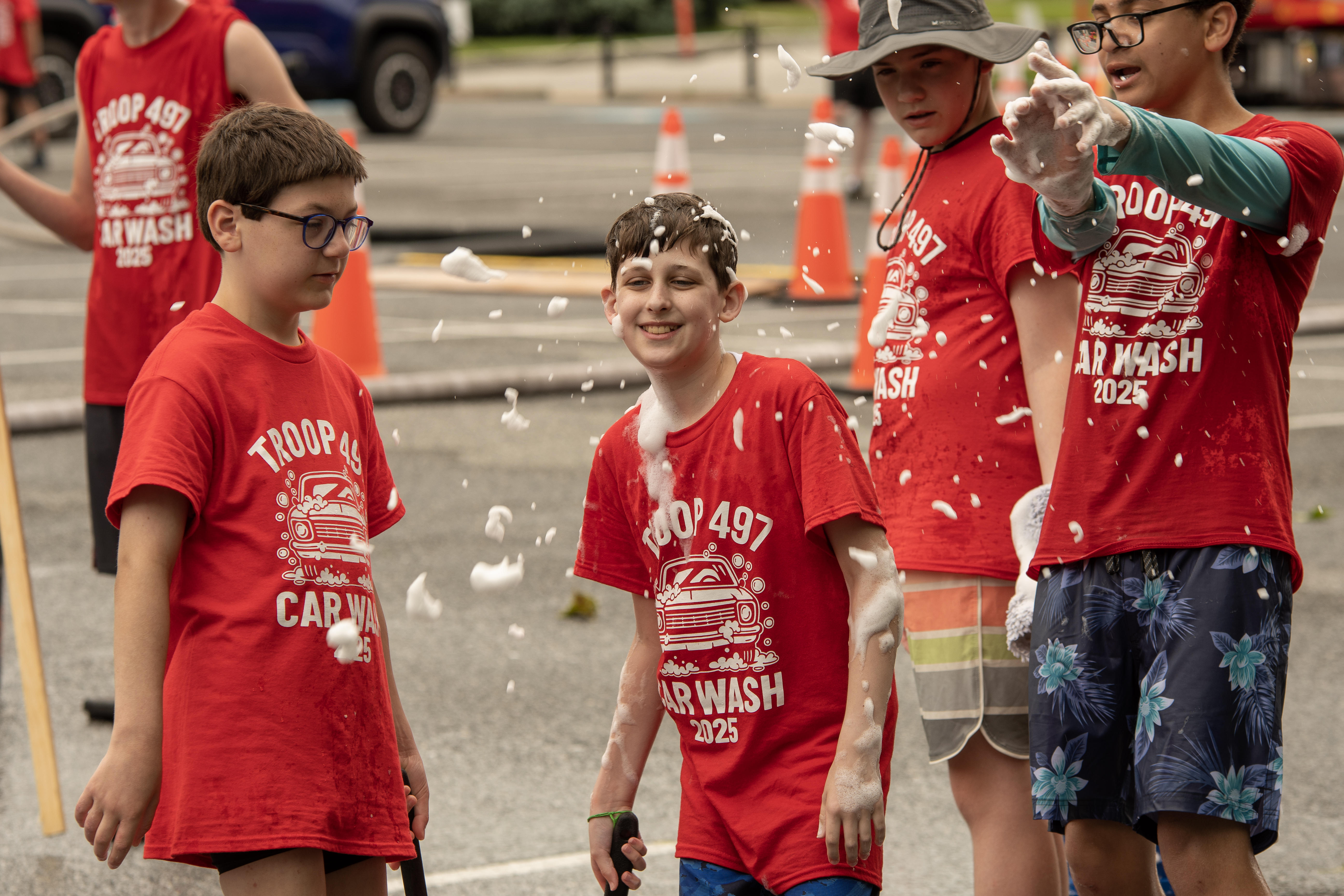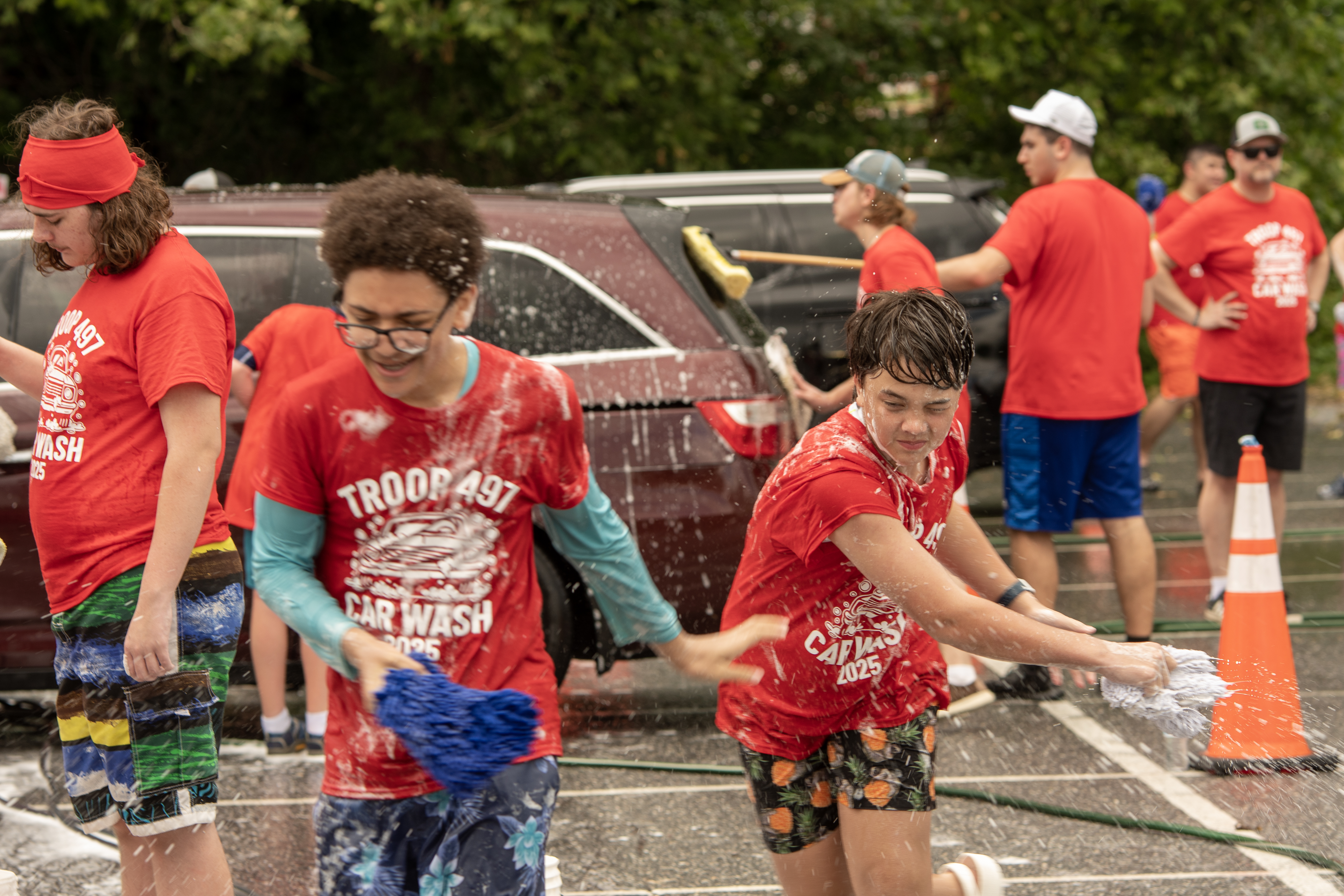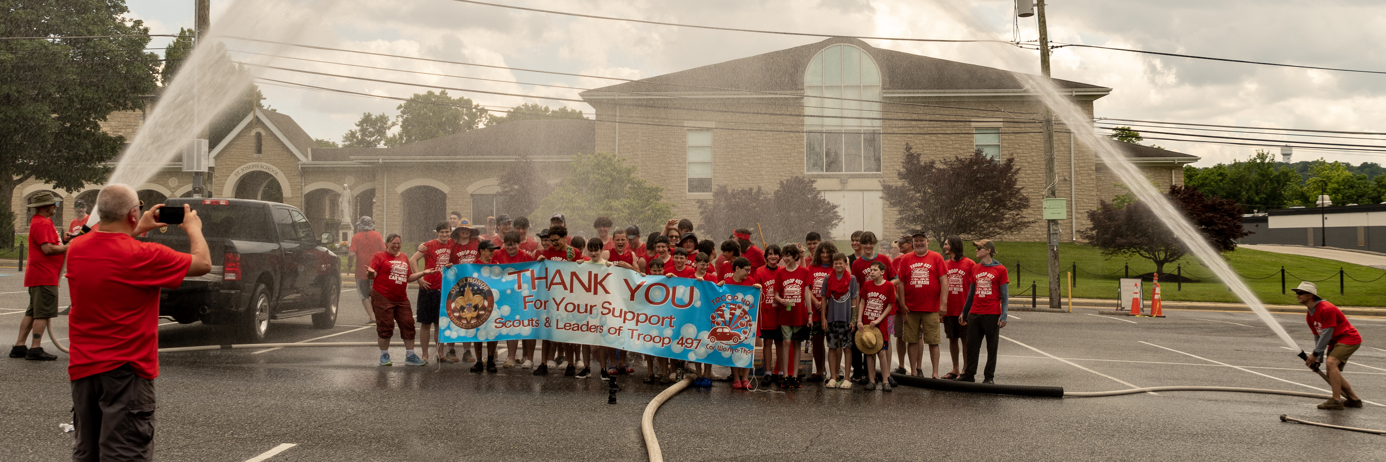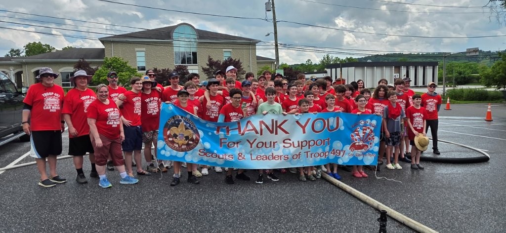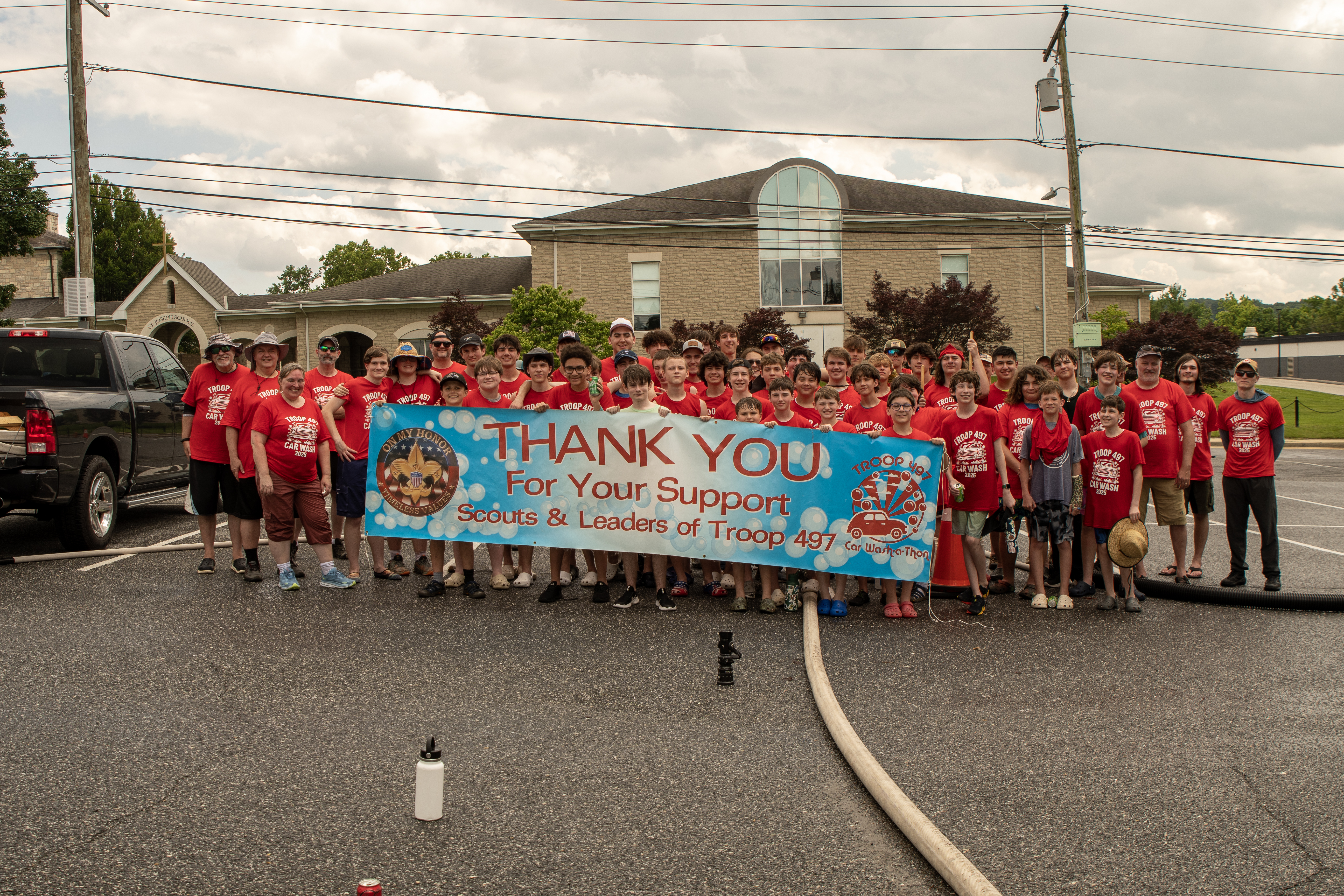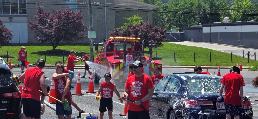 On 7 June 2025 Troop 497 held their Annual Car Wash in the St Joseph Parish Center parking lot. The boys washed 241 cars.Click on a photograph to see the large, high quality version or right click and select the menu item to save it to your disk. Contact the photographers for even higher resolution images. Email Webmaster if you would like to contribute additional photographs.