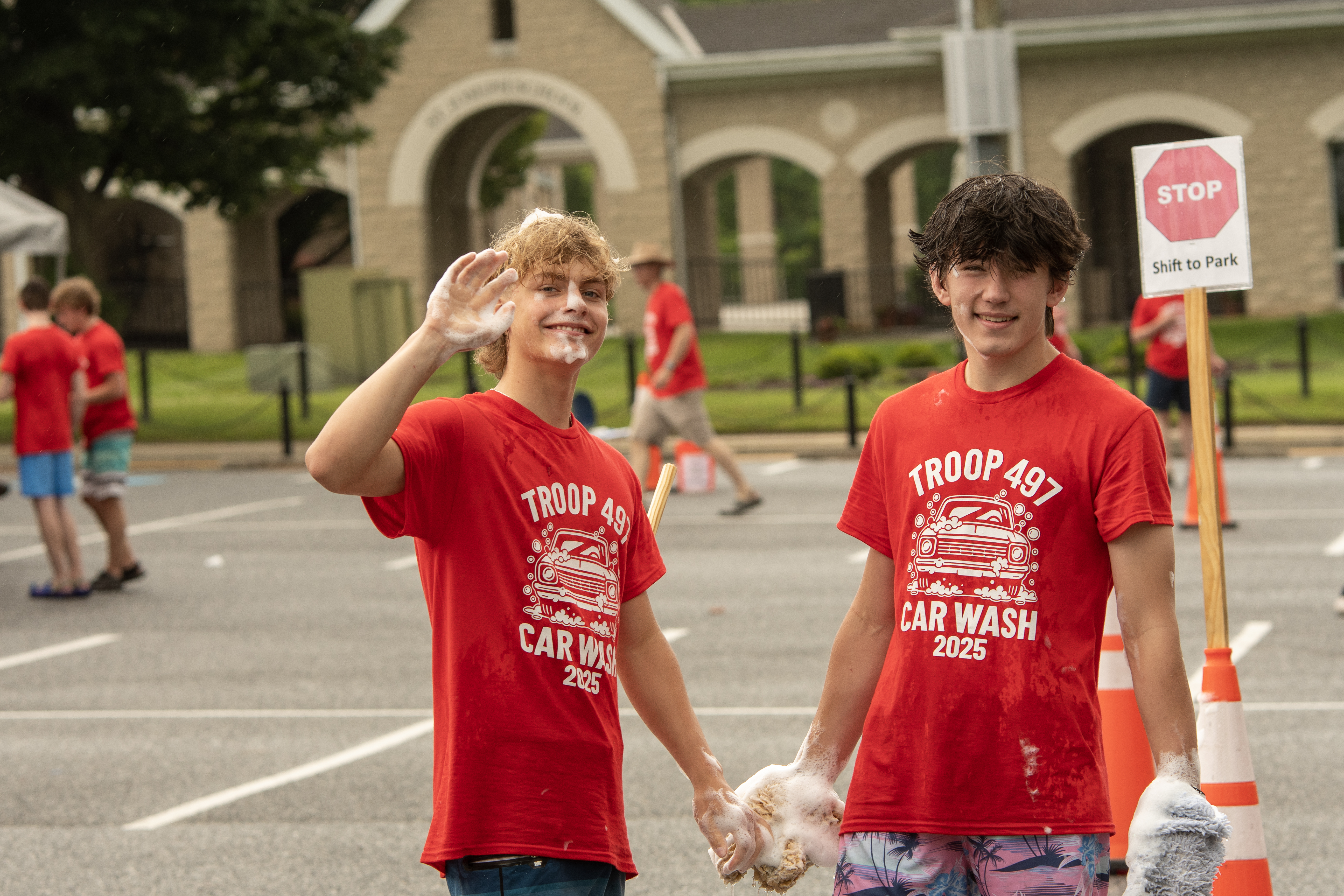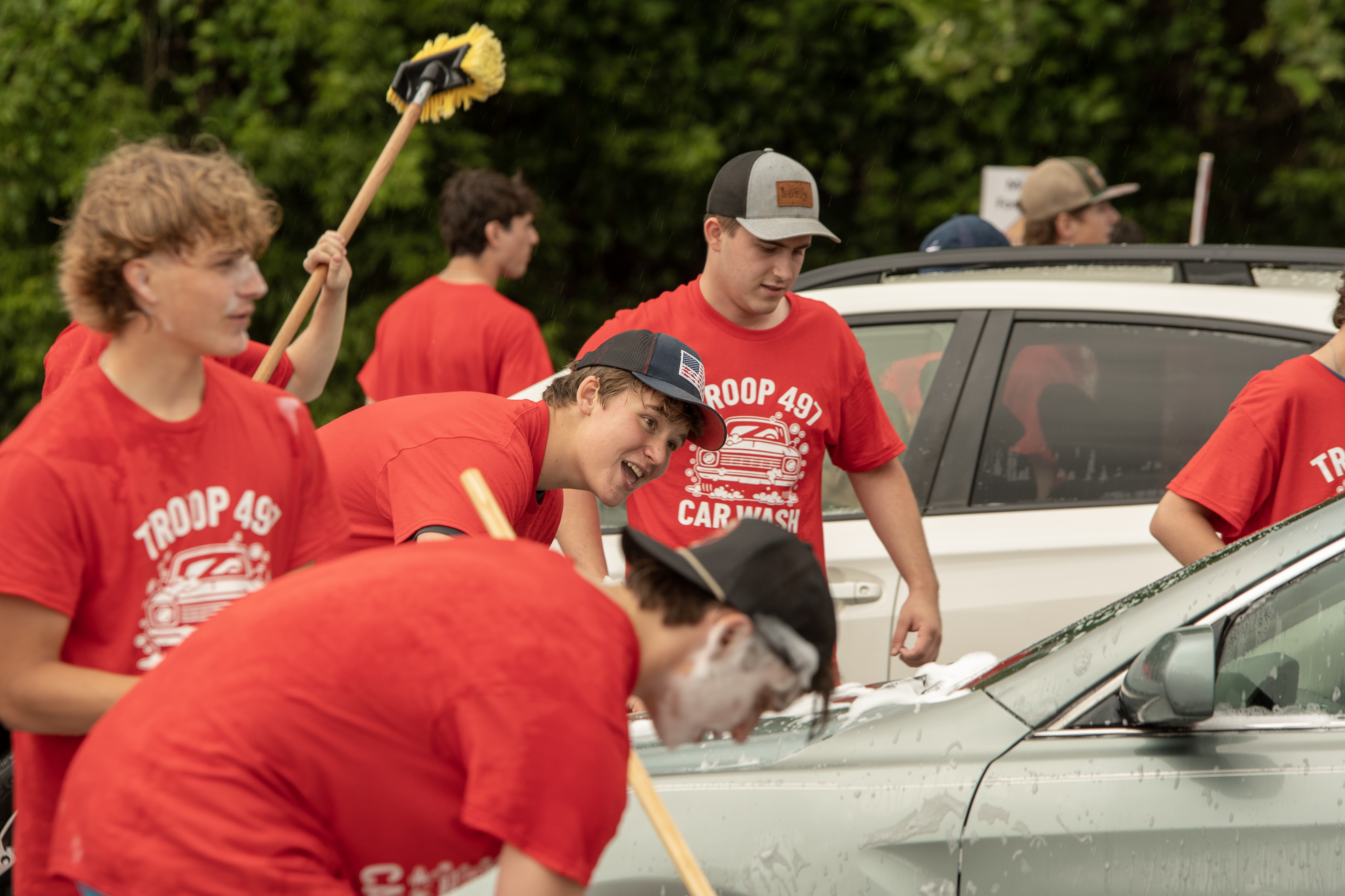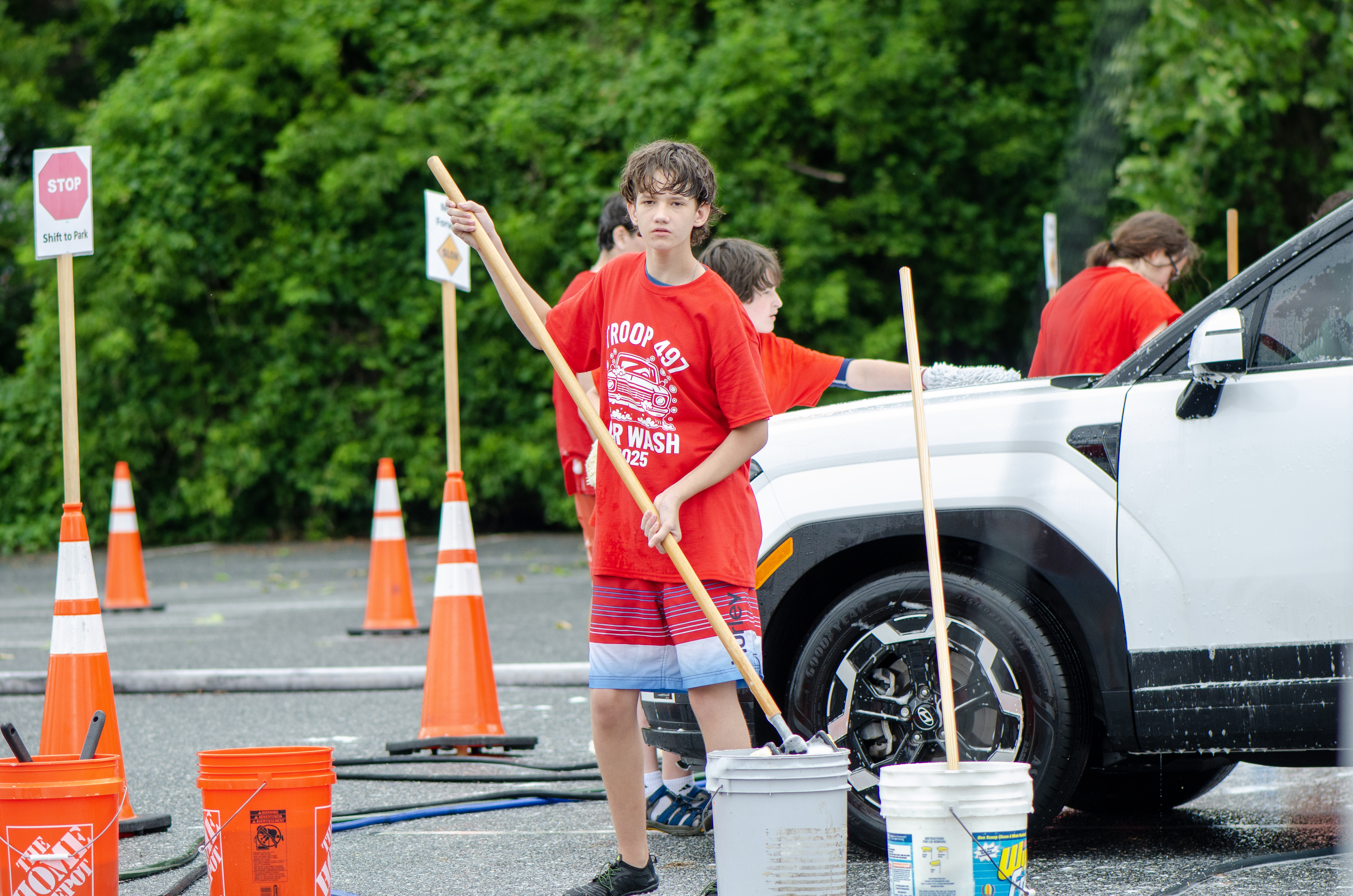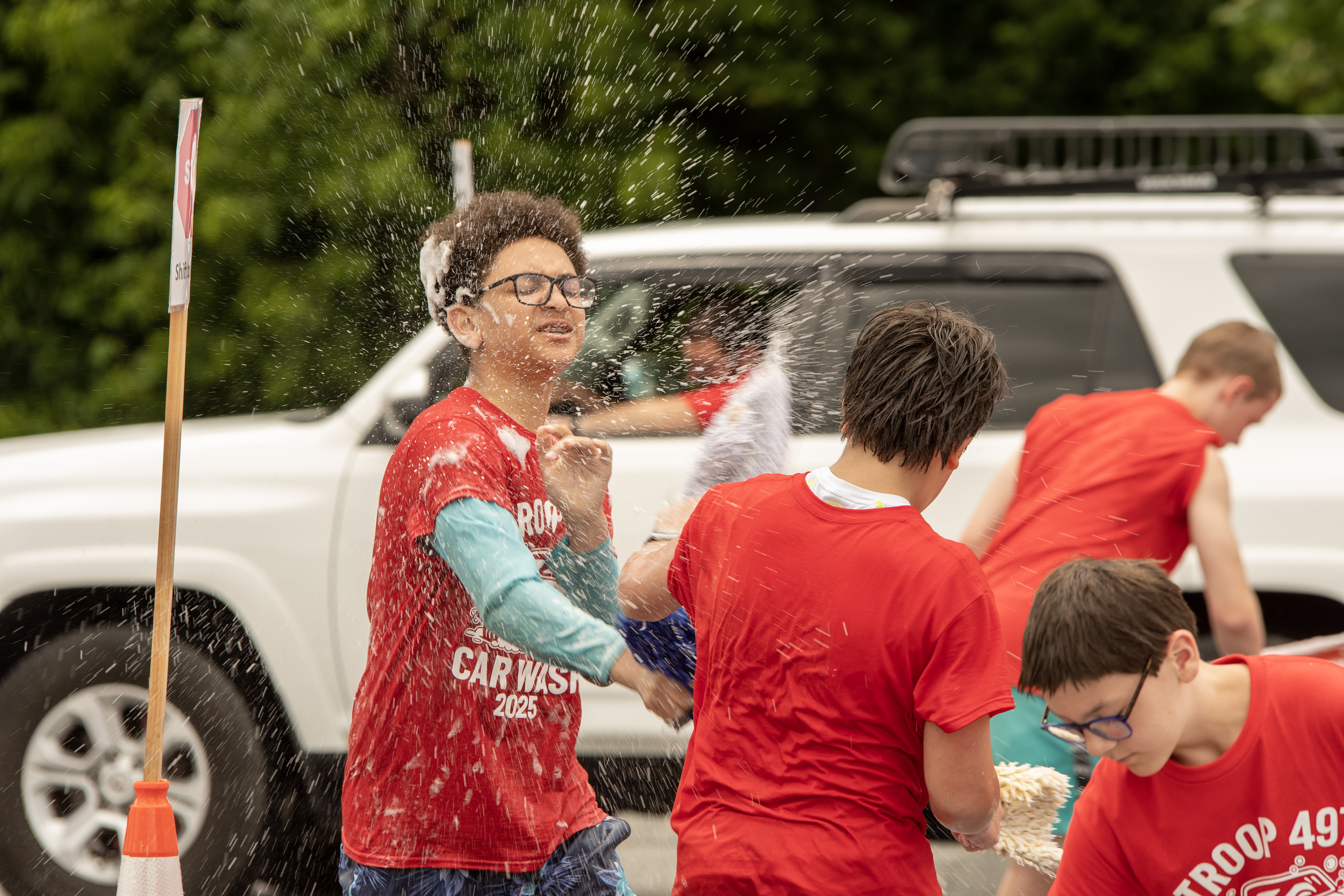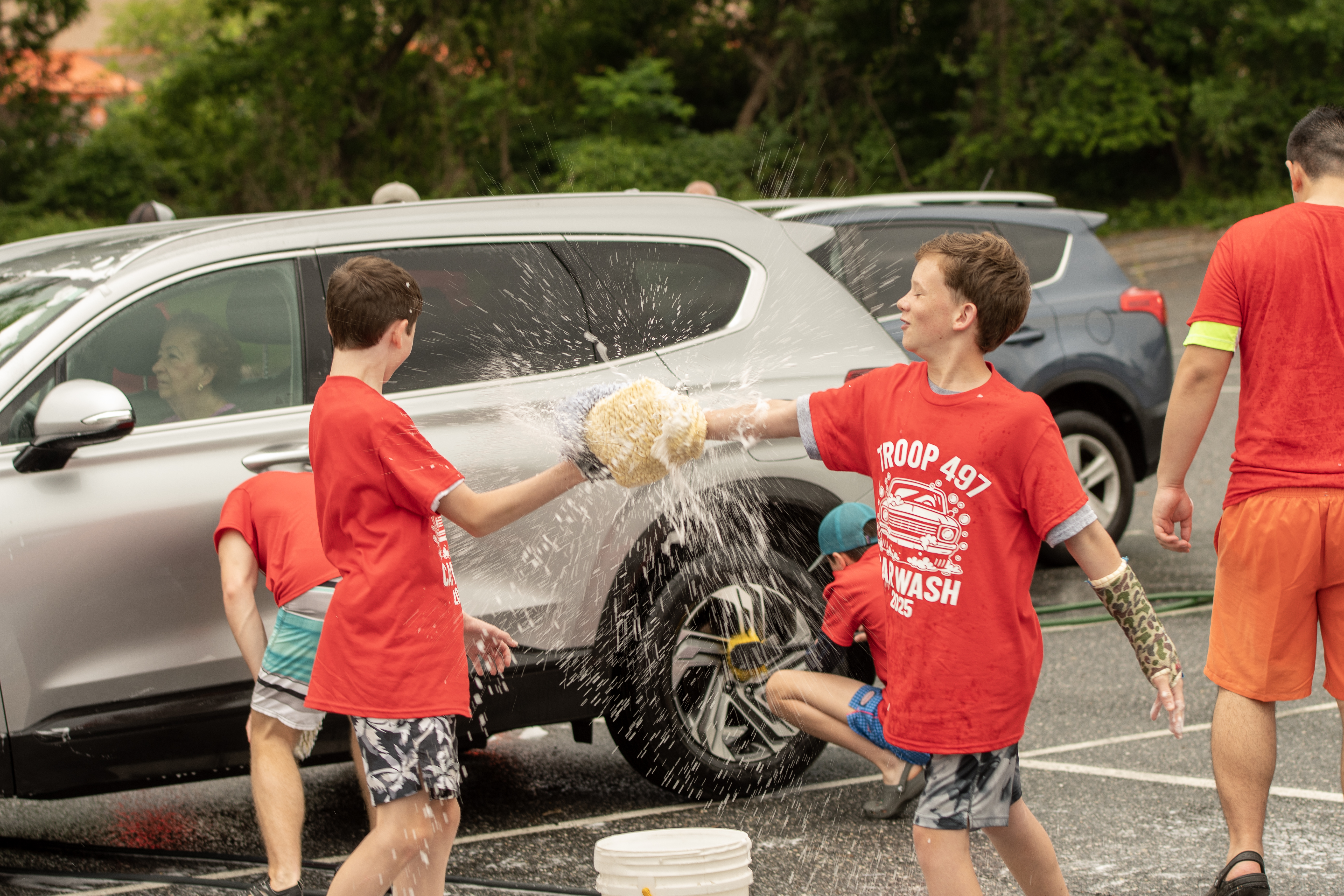 On 7 June 2025 Troop 497 held their Annual Car Wash in the St Joseph Parish Center parking lot. The boys washed 241 cars.Click on a photograph to see the large, high quality version or right click and select the menu item to save it to your disk. Contact the photographers for even higher resolution images. Email Webmaster if you would like to contribute additional photographs.