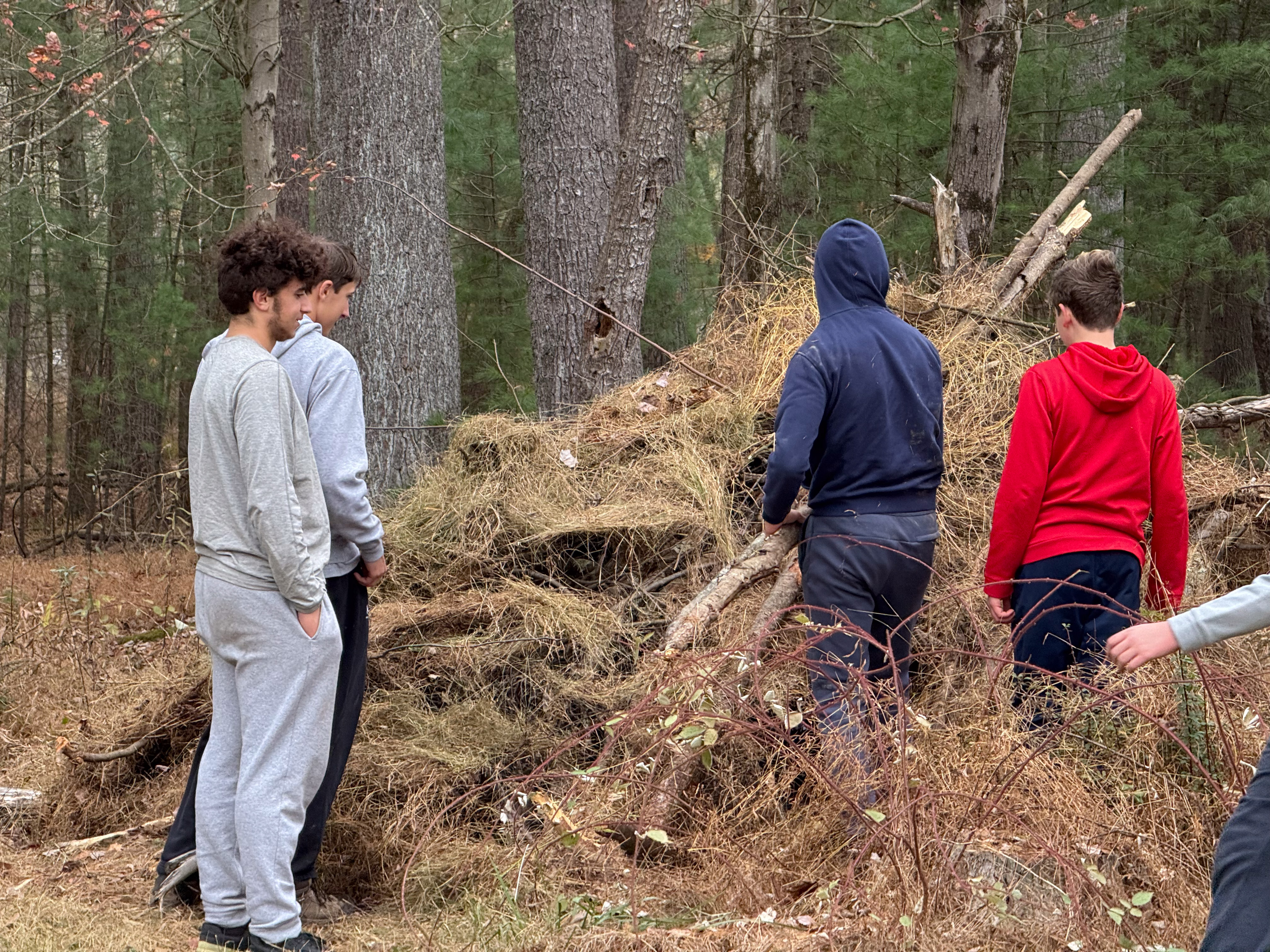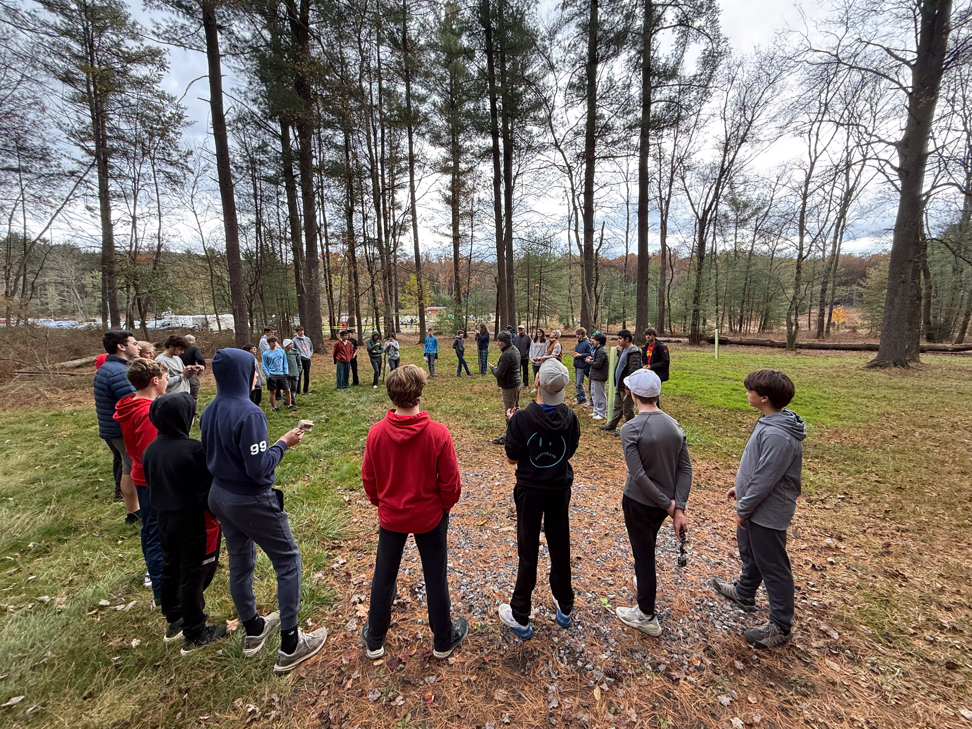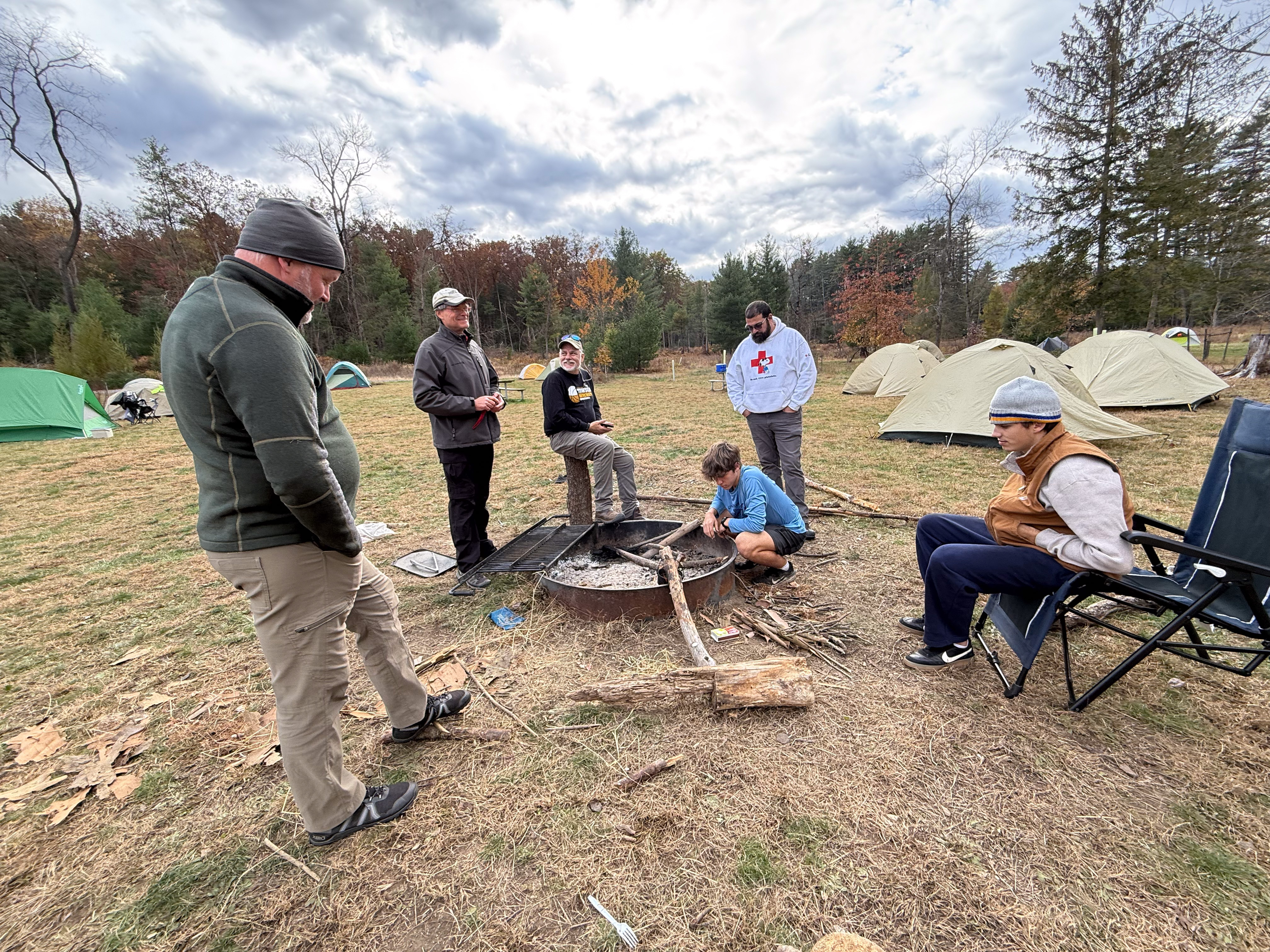 On 24-26 October 2025 we camped at Pine Grove Furnace State Park in Gardners, PA in sites A, B, and C.The weather both Saturday and Sunday fluctuated between overcast and partially sunny throughout the day. Night time lows for both days were predicted to be in the low 30's. We were surprised when the low on Saturday morning was 25°F and even more surprised on Sunday went it went down to 24°F. The main activities on Saturday were building shelters and then using them for capture the flag games.