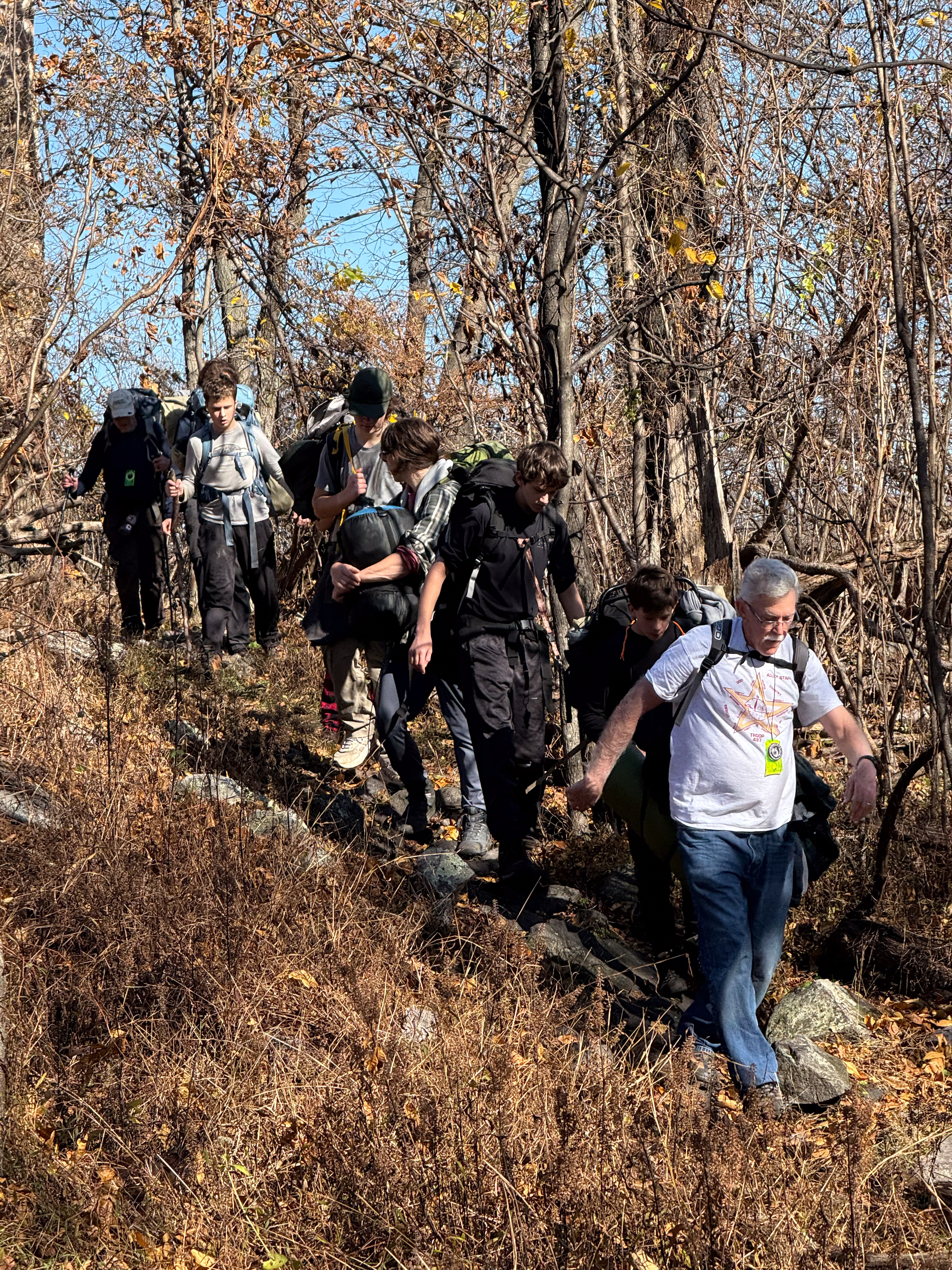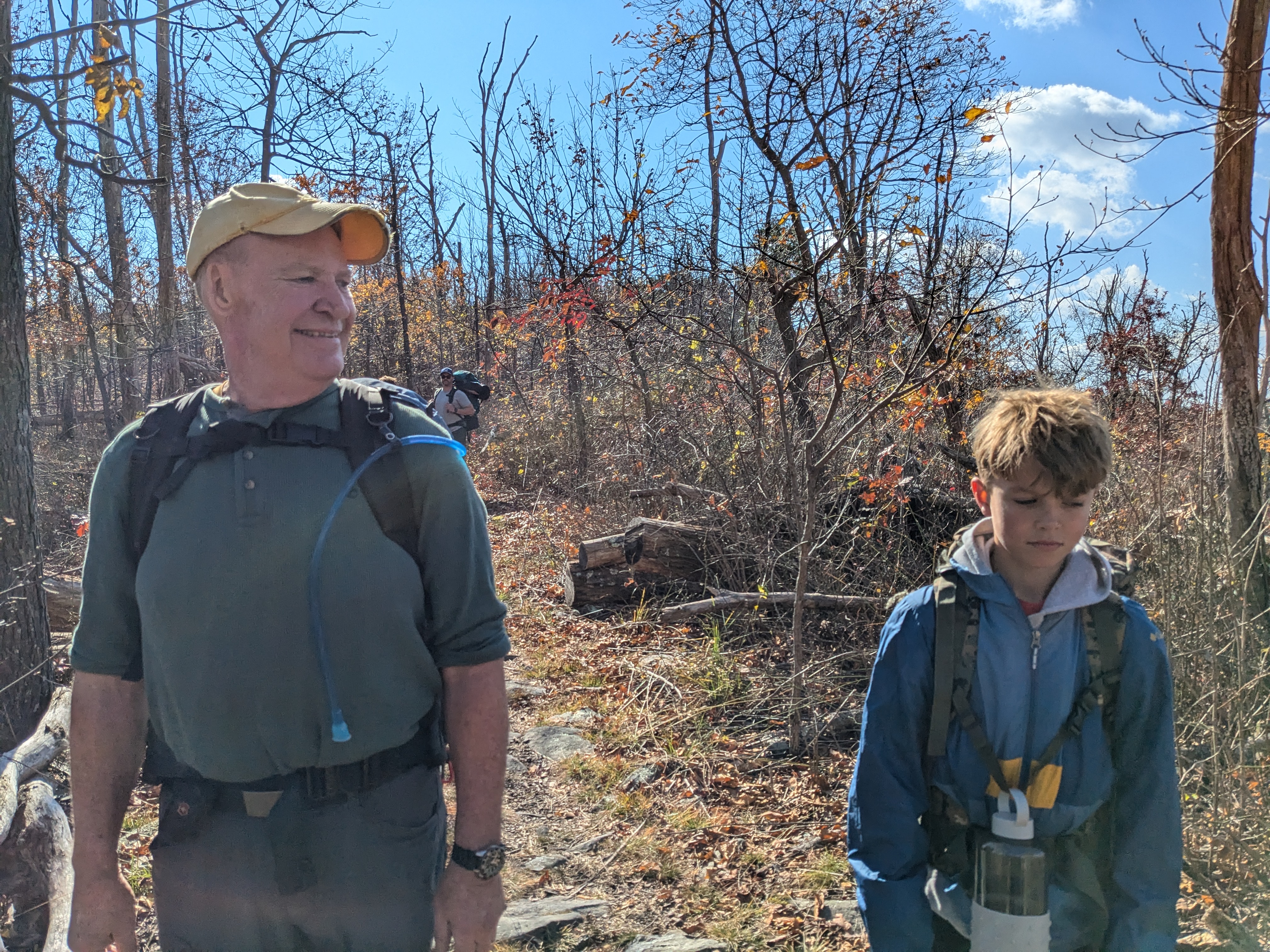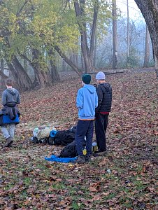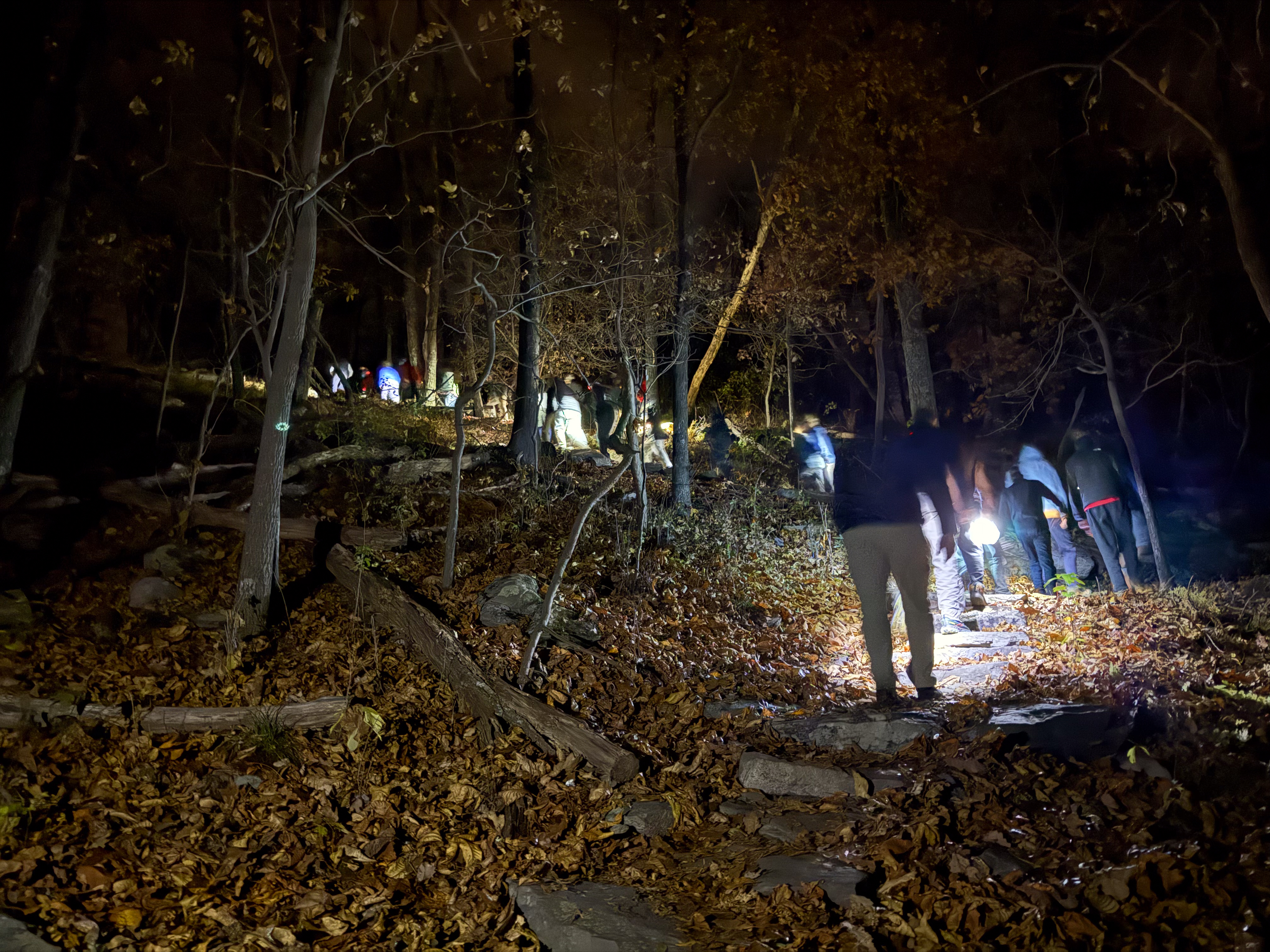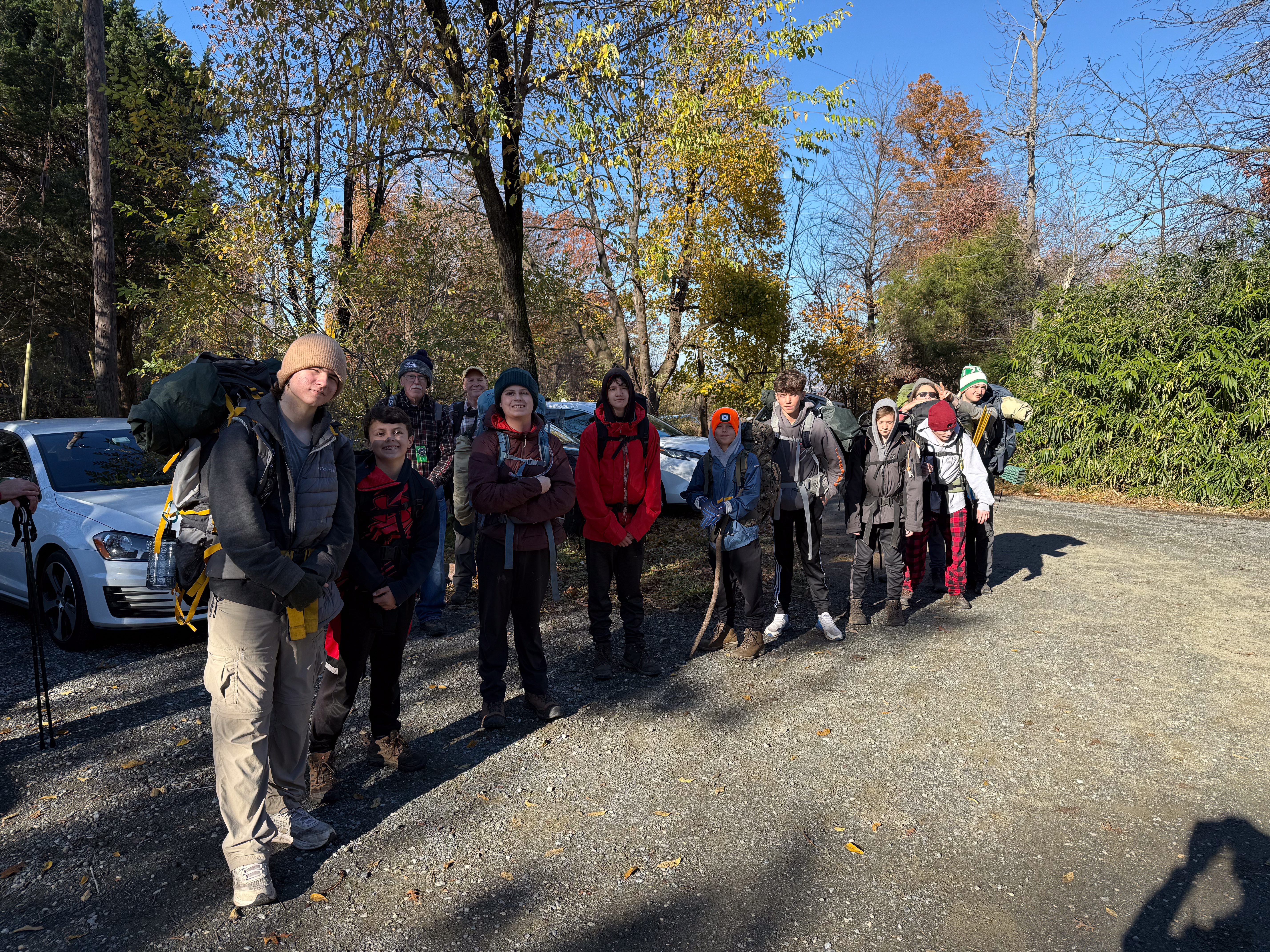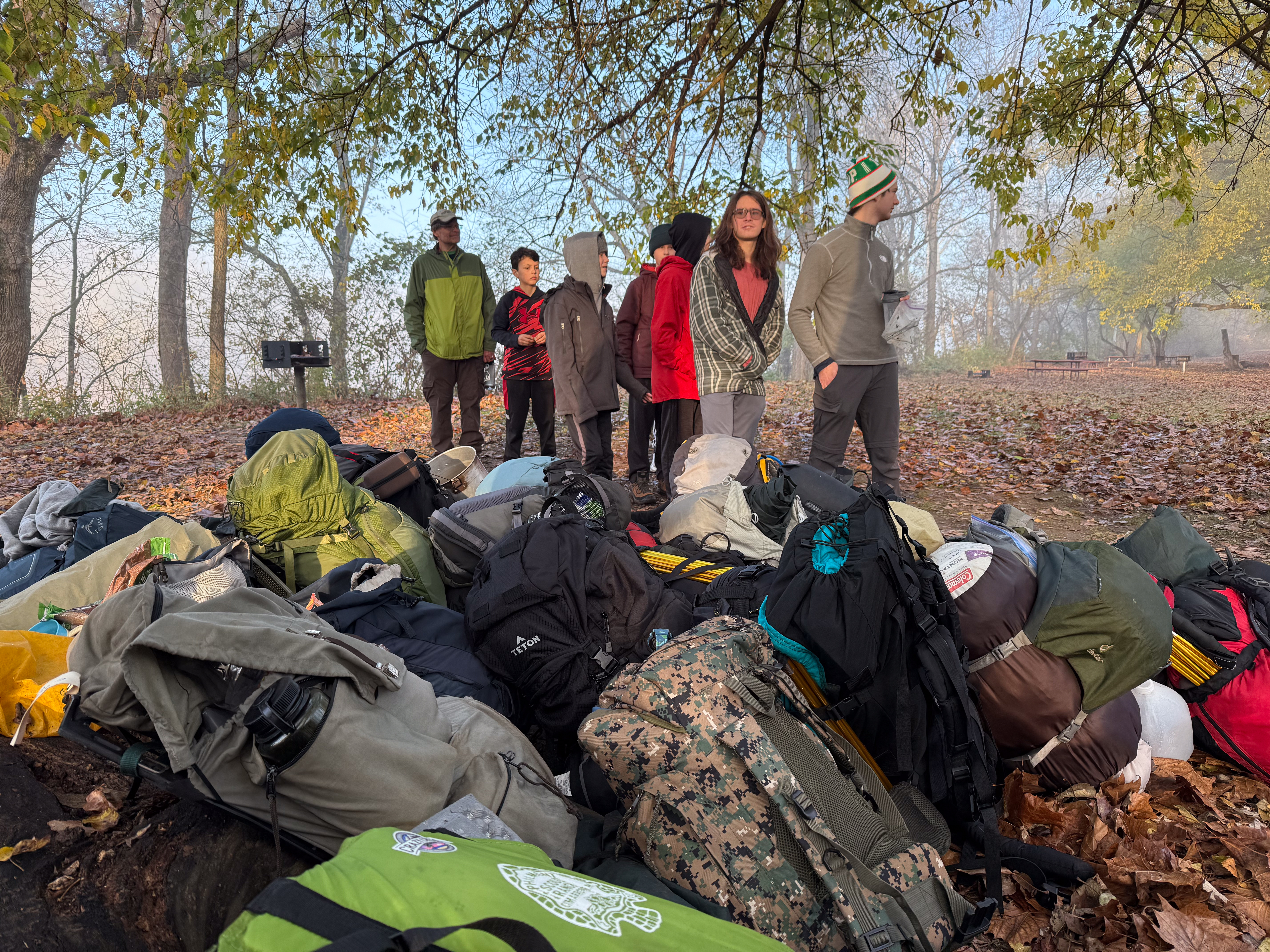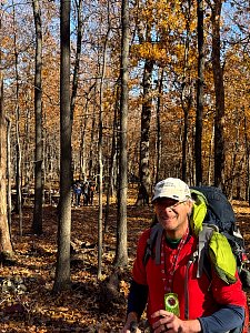 On 7-9 November 2025 we camped at the Antietam Creek Campground on Friday night. On Saturday we split into groups for a long backpack and a shorter one. The shorter hike, around 6 miles, started at Keys Gap. The longer hike, about 13 miles, started at the Harpers Ferry National Park parking lot. Both hike ended the day at the Blackburn Trail Center campground. We hiked about about 1.5 miles on Sunday to a location along the road where the vehicles pick up everyone.Saturday started out very foggy. It mostly cleared by the time we started hiking and was cool and comfortable for hiking. Both groups had enjoyable hikes with very few issues along the way. After dinner the group walked up to the ridge to enjoy the view in the dark.