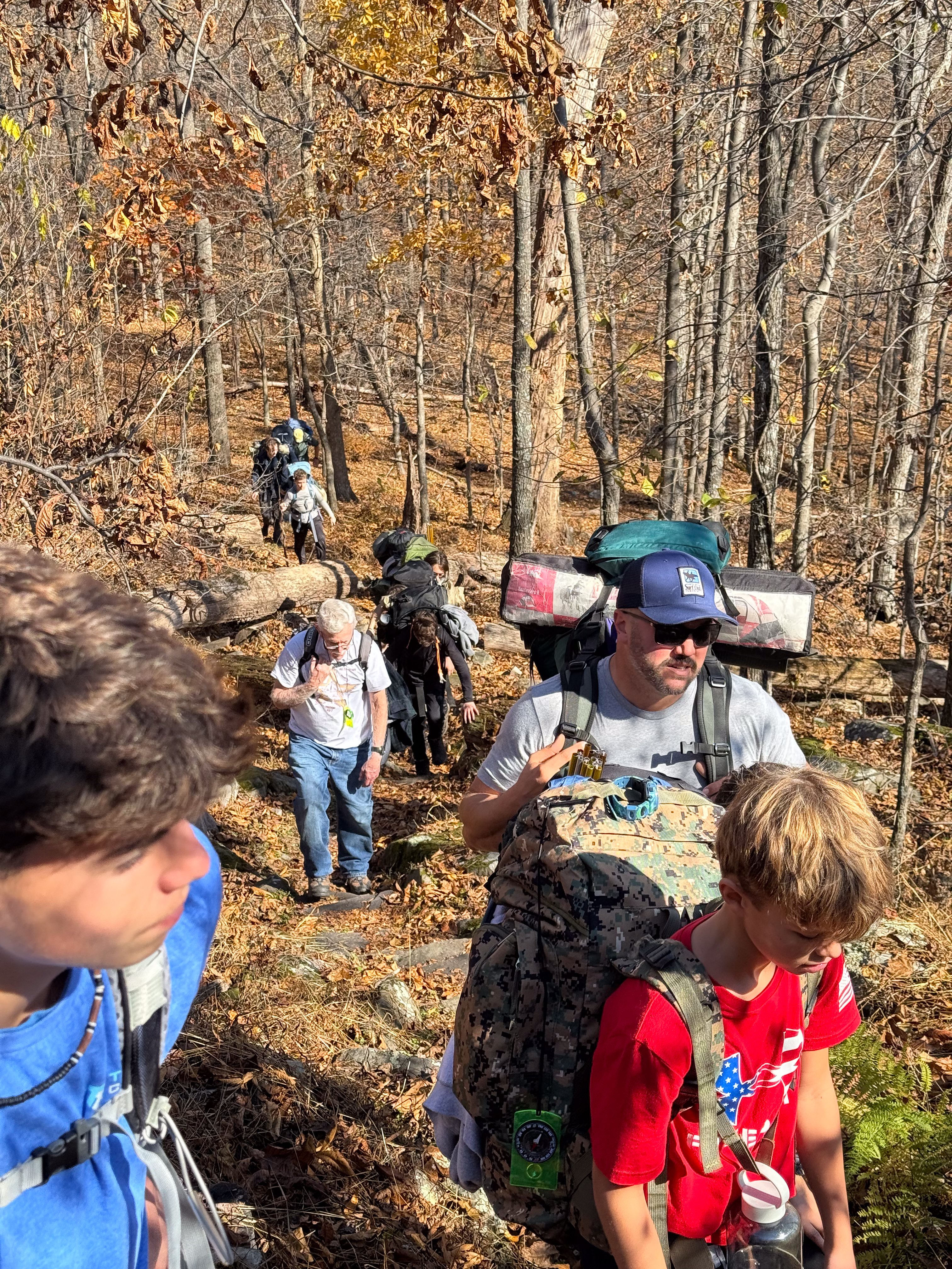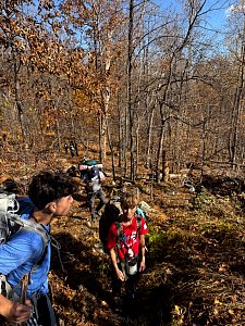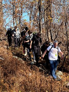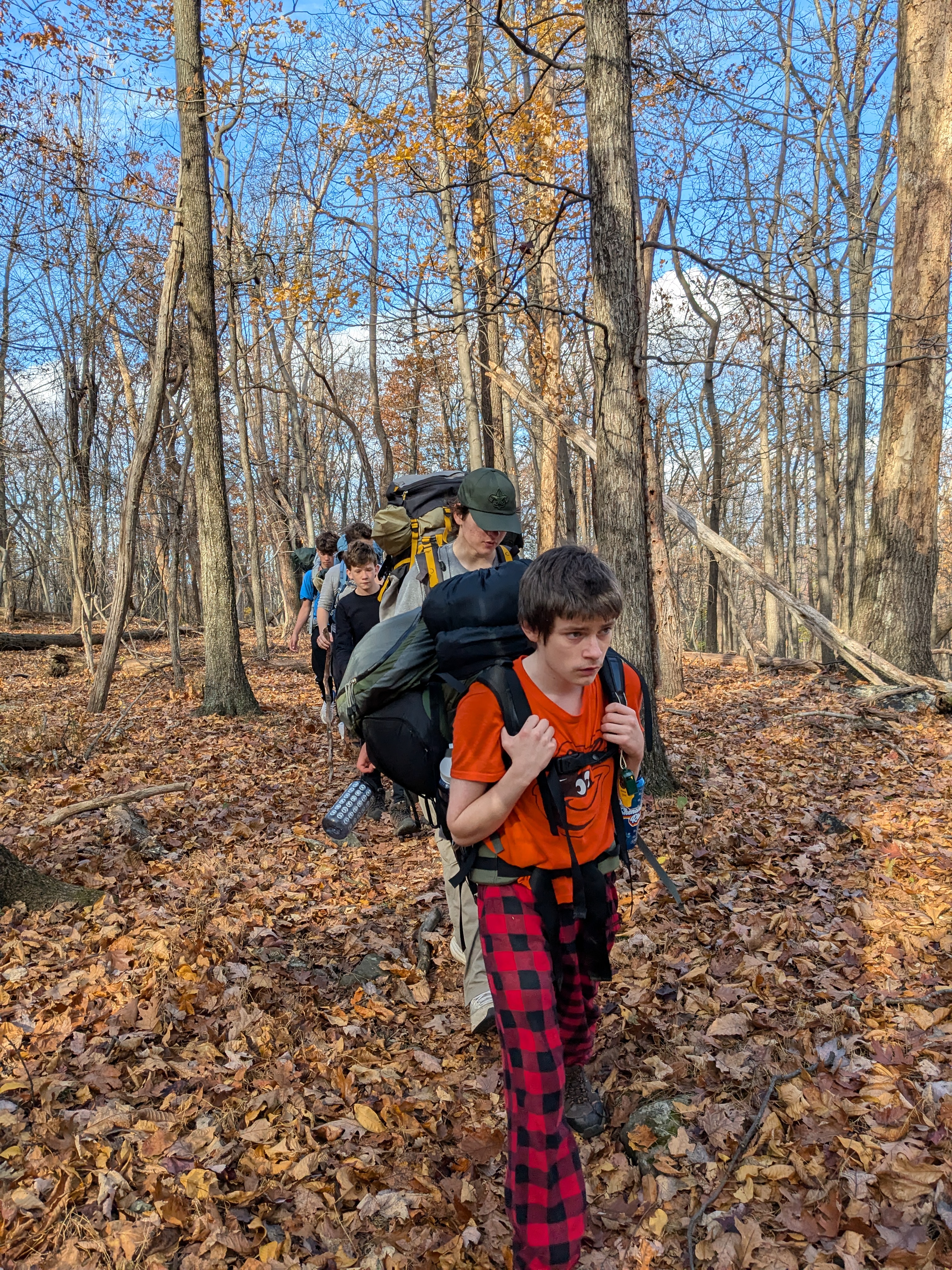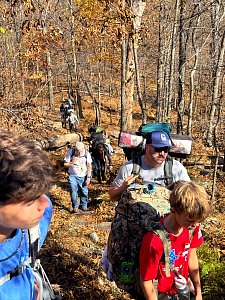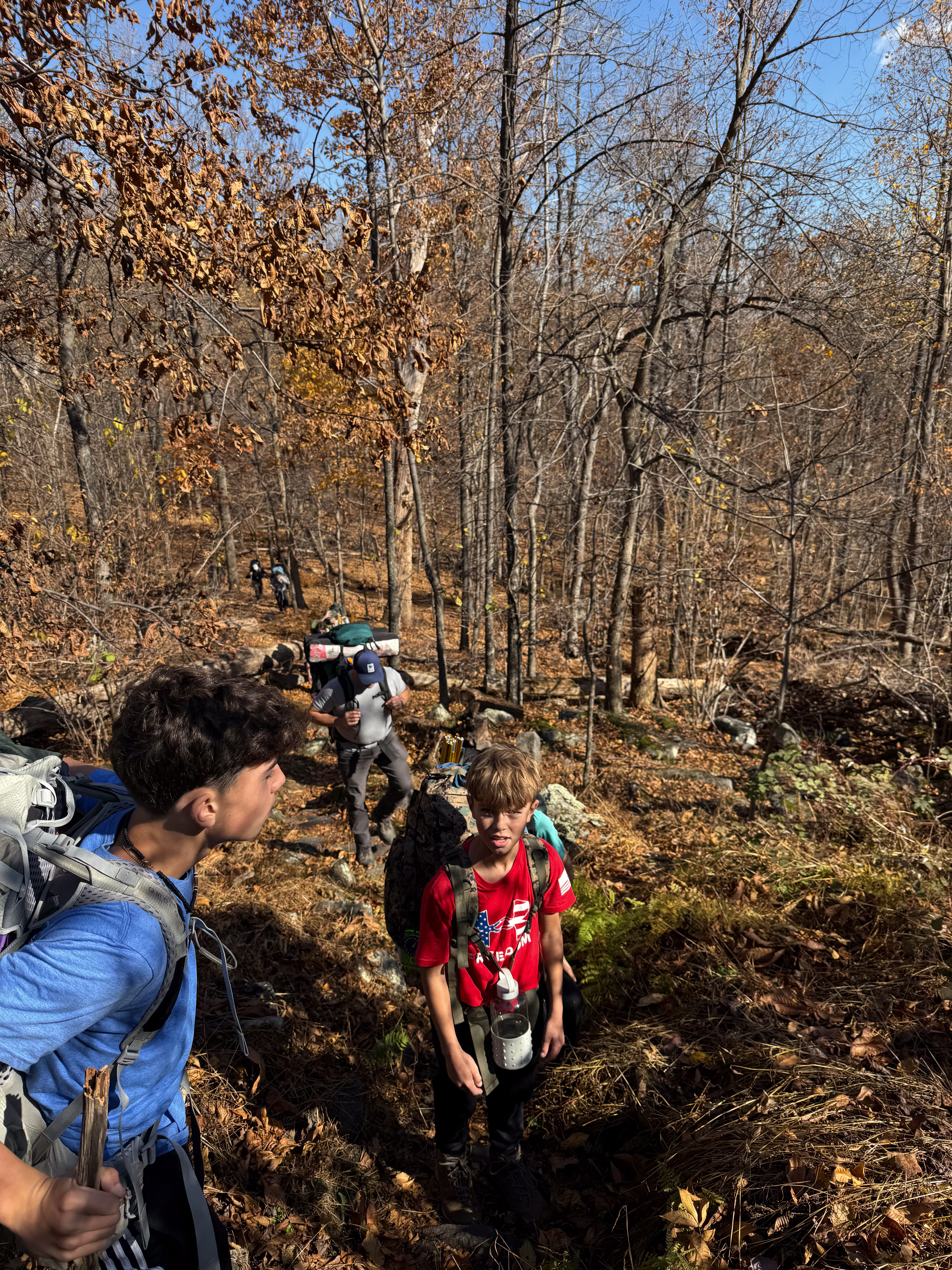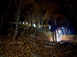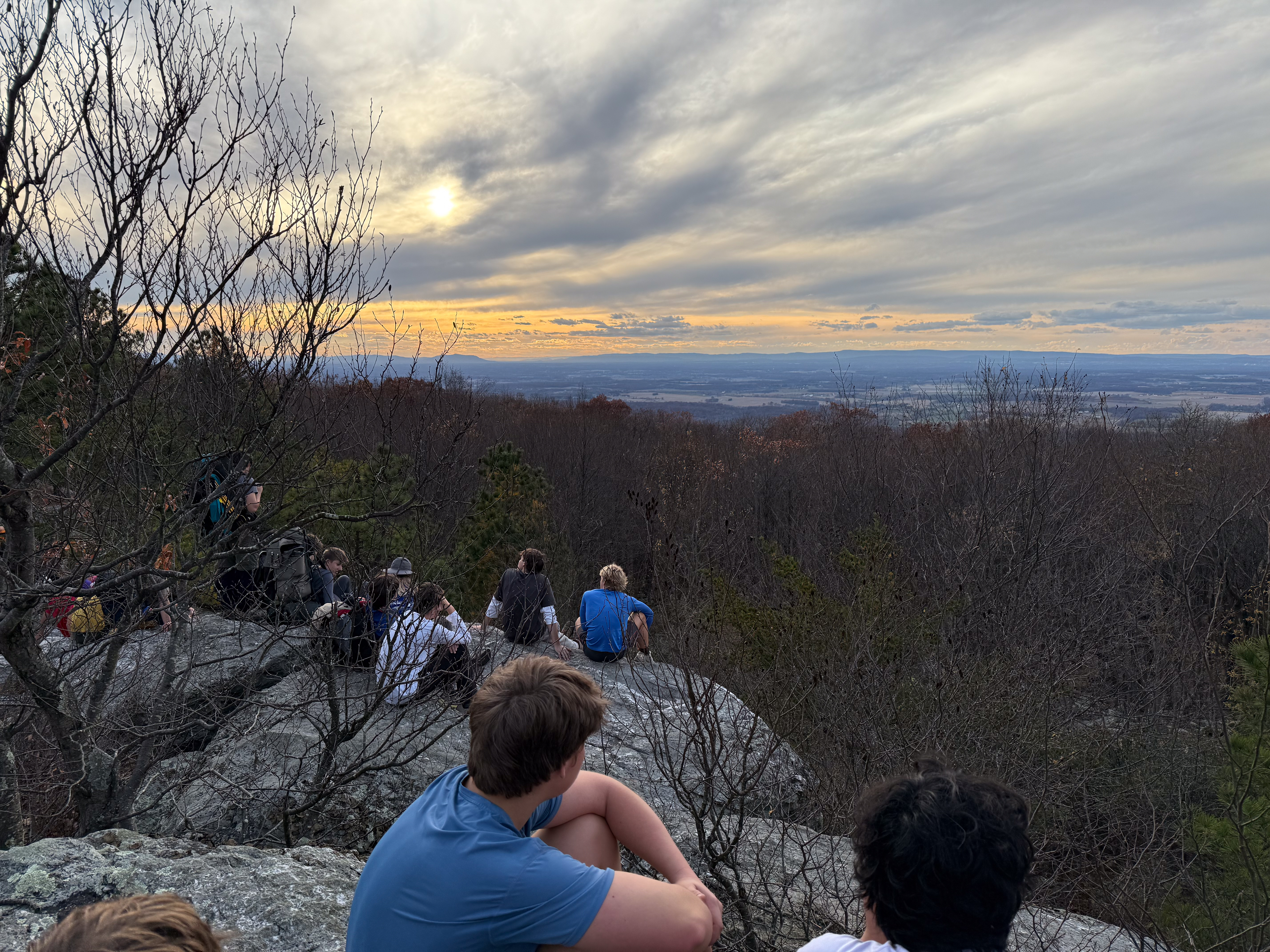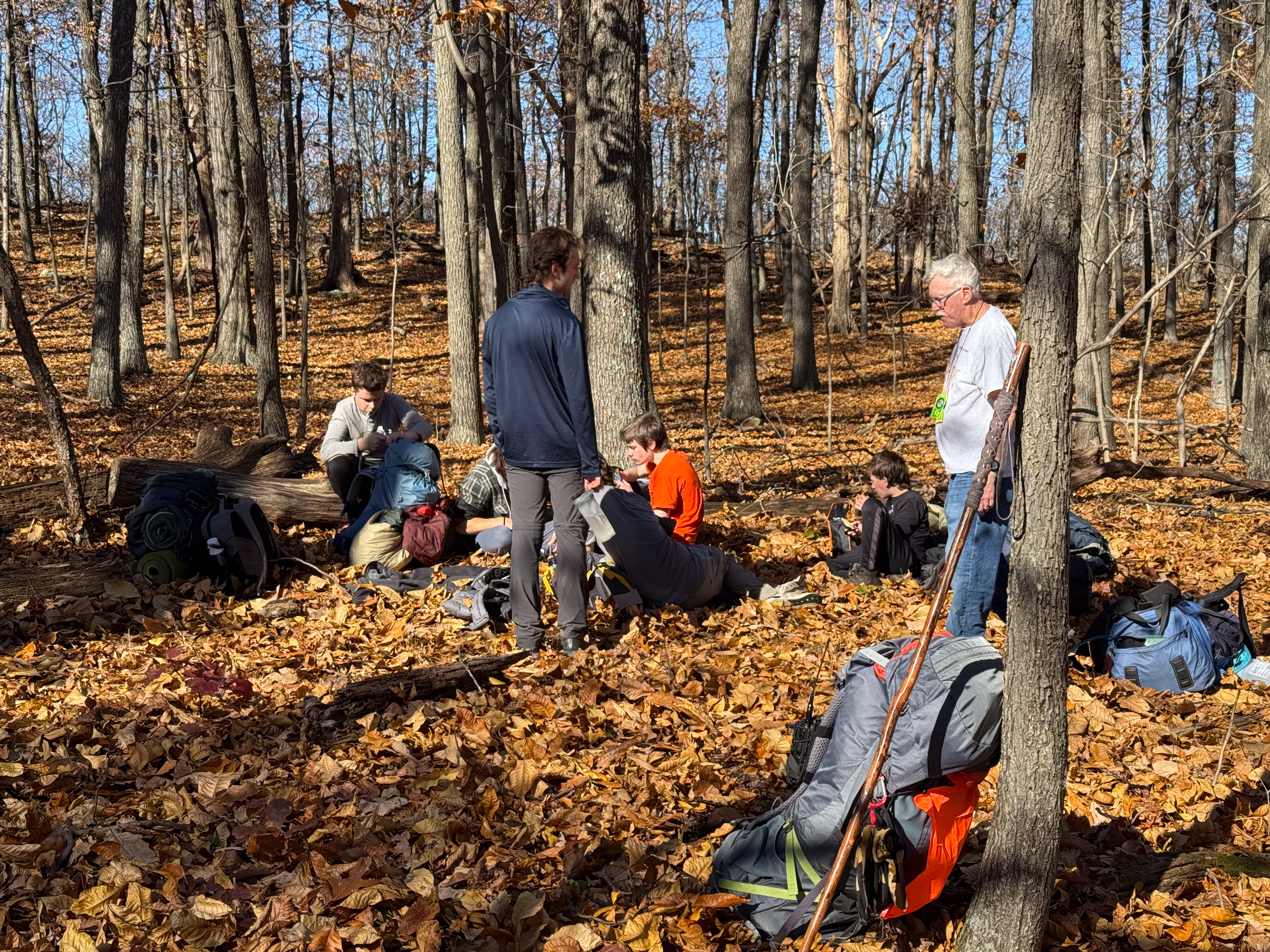 On 7-9 November 2025 we camped at the Antietam Creek Campground on Friday night. On Saturday we split into groups for a long backpack and a shorter one. The shorter hike, around 6 miles, started at Keys Gap. The longer hike, about 13 miles, started at the Harpers Ferry National Park parking lot. Both hike ended the day at the Blackburn Trail Center campground. We hiked about about 1.5 miles on Sunday to a location along the road where the vehicles pick up everyone.Saturday started out very foggy. It mostly cleared by the time we started hiking and was cool and comfortable for hiking. Both groups had enjoyable hikes with very few issues along the way. After dinner the group walked up to the ridge to enjoy the view in the dark.