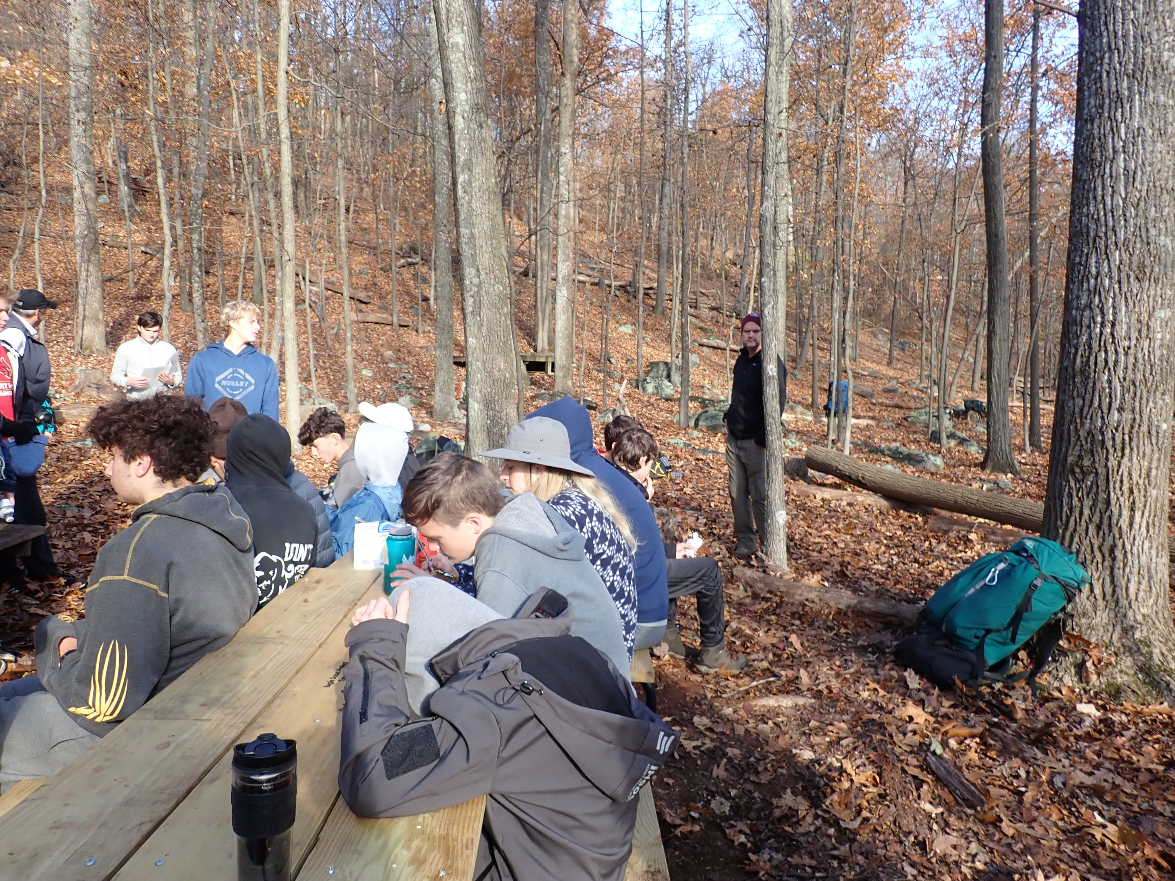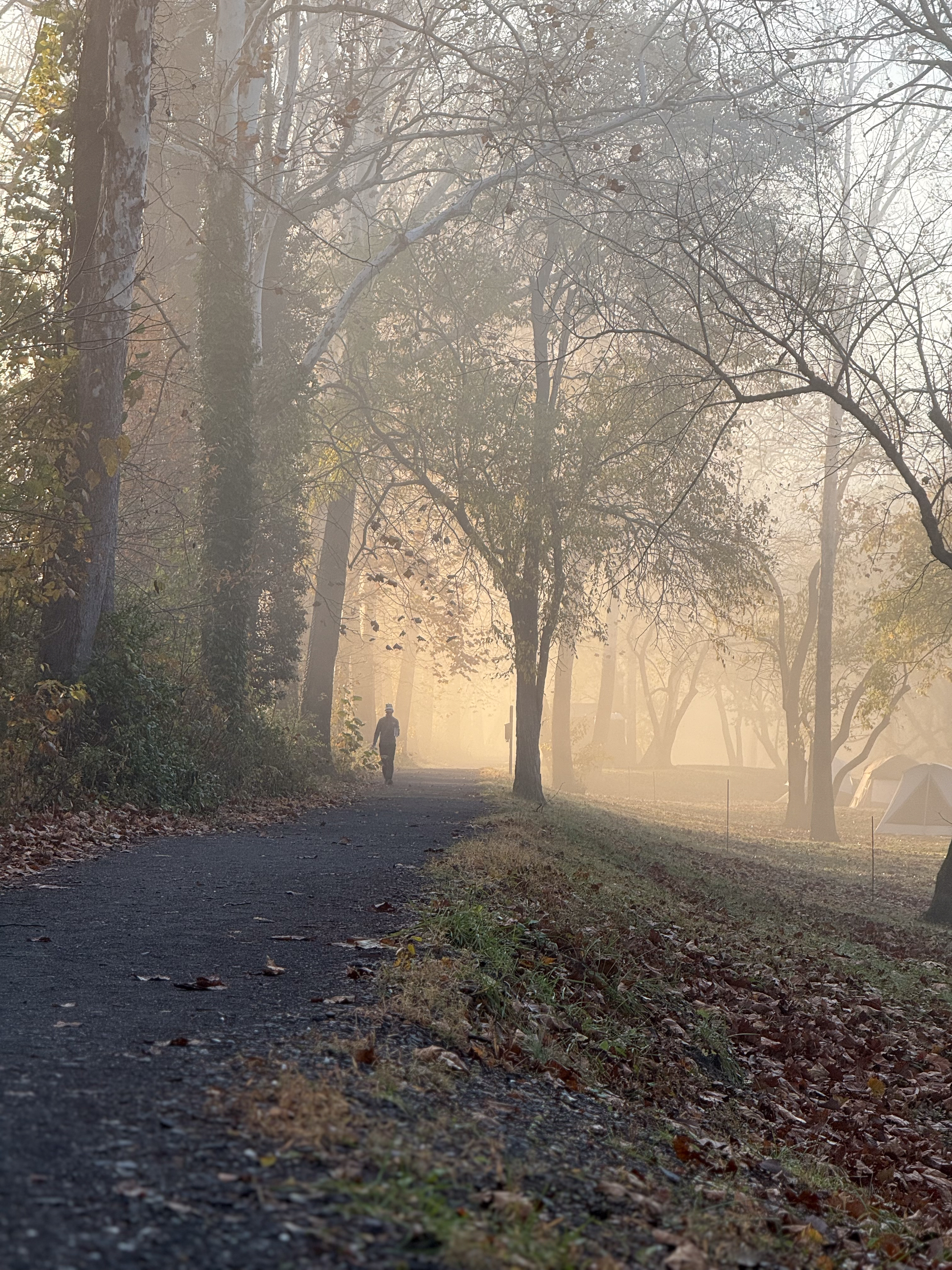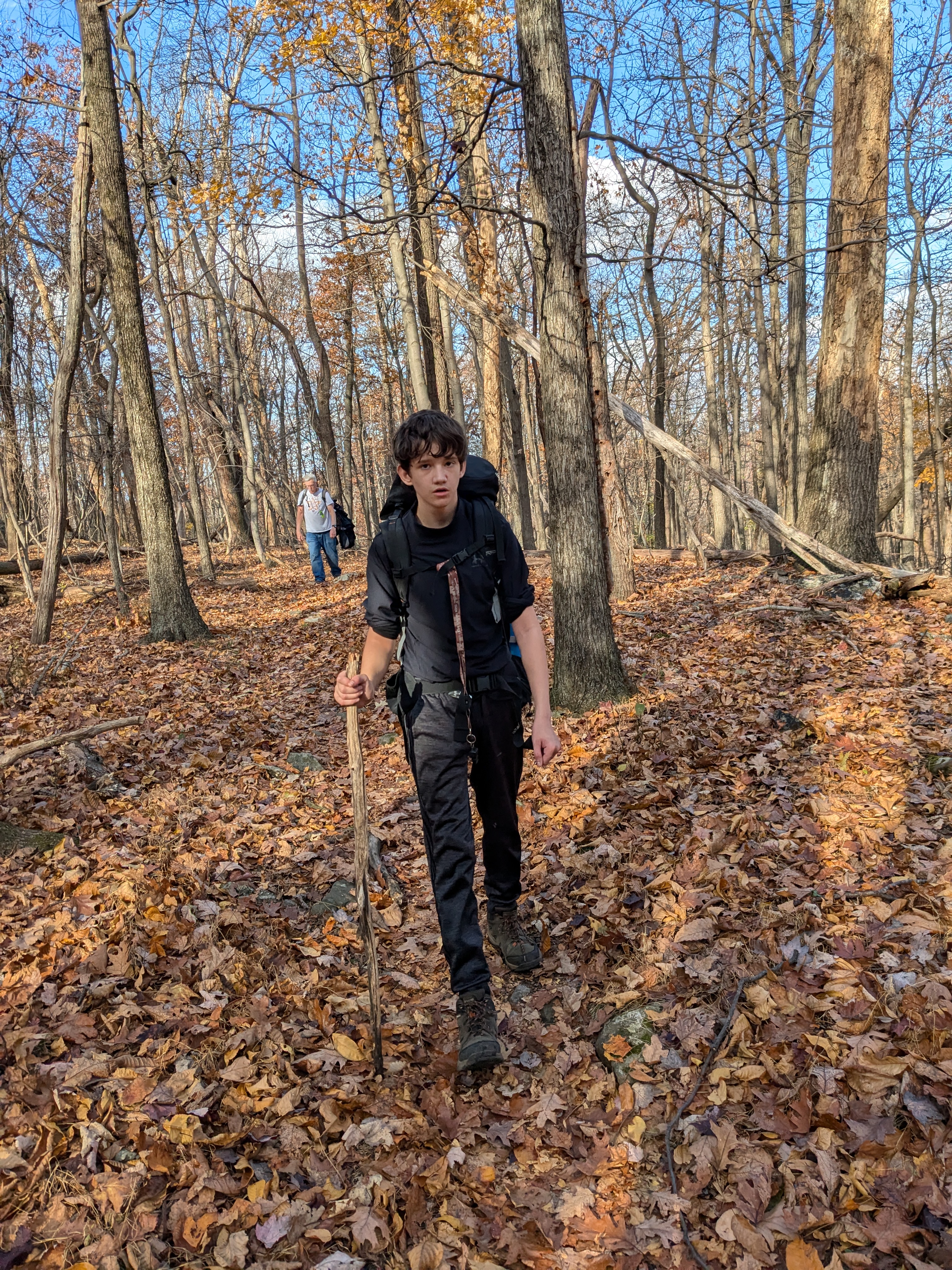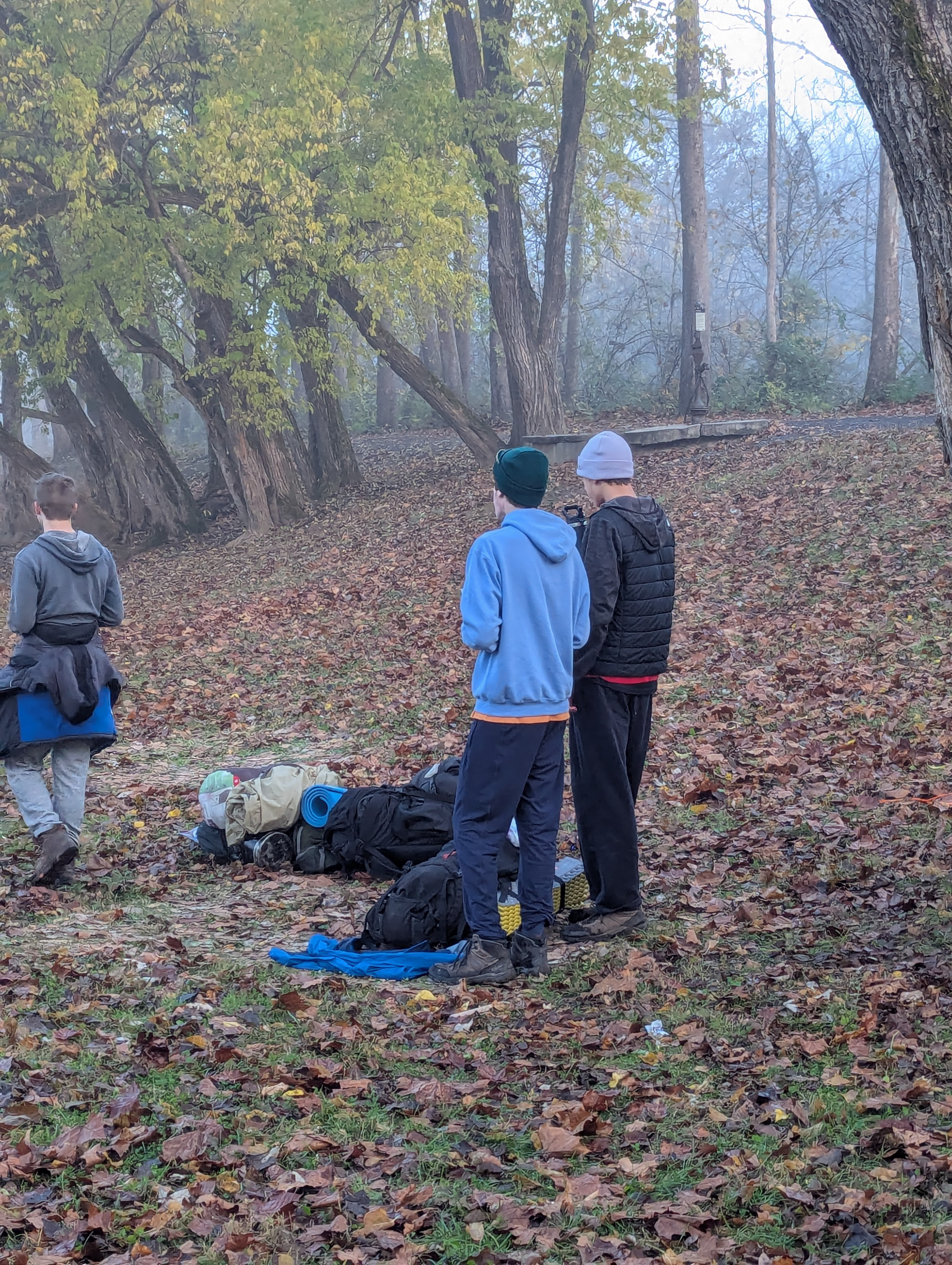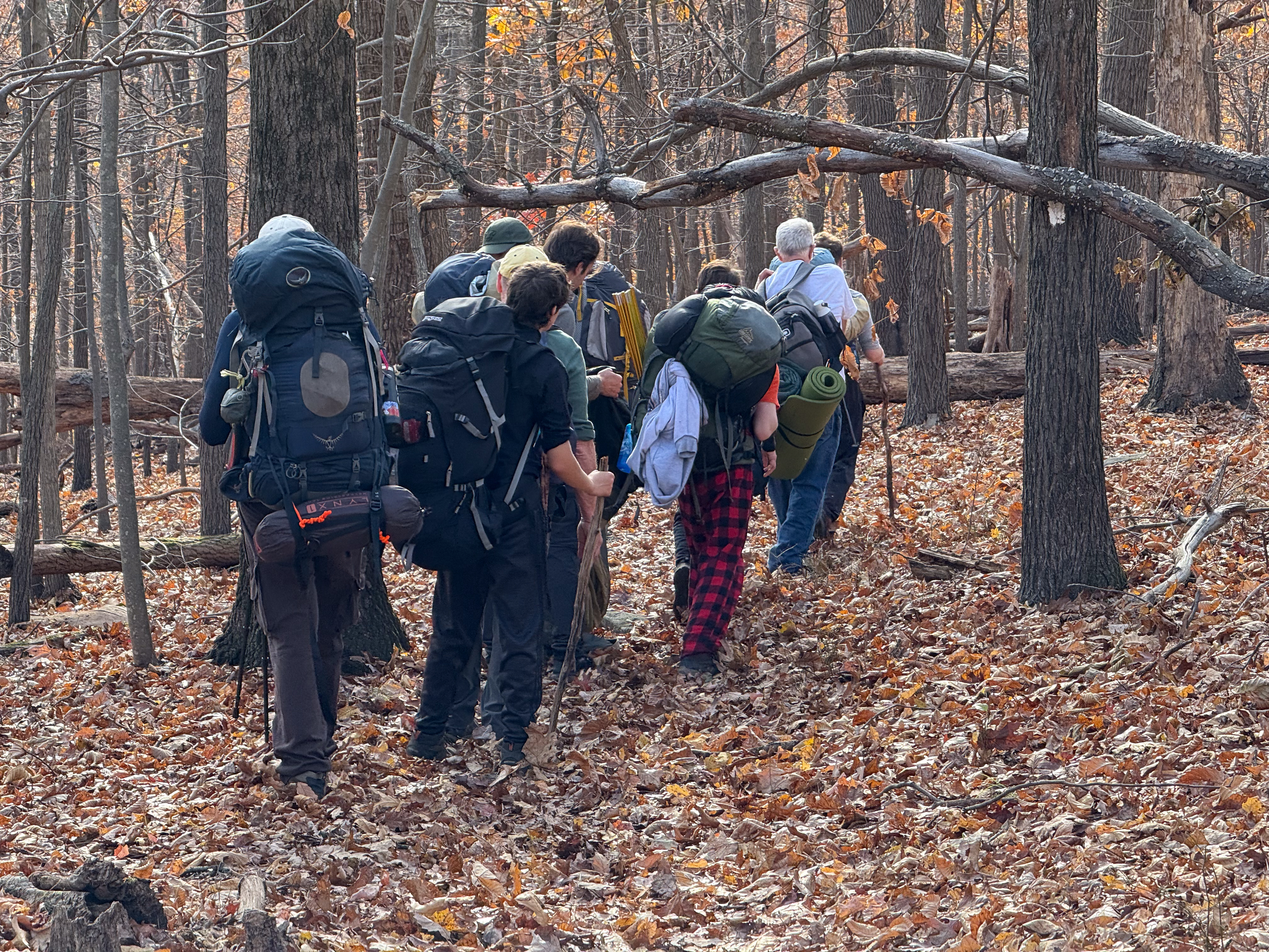 On 7-9 November 2025 we camped at the Antietam Creek Campground on Friday night. On Saturday we split into groups for a long backpack and a shorter one. The shorter hike, around 6 miles, started at Keys Gap. The longer hike, about 13 miles, started at the Harpers Ferry National Park parking lot. Both hike ended the day at the Blackburn Trail Center campground. We hiked about about 1.5 miles on Sunday to a location along the road where the vehicles pick up everyone.Saturday started out very foggy. It mostly cleared by the time we started hiking and was cool and comfortable for hiking. Both groups had enjoyable hikes with very few issues along the way. After dinner the group walked up to the ridge to enjoy the view in the dark.