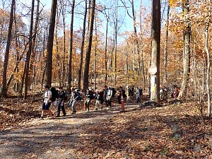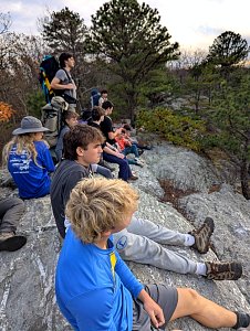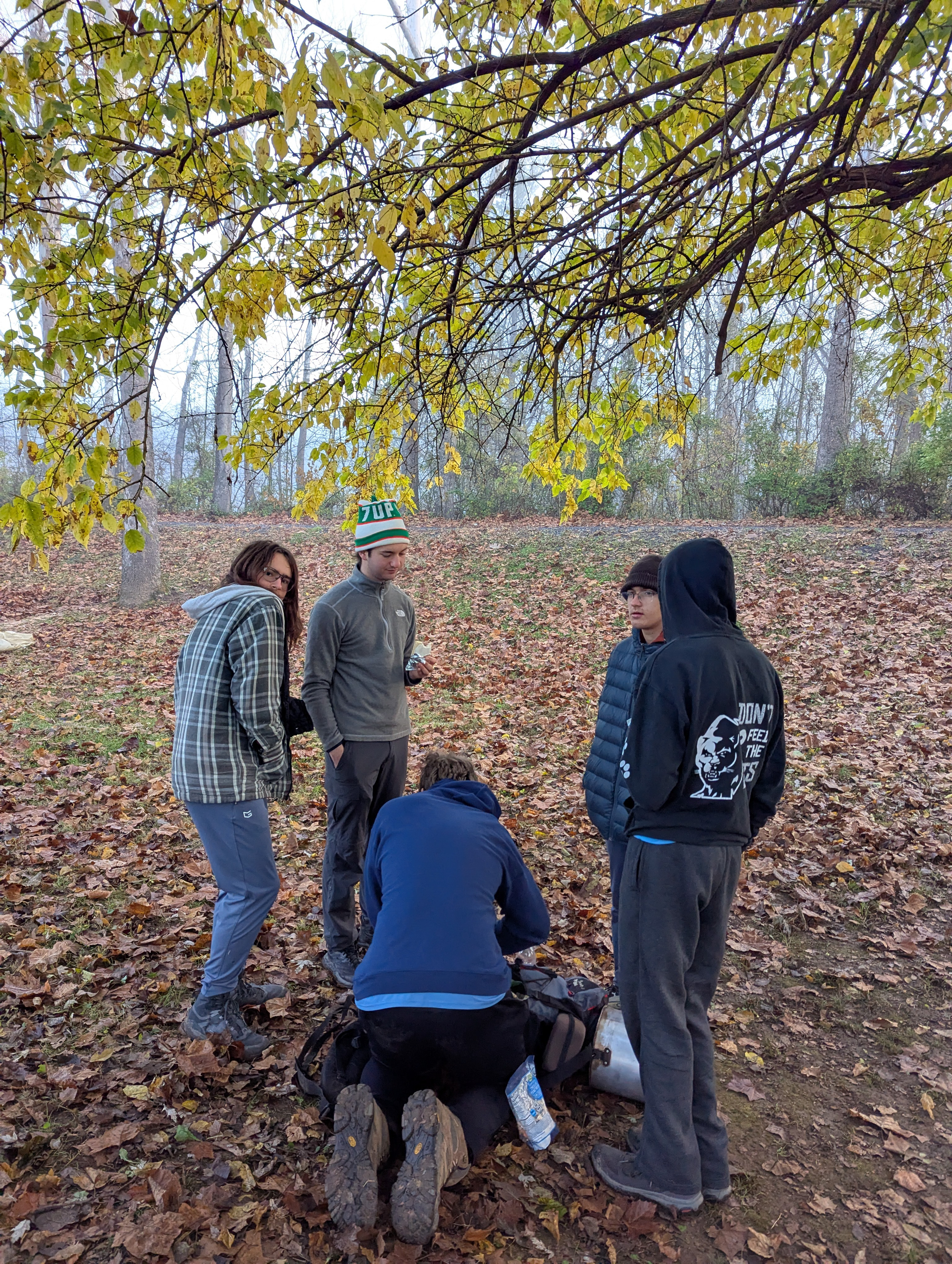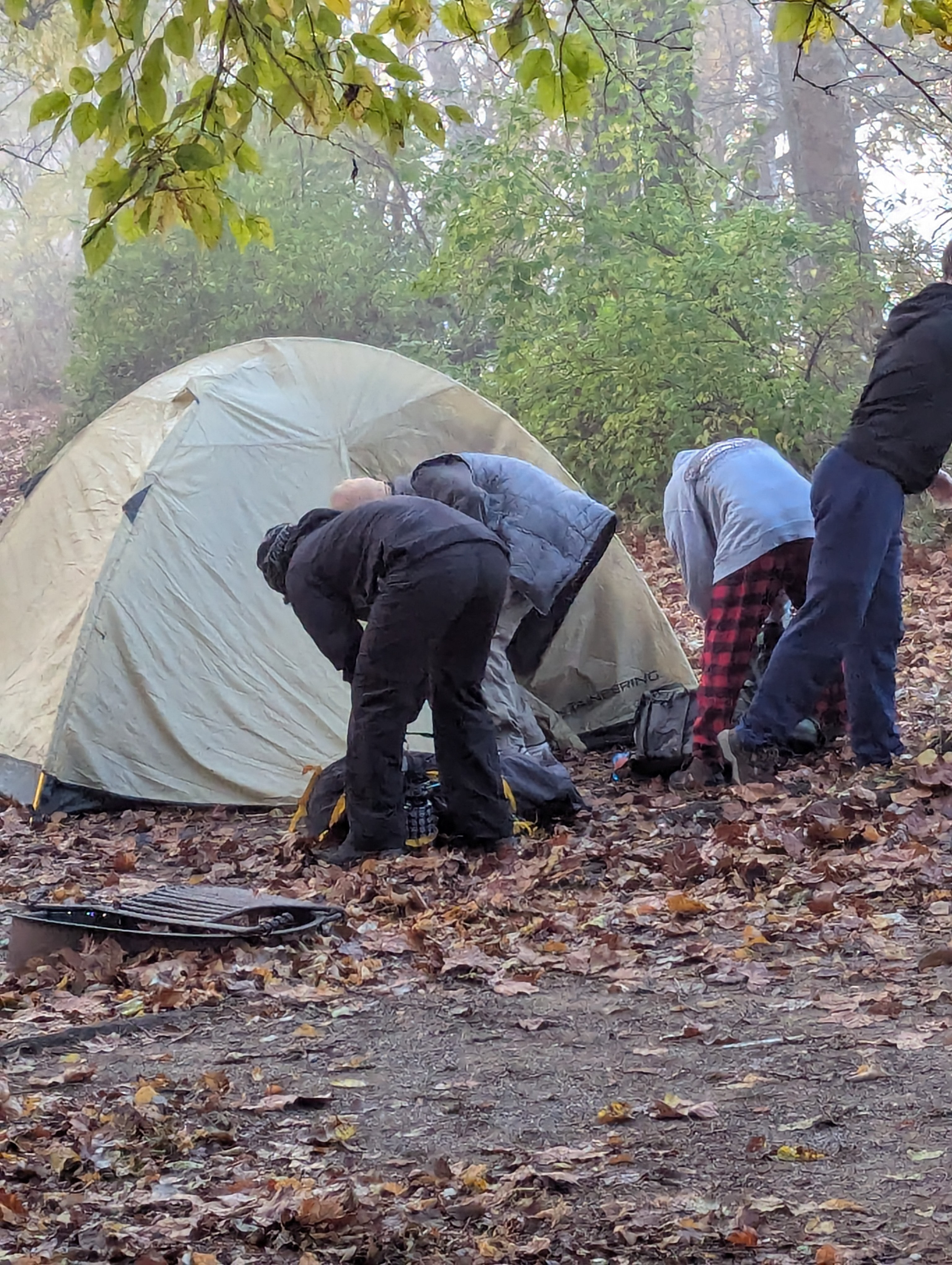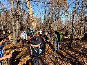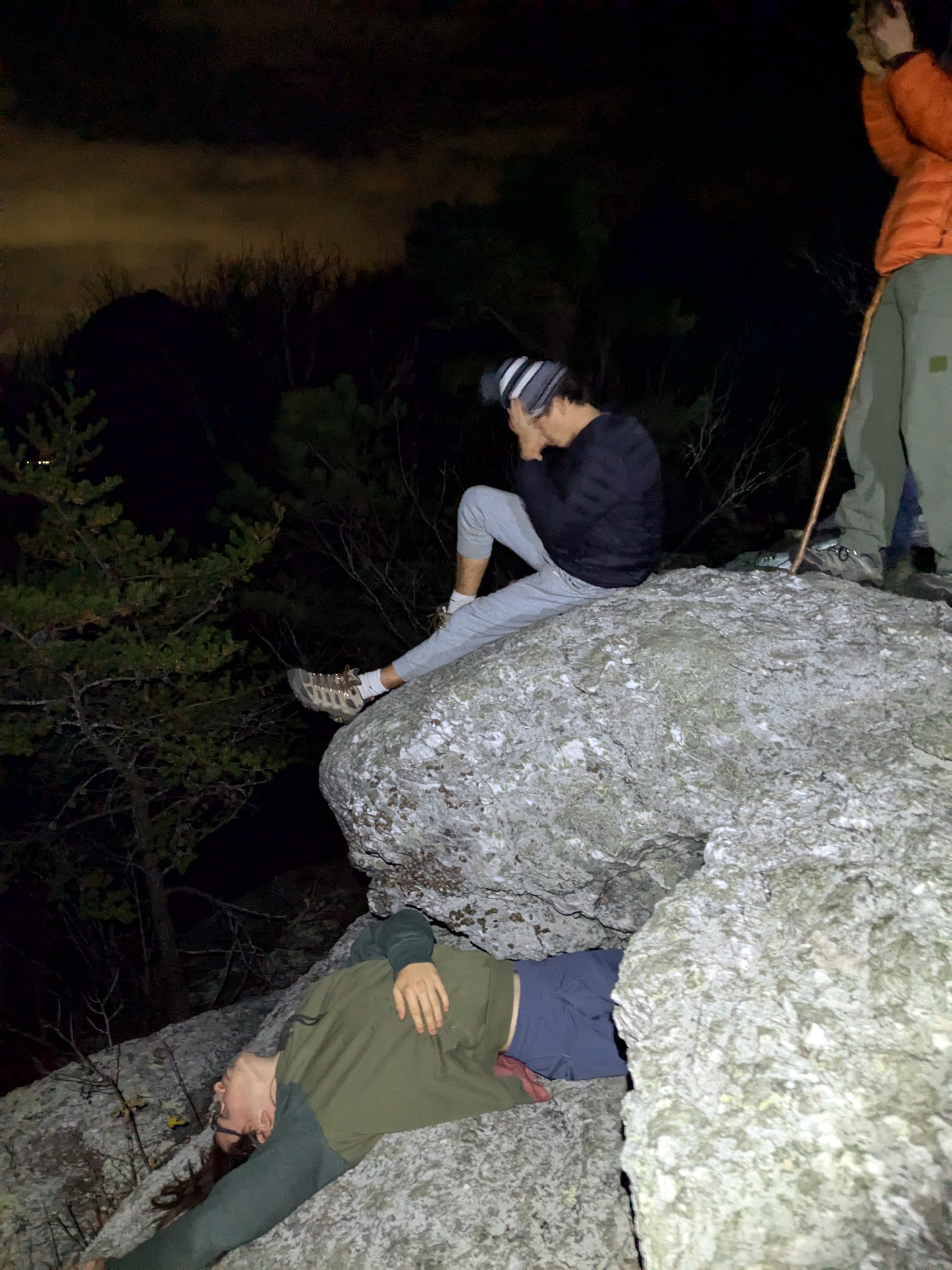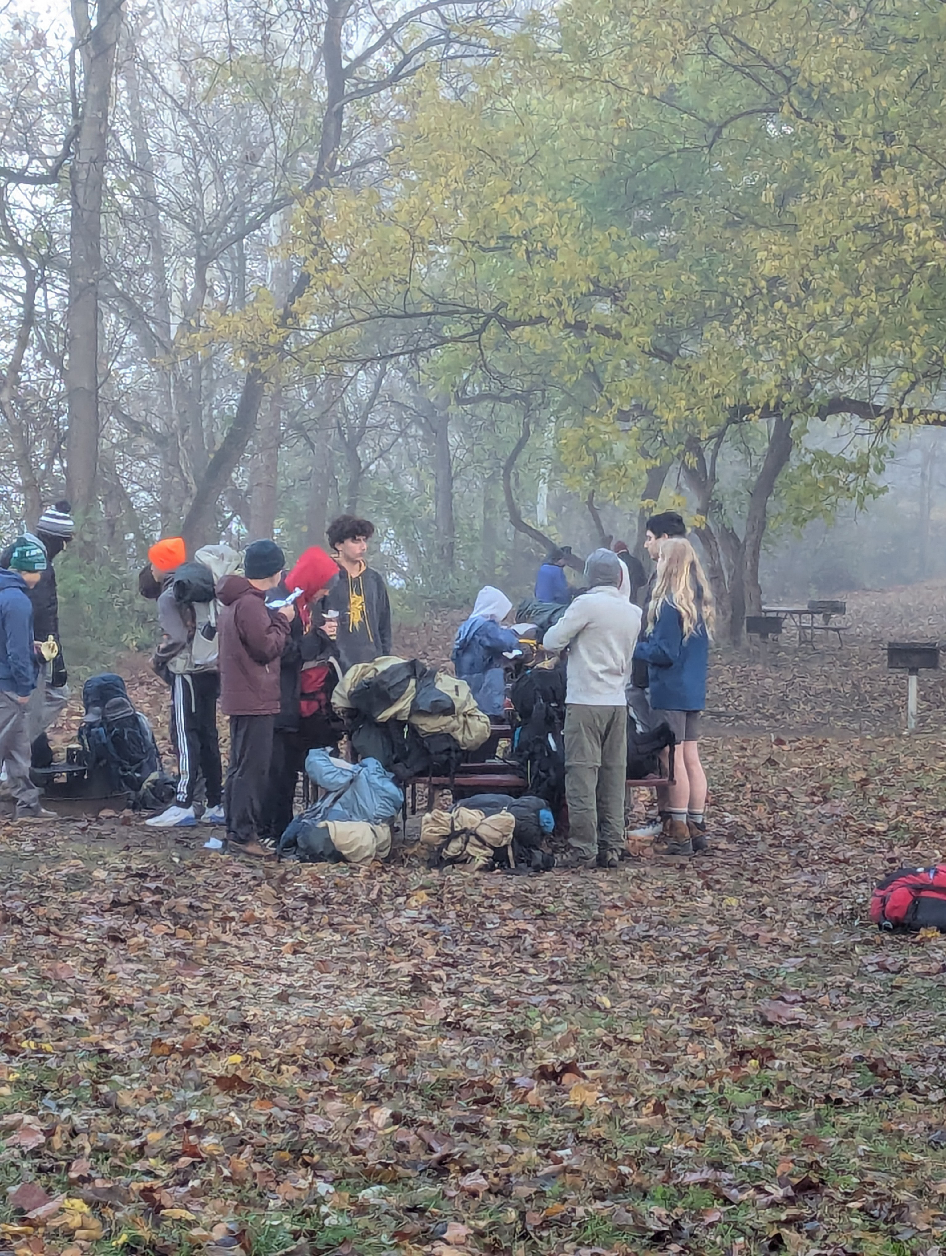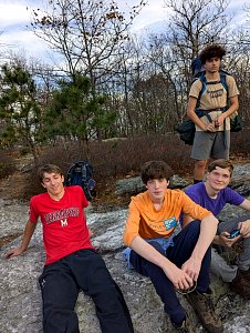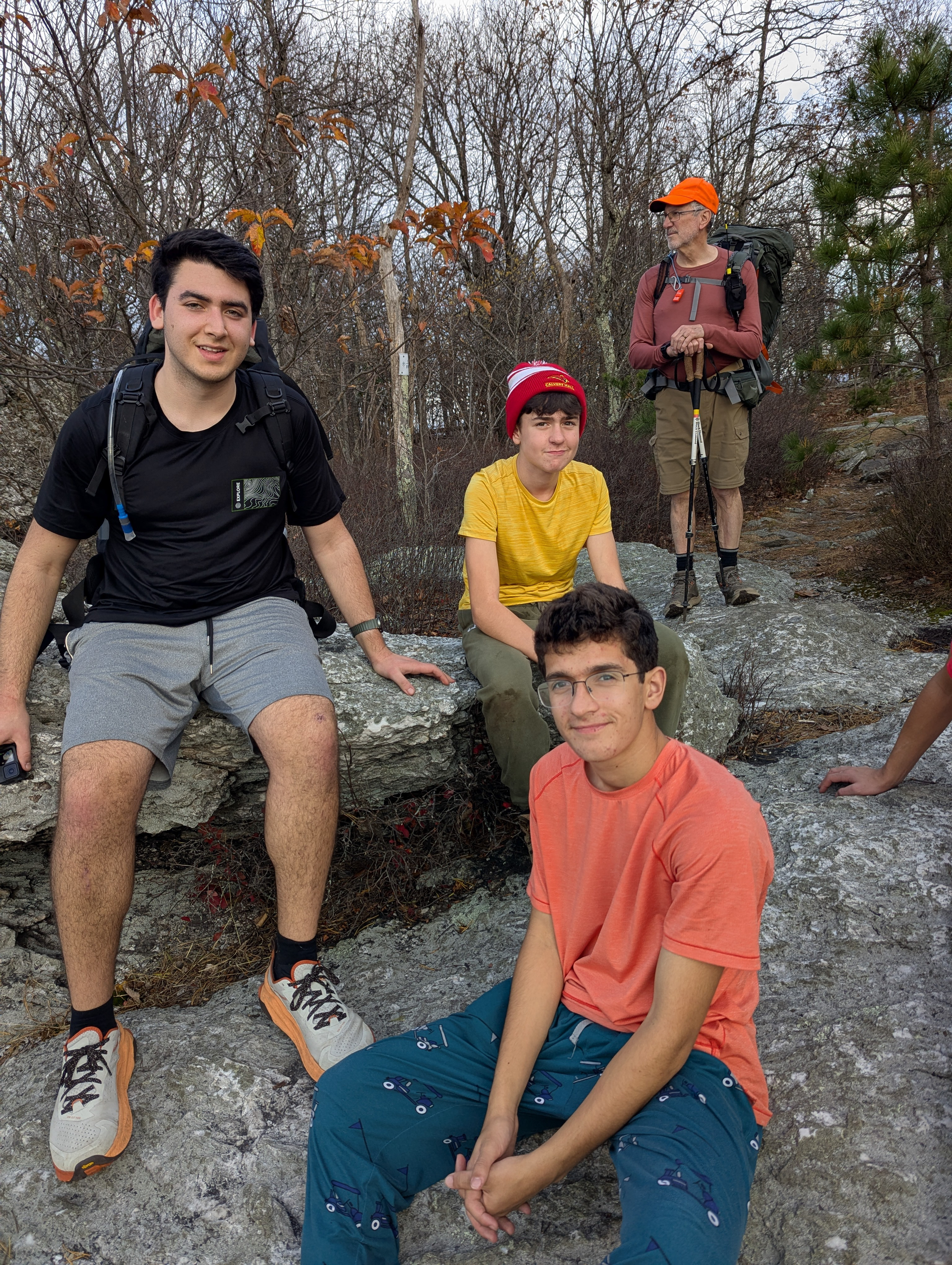 On 7-9 November 2025 we camped at the Antietam Creek Campground on Friday night. On Saturday we split into groups for a long backpack and a shorter one. The shorter hike, around 6 miles, started at Keys Gap. The longer hike, about 13 miles, started at the Harpers Ferry National Park parking lot. Both hike ended the day at the Blackburn Trail Center campground. We hiked about about 1.5 miles on Sunday to a location along the road where the vehicles pick up everyone.Saturday started out very foggy. It mostly cleared by the time we started hiking and was cool and comfortable for hiking. Both groups had enjoyable hikes with very few issues along the way. After dinner the group walked up to the ridge to enjoy the view in the dark.