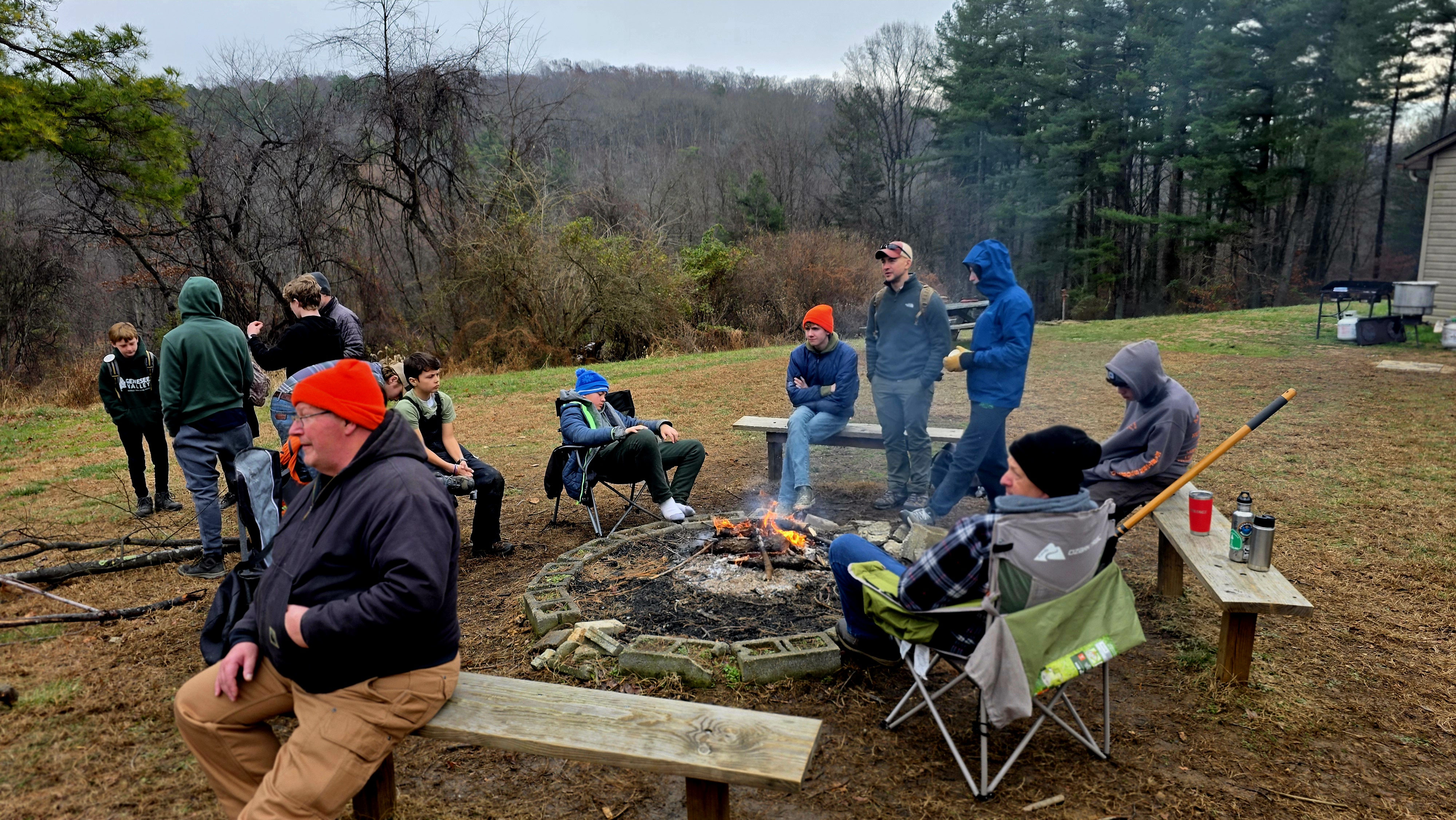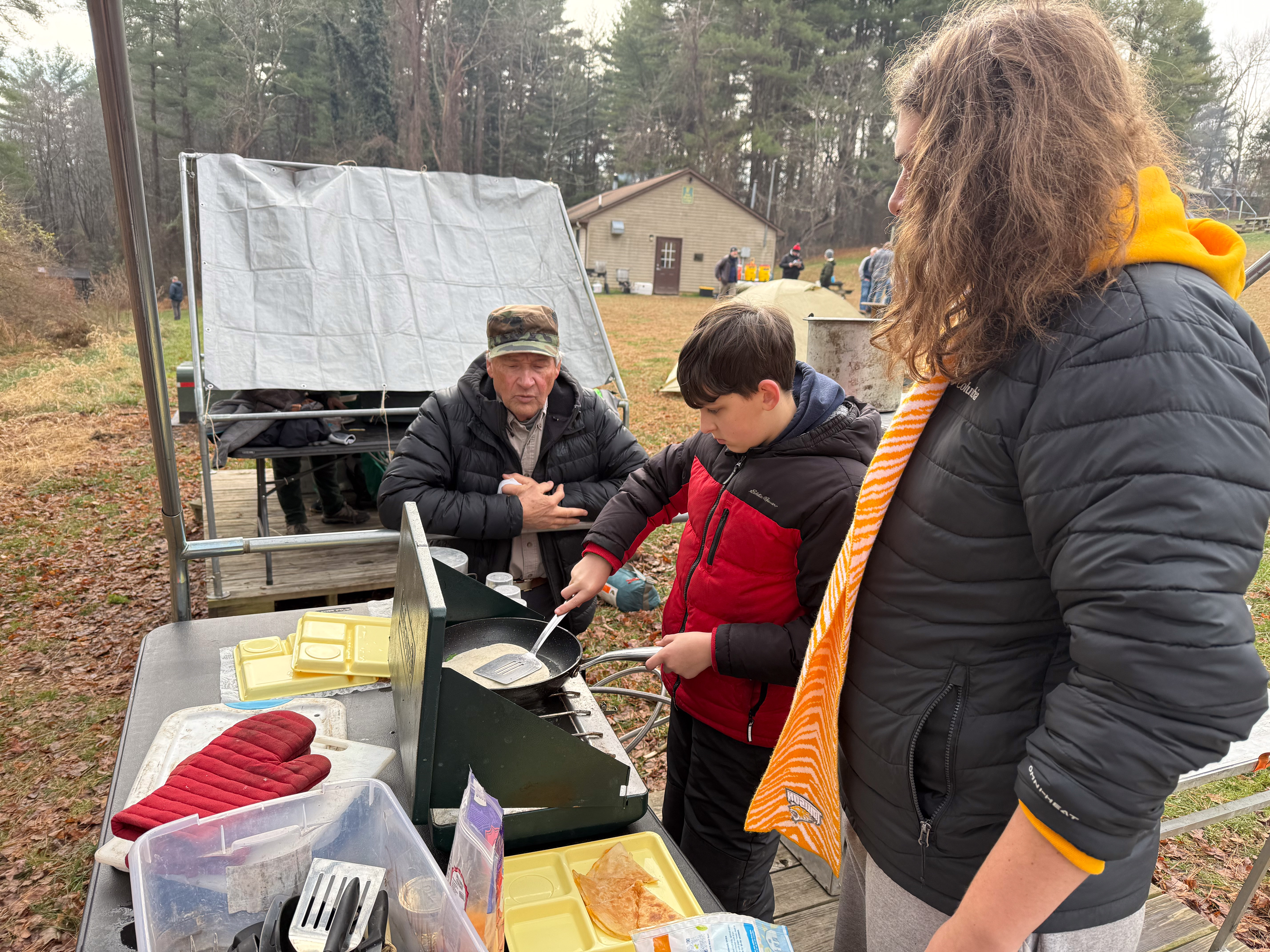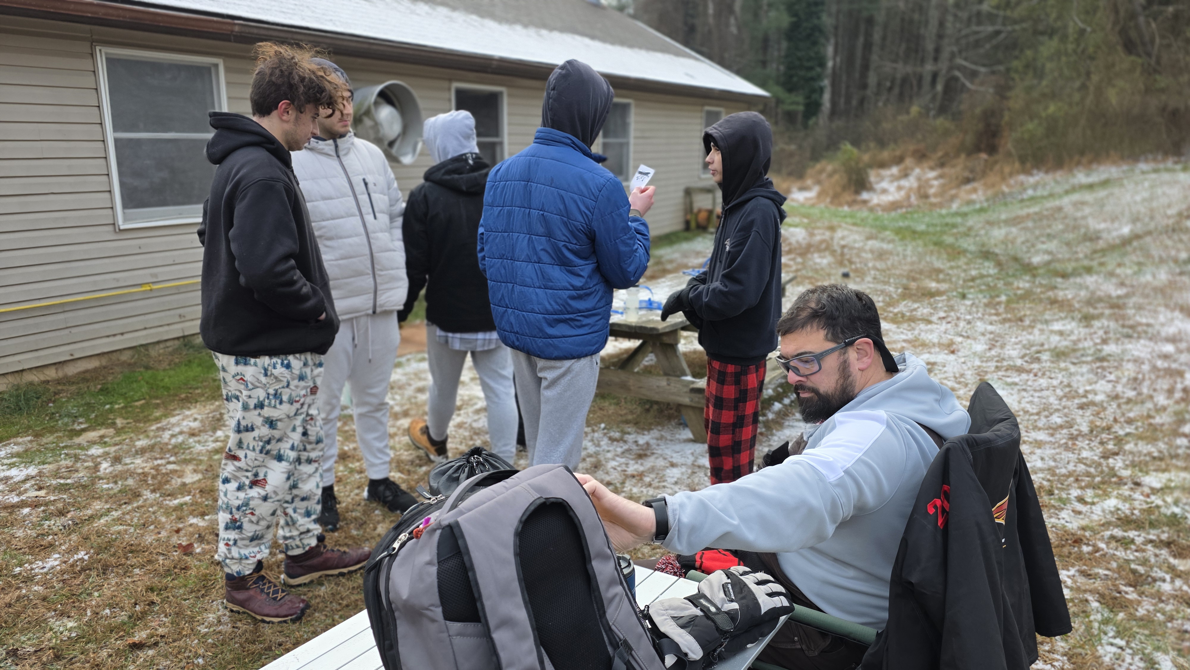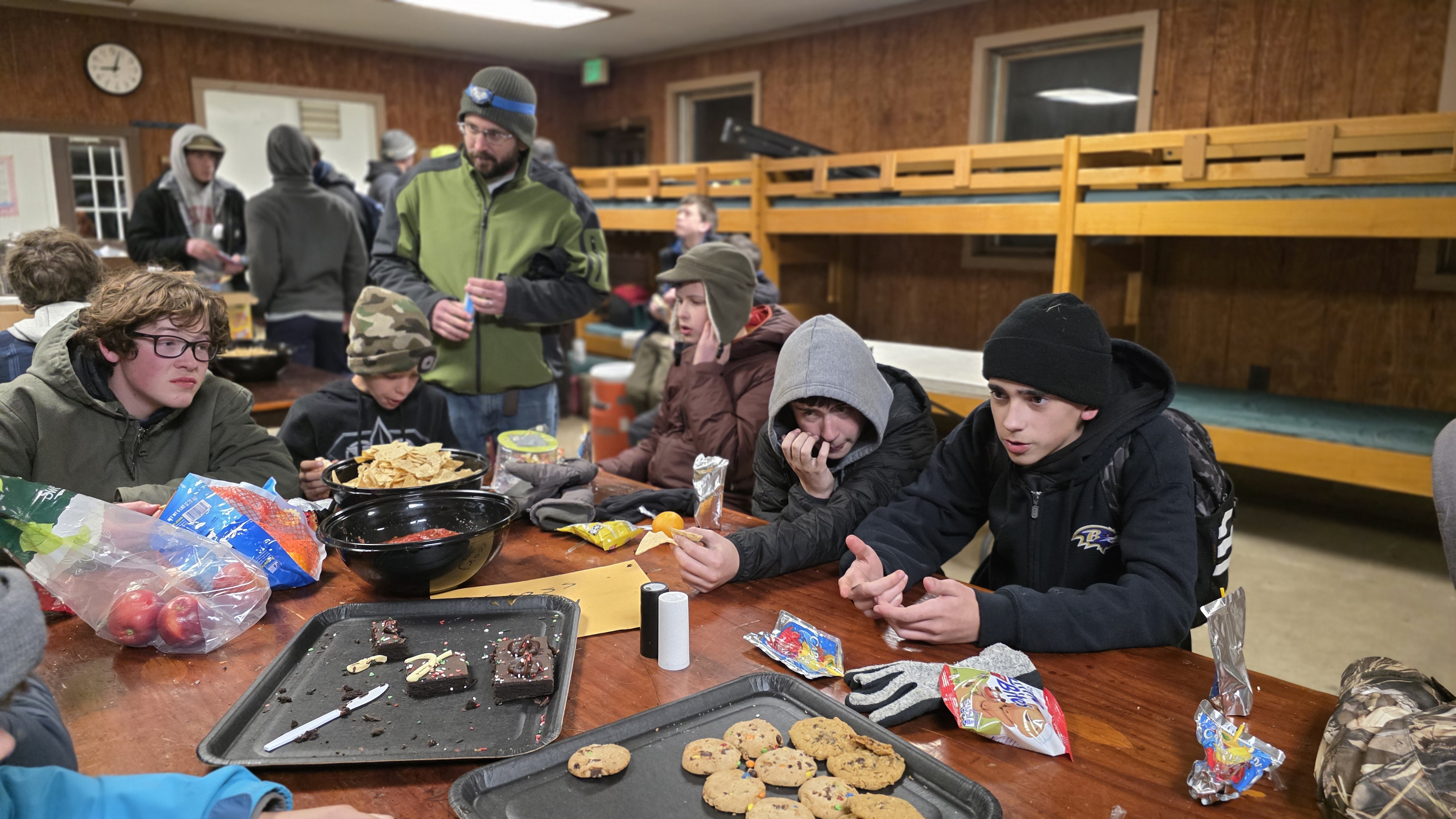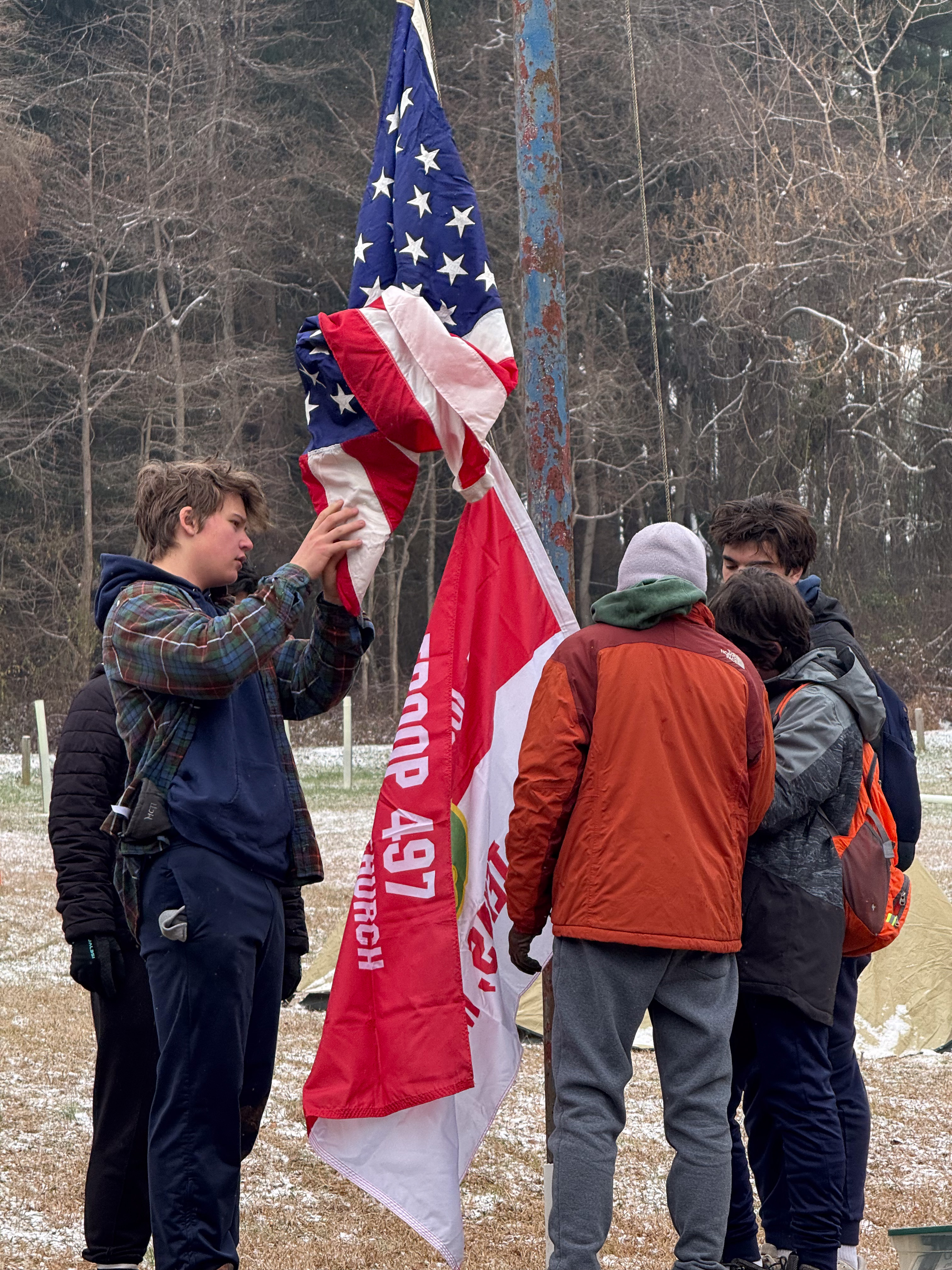 Senior Surprise took place at Camp Dan Beard, Broad Creek Memorial Scout Reservation, in Whiteford, MD on December 5-7, 2025. Friday evening we had snow on the ground and flurries while we were setting up camp. Temperatures dropped to 24°F on Saturday morning and 27°F on Sunday morning.Saturday was spent with the boys conquering the tasks set out in the Senior Surprise contest, which was a lot of fun for everyone. The clues added up to the theme of Song Fest. During the last song fest of 2025 around the campfire we had a special visit from Santa Claus.