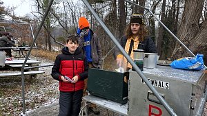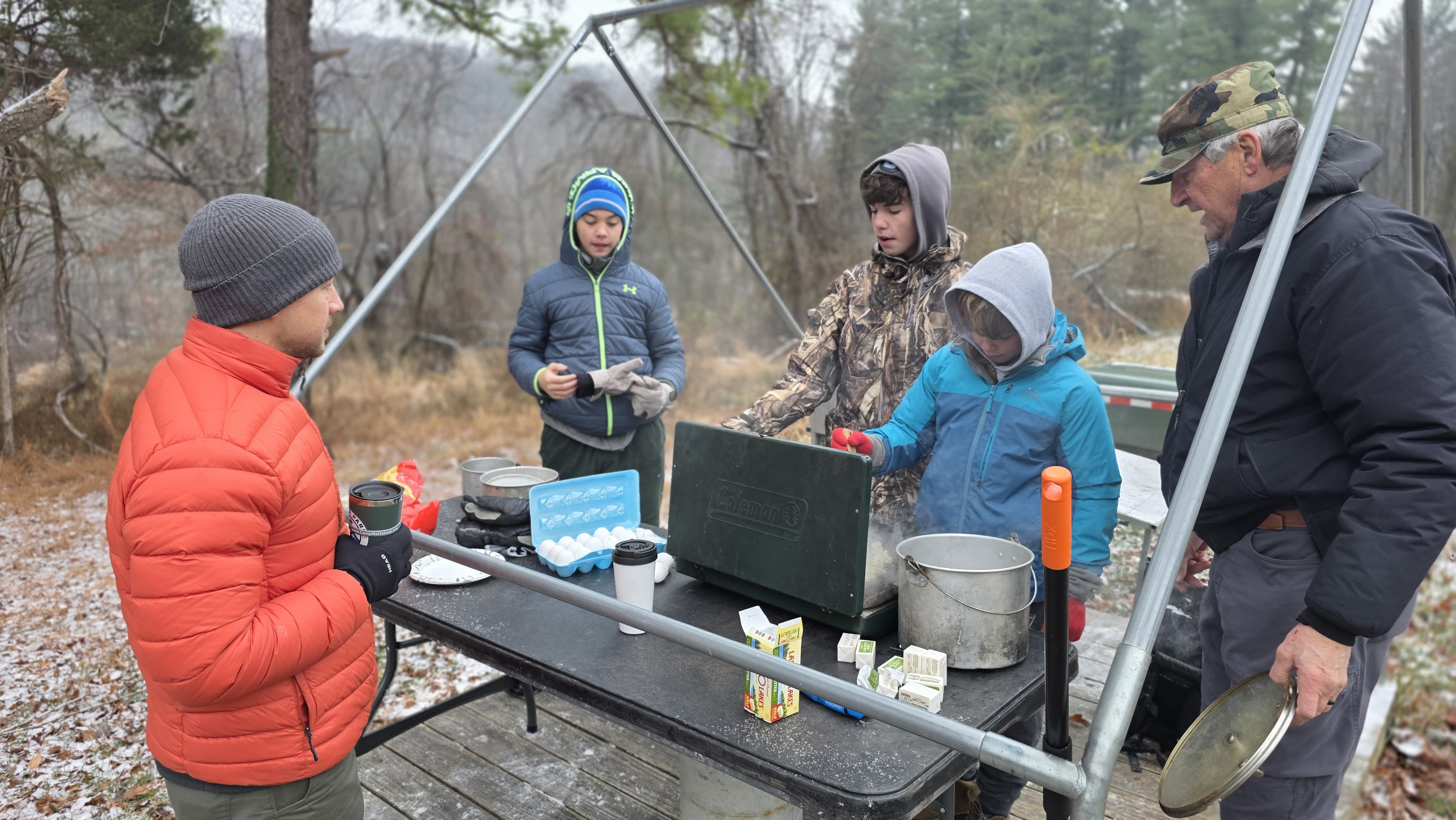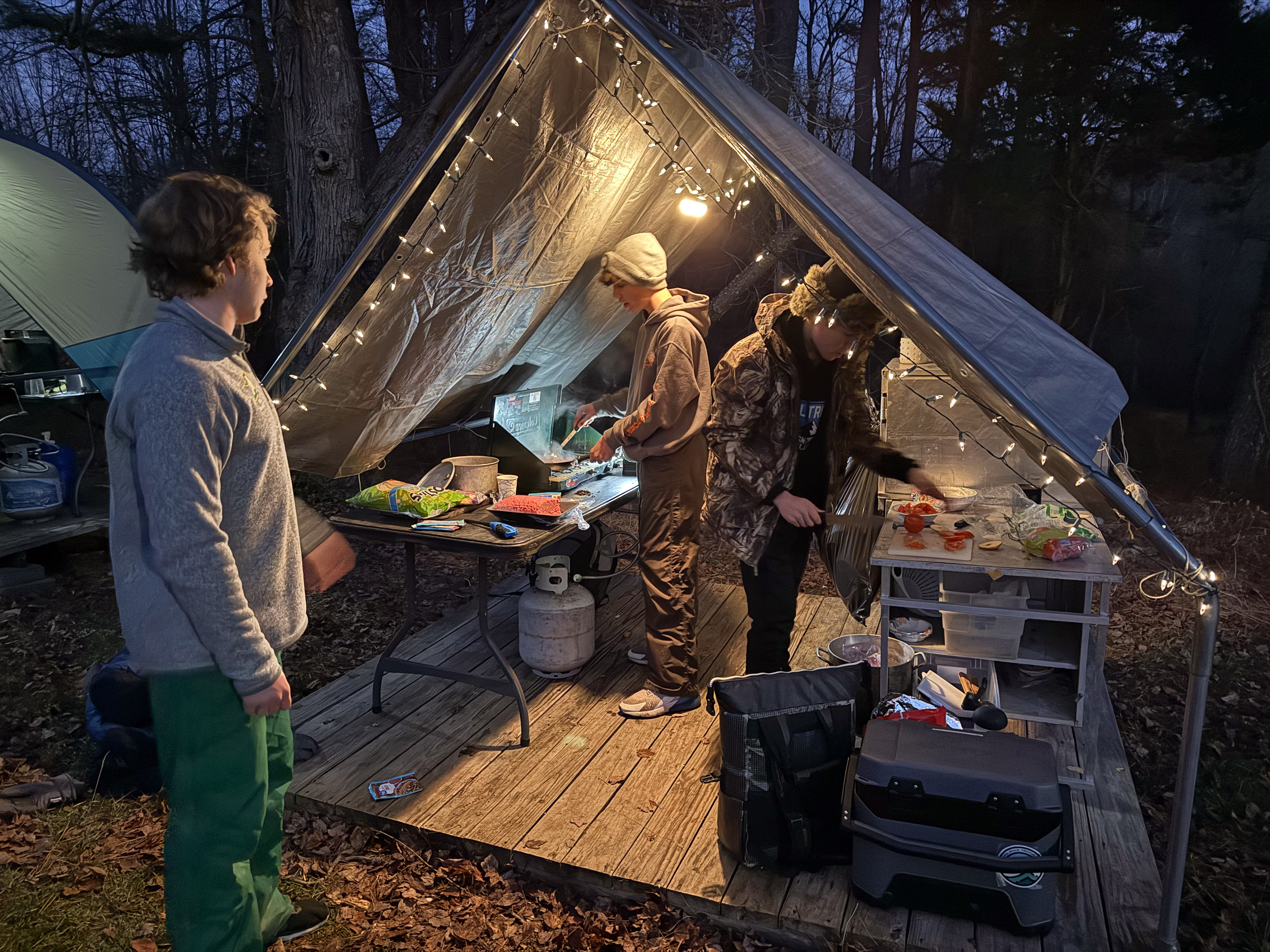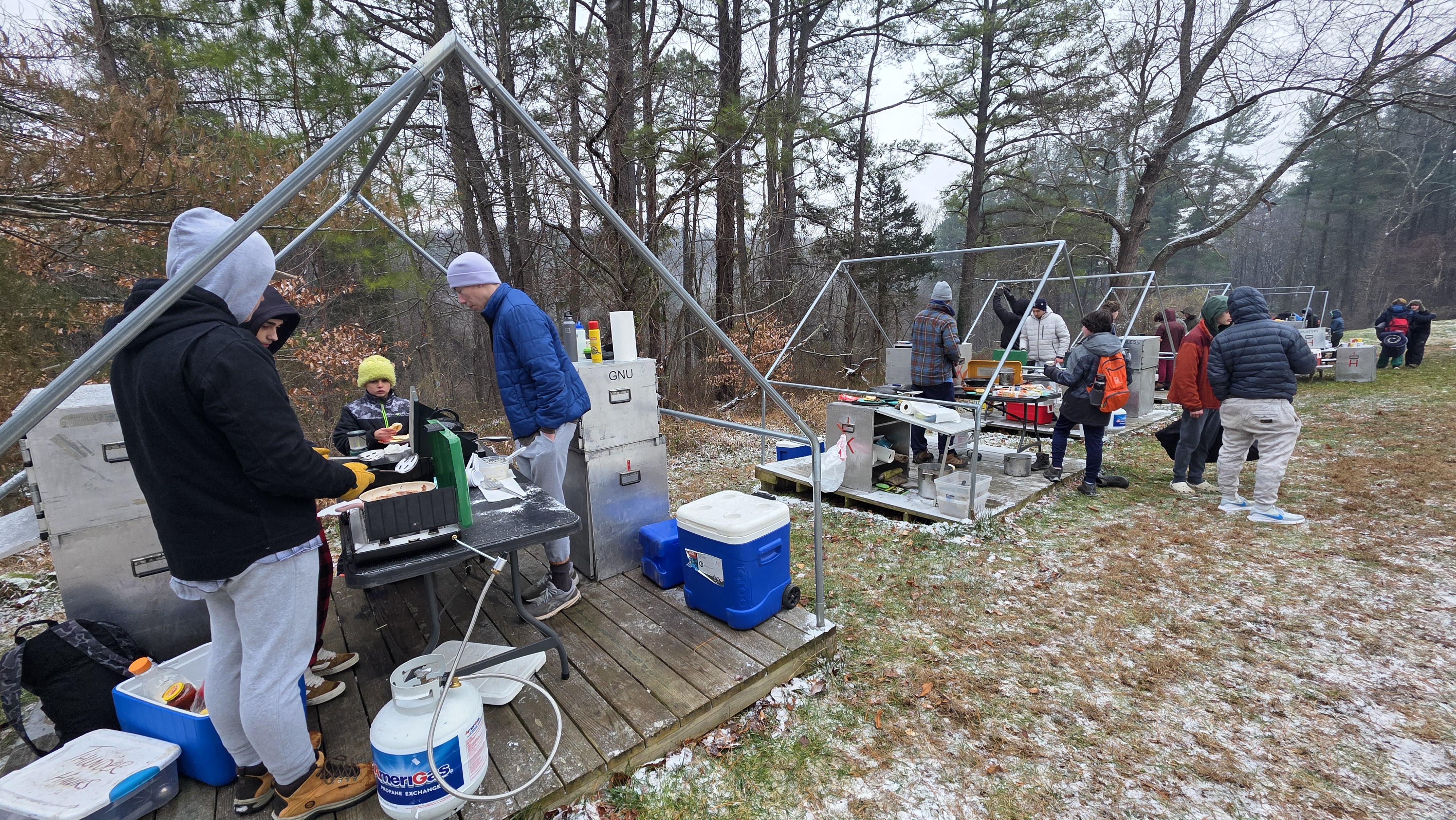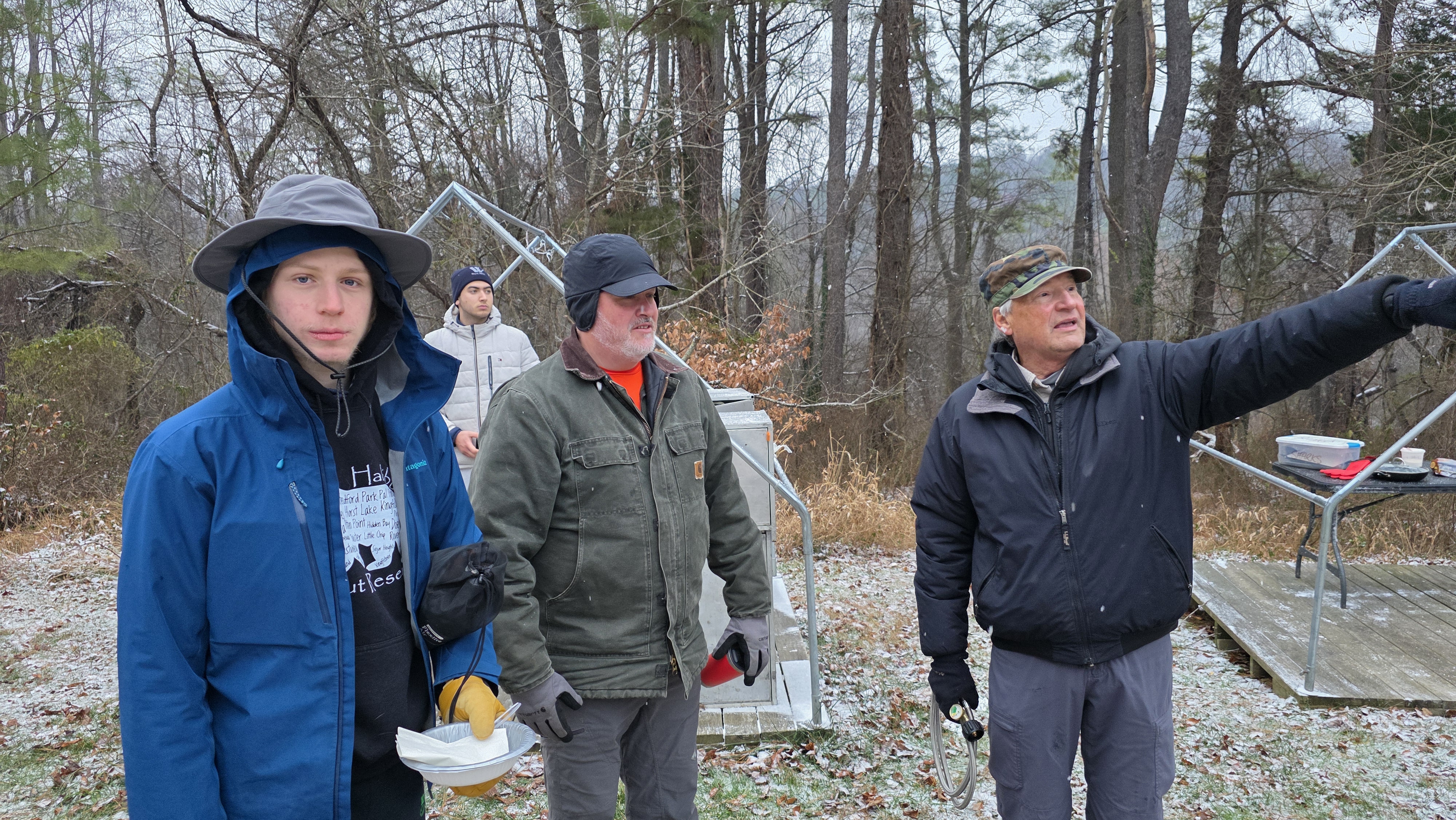 Senior Surprise took place at Camp Dan Beard, Broad Creek Memorial Scout Reservation, in Whiteford, MD on December 5-7, 2025. Friday evening we had snow on the ground and flurries while we were setting up camp. Temperatures dropped to 24°F on Saturday morning and 27°F on Sunday morning.Saturday was spent with the boys conquering the tasks set out in the Senior Surprise contest, which was a lot of fun for everyone. The clues added up to the theme of Song Fest. During the last song fest of 2025 around the campfire we had a special visit from Santa Claus.