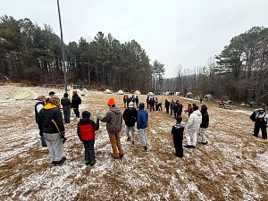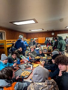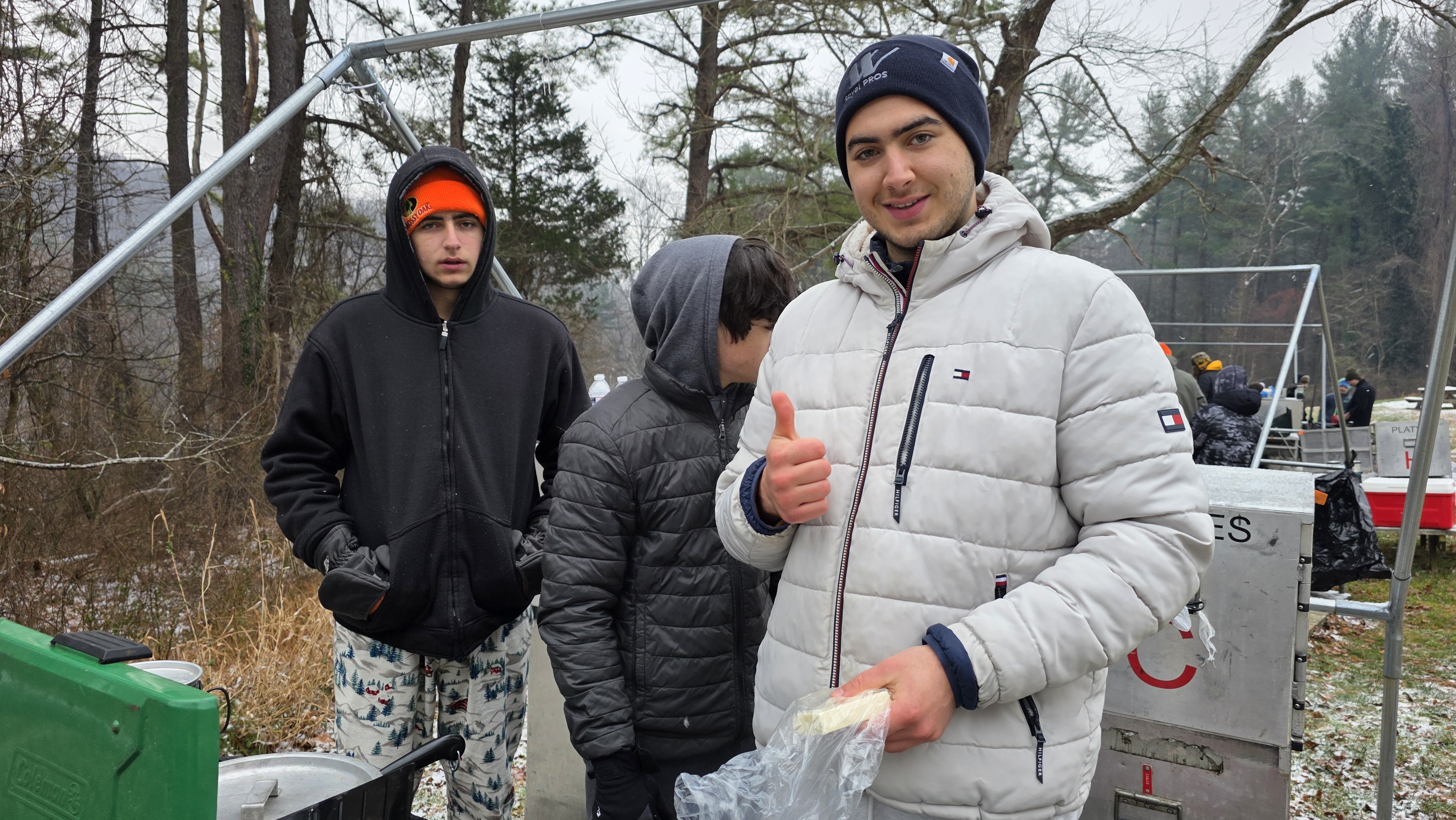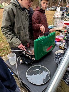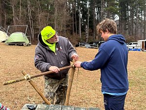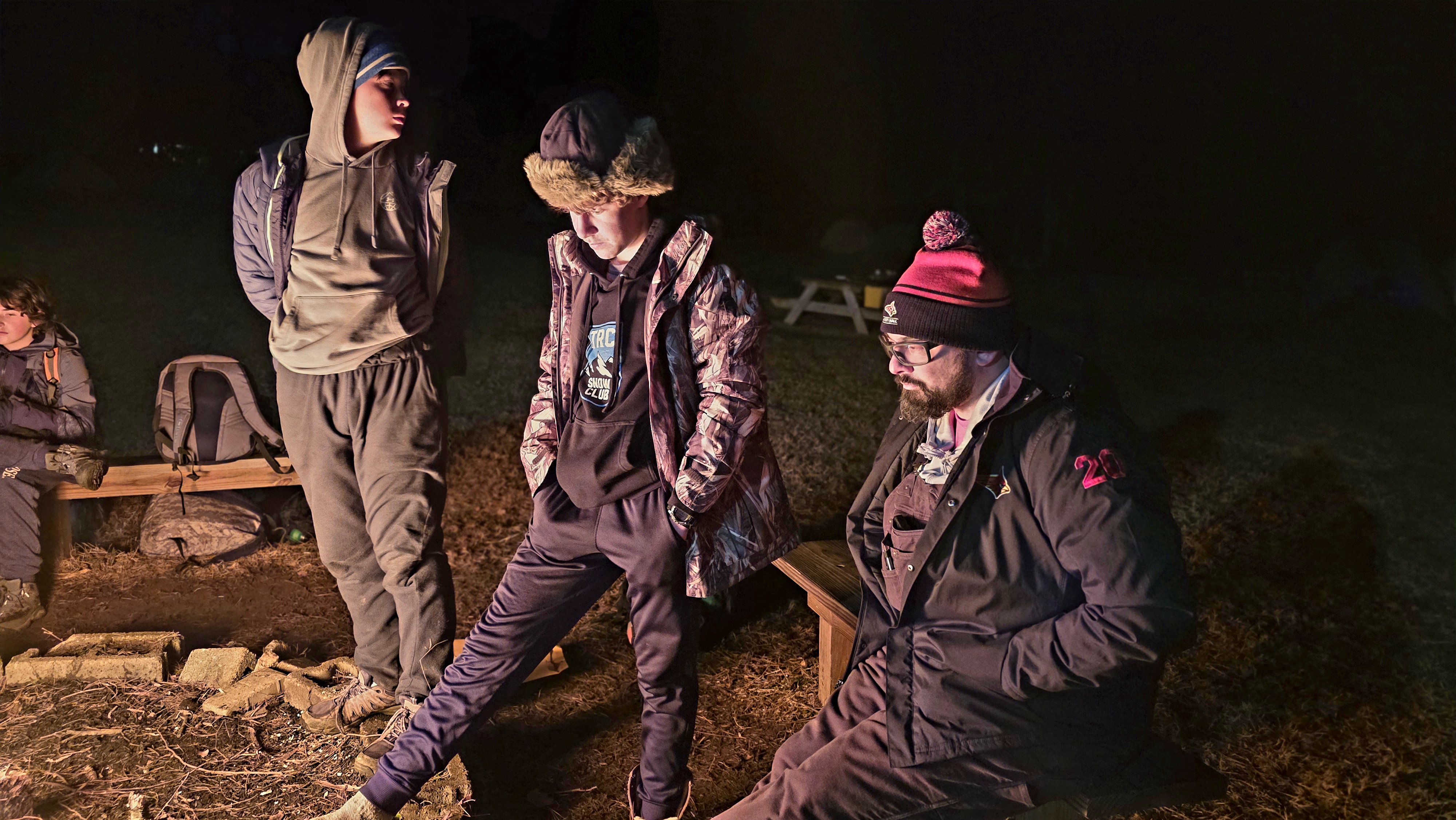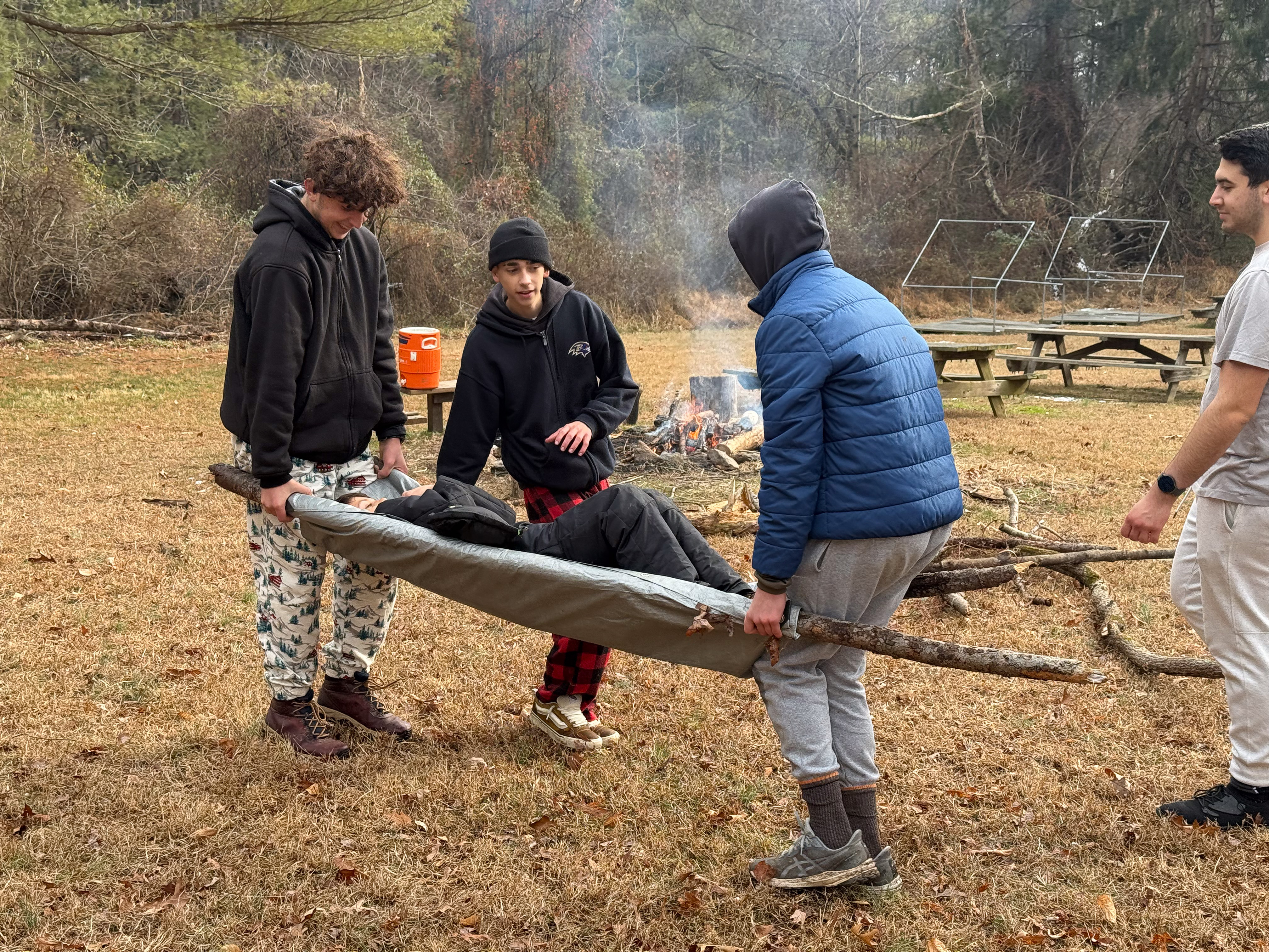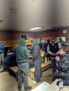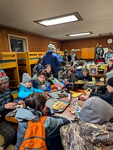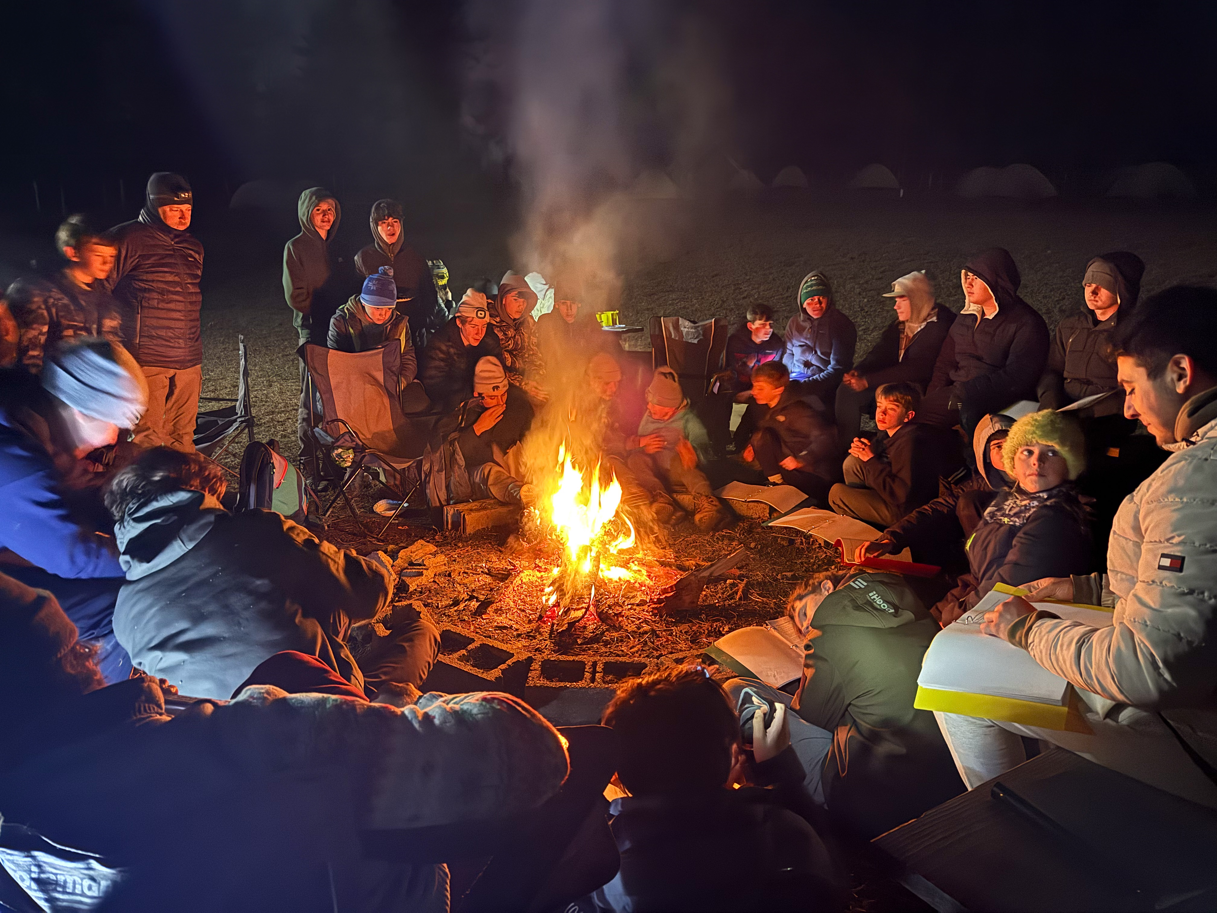 Senior Surprise took place at Camp Dan Beard, Broad Creek Memorial Scout Reservation, in Whiteford, MD on December 5-7, 2025. Friday evening we had snow on the ground and flurries while we were setting up camp. Temperatures dropped to 24°F on Saturday morning and 27°F on Sunday morning.Saturday was spent with the boys conquering the tasks set out in the Senior Surprise contest, which was a lot of fun for everyone. The clues added up to the theme of Song Fest. During the last song fest of 2025 around the campfire we had a special visit from Santa Claus.