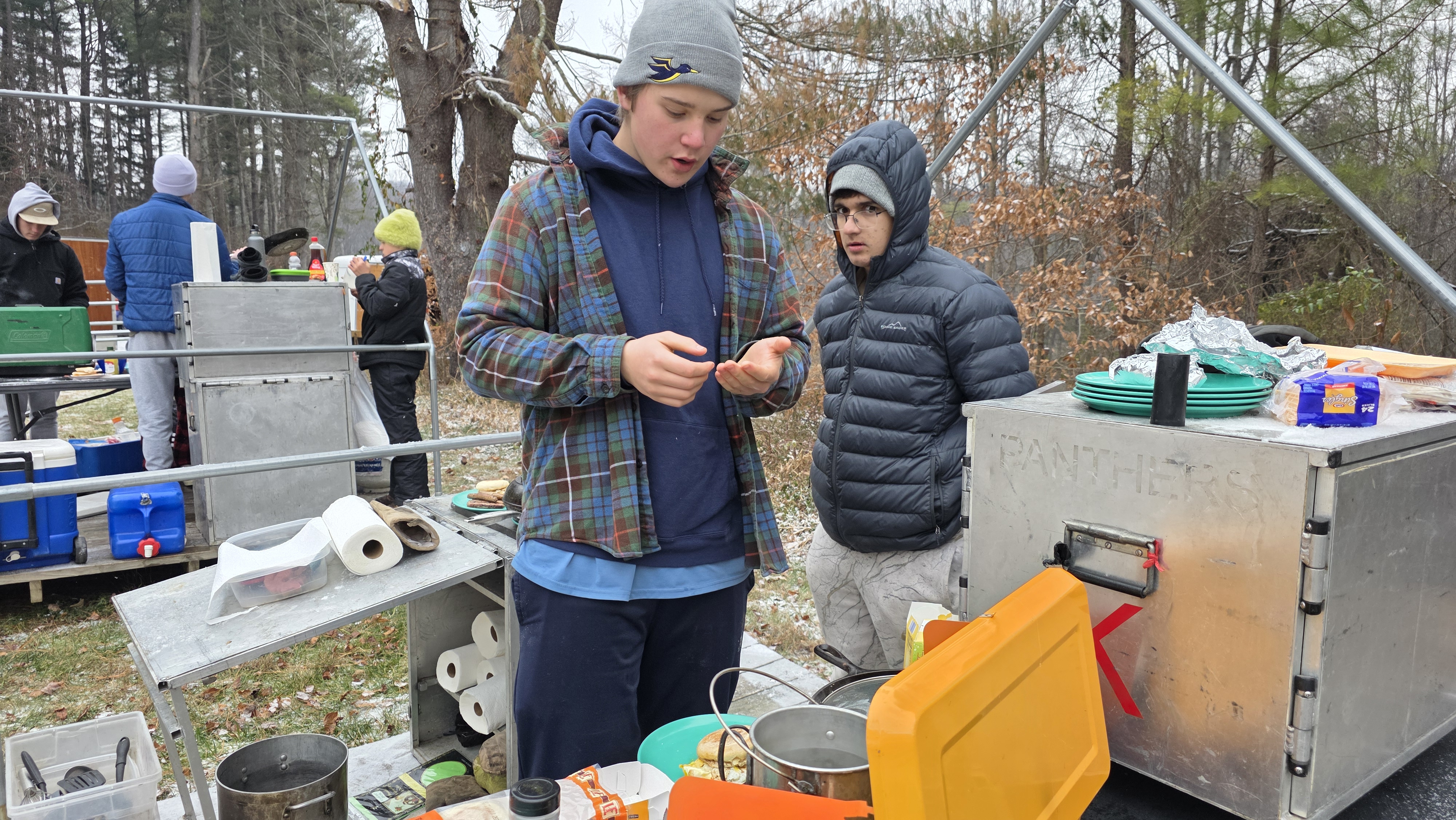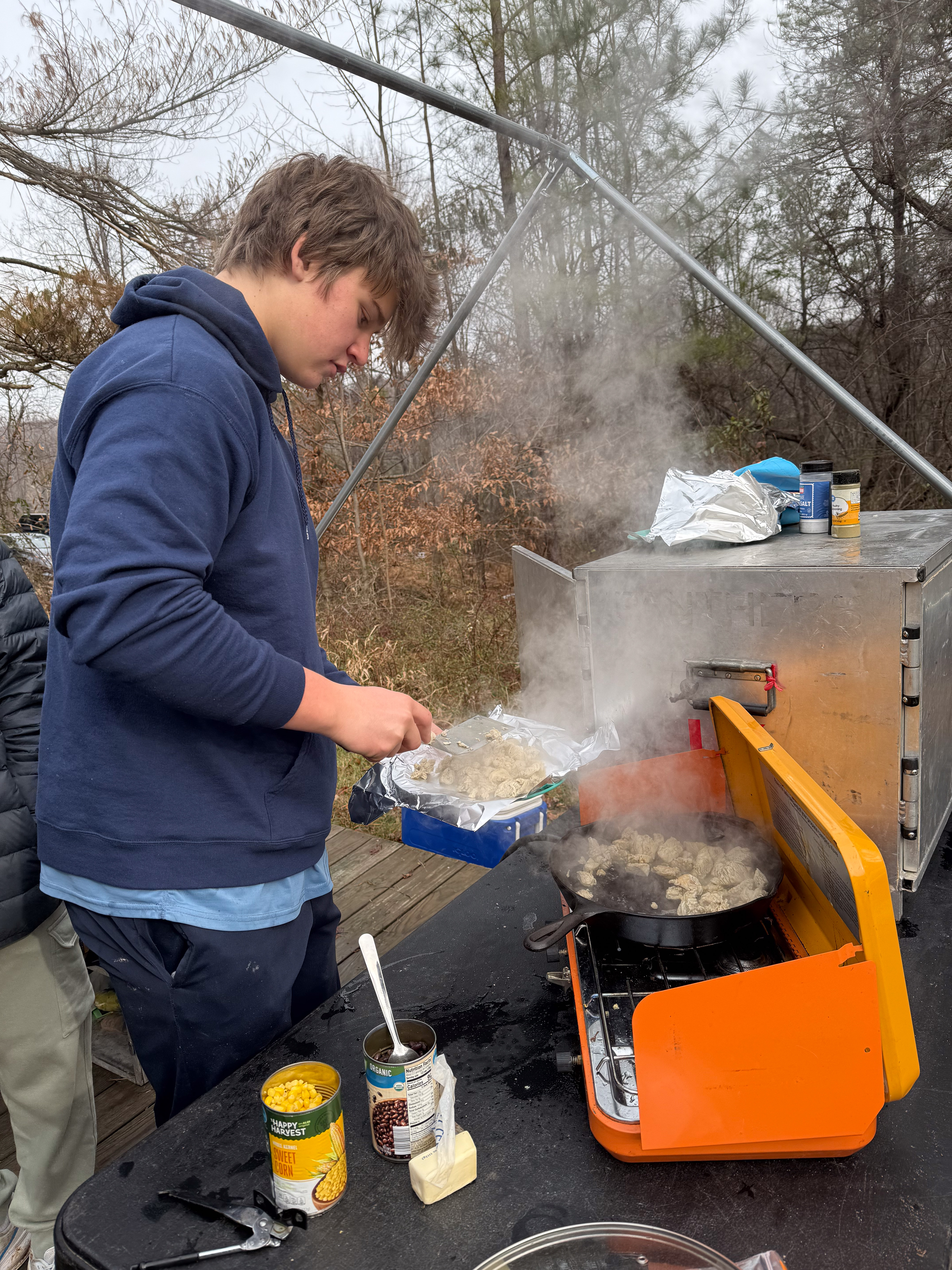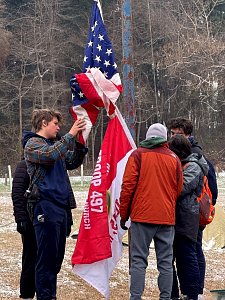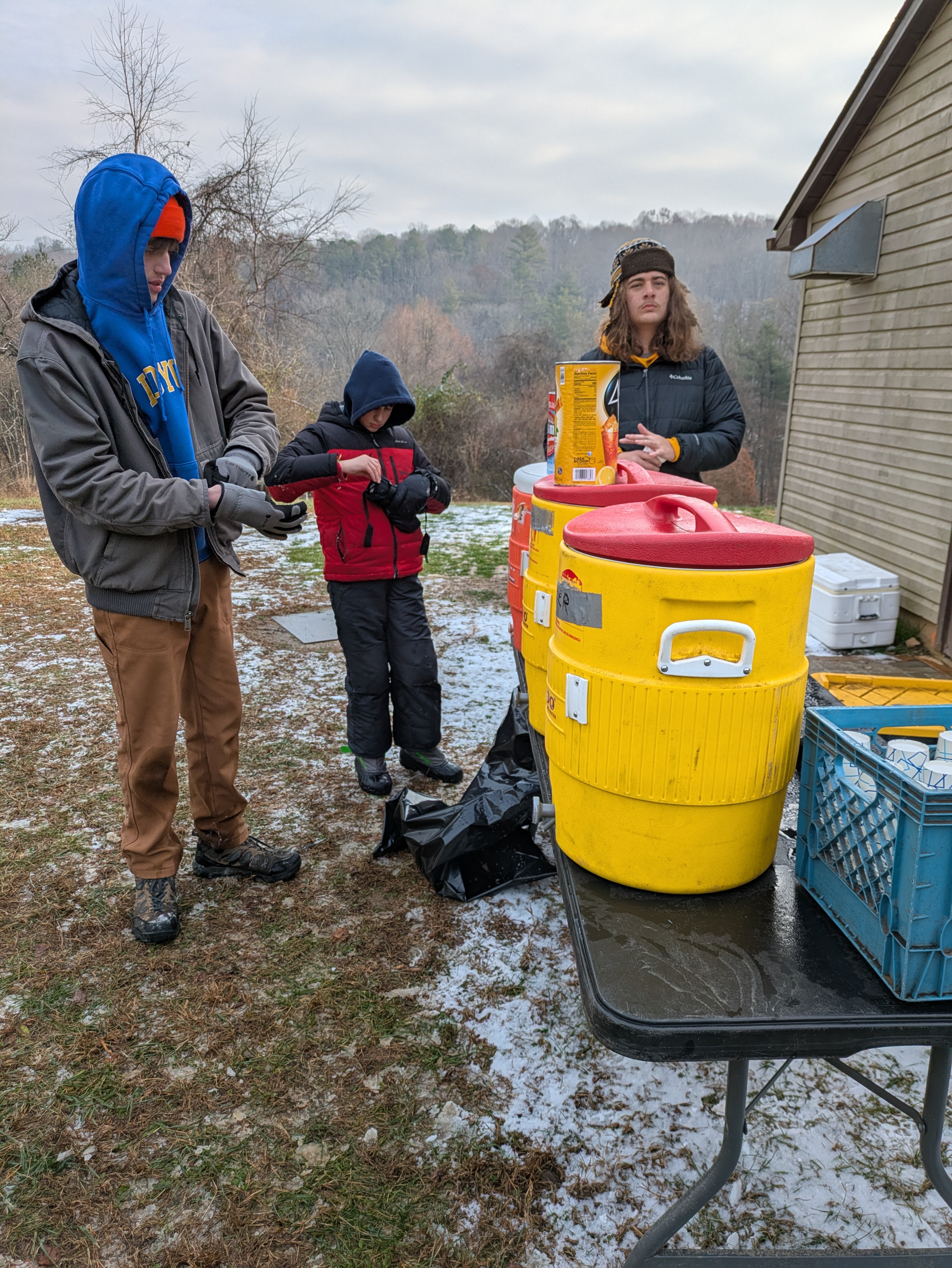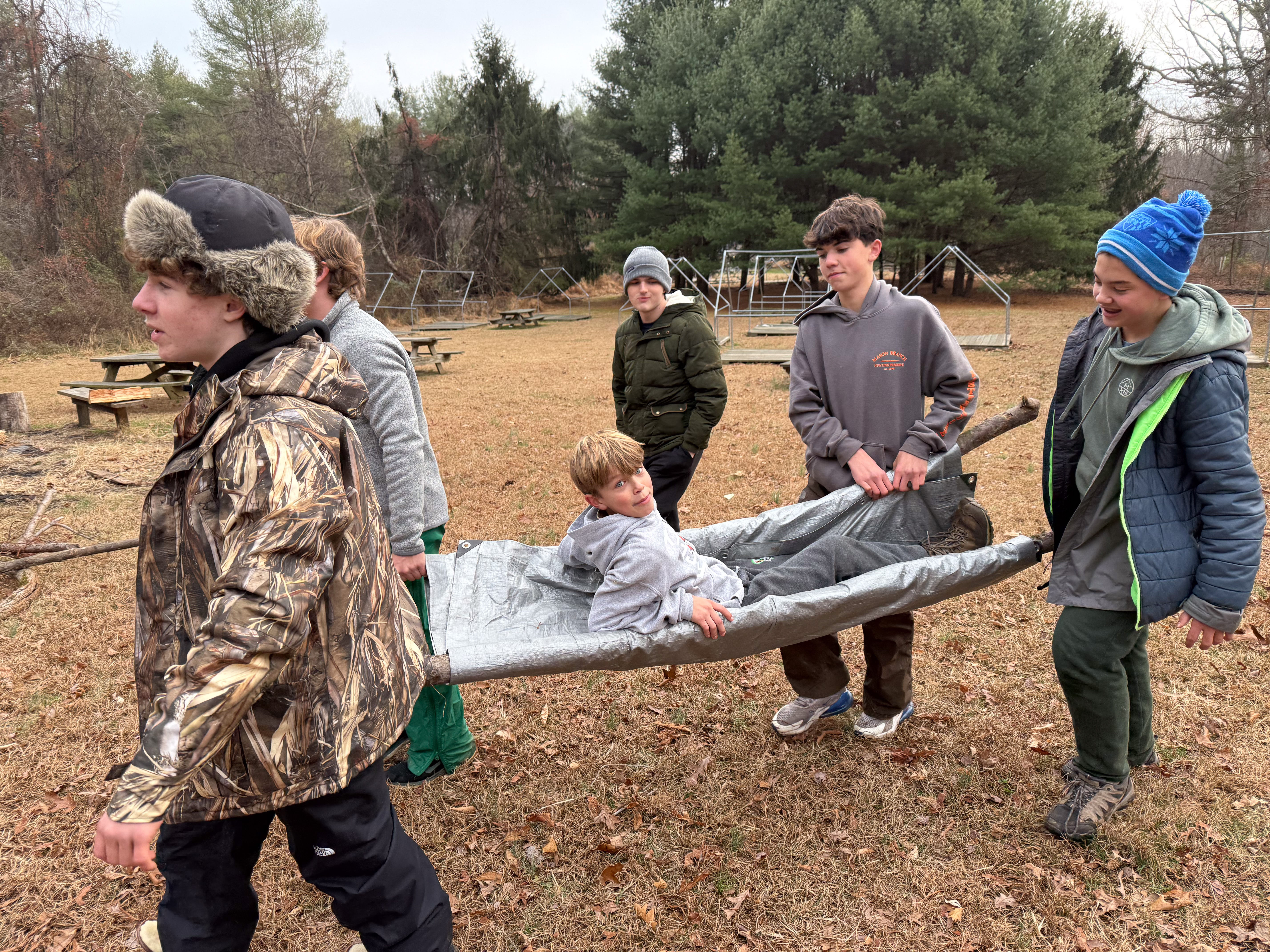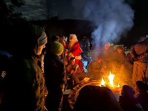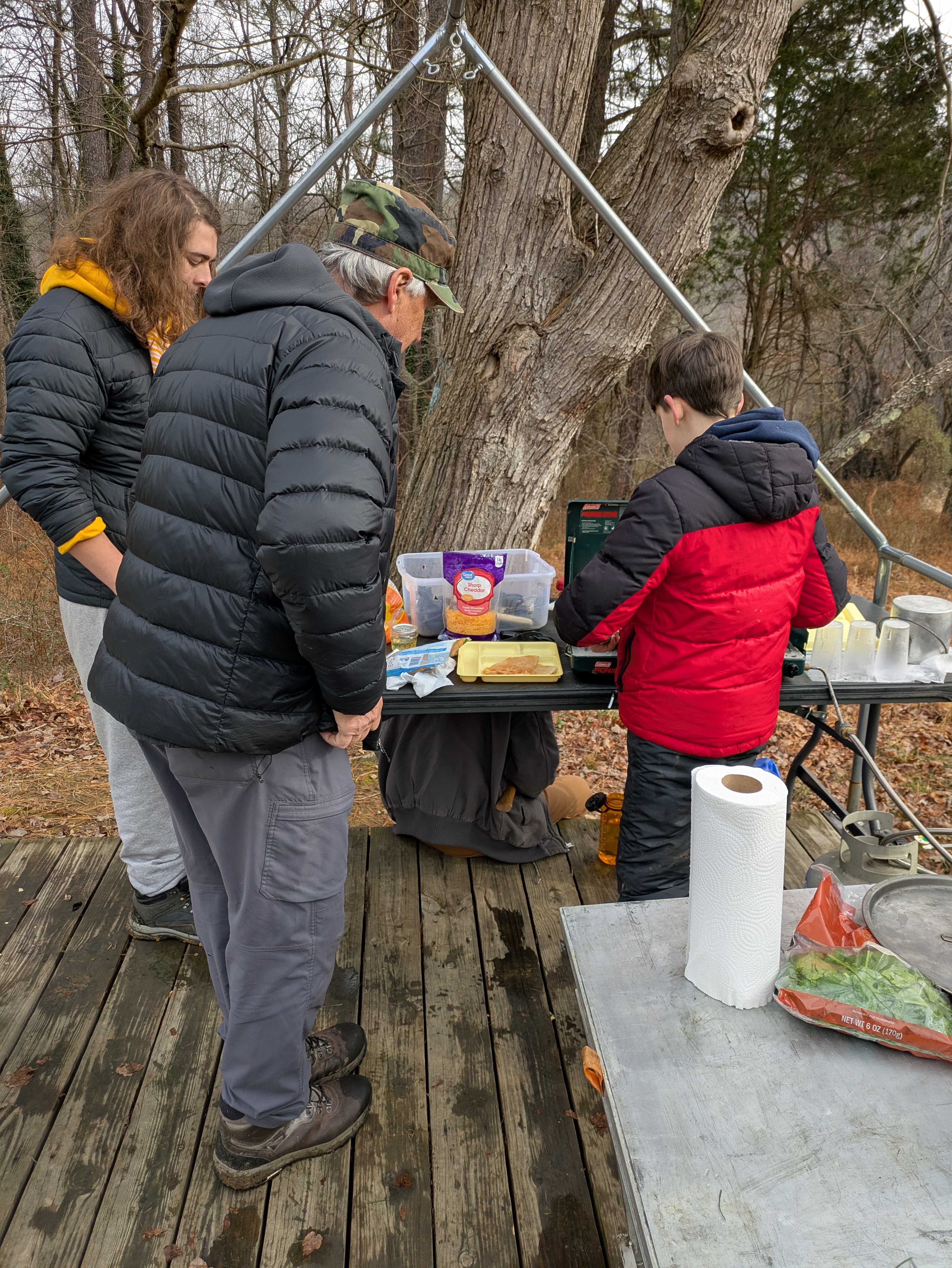 Senior Surprise took place at Camp Dan Beard, Broad Creek Memorial Scout Reservation, in Whiteford, MD on December 5-7, 2025. Friday evening we had snow on the ground and flurries while we were setting up camp. Temperatures dropped to 24°F on Saturday morning and 27°F on Sunday morning.Saturday was spent with the boys conquering the tasks set out in the Senior Surprise contest, which was a lot of fun for everyone. The clues added up to the theme of Song Fest. During the last song fest of 2025 around the campfire we had a special visit from Santa Claus.
