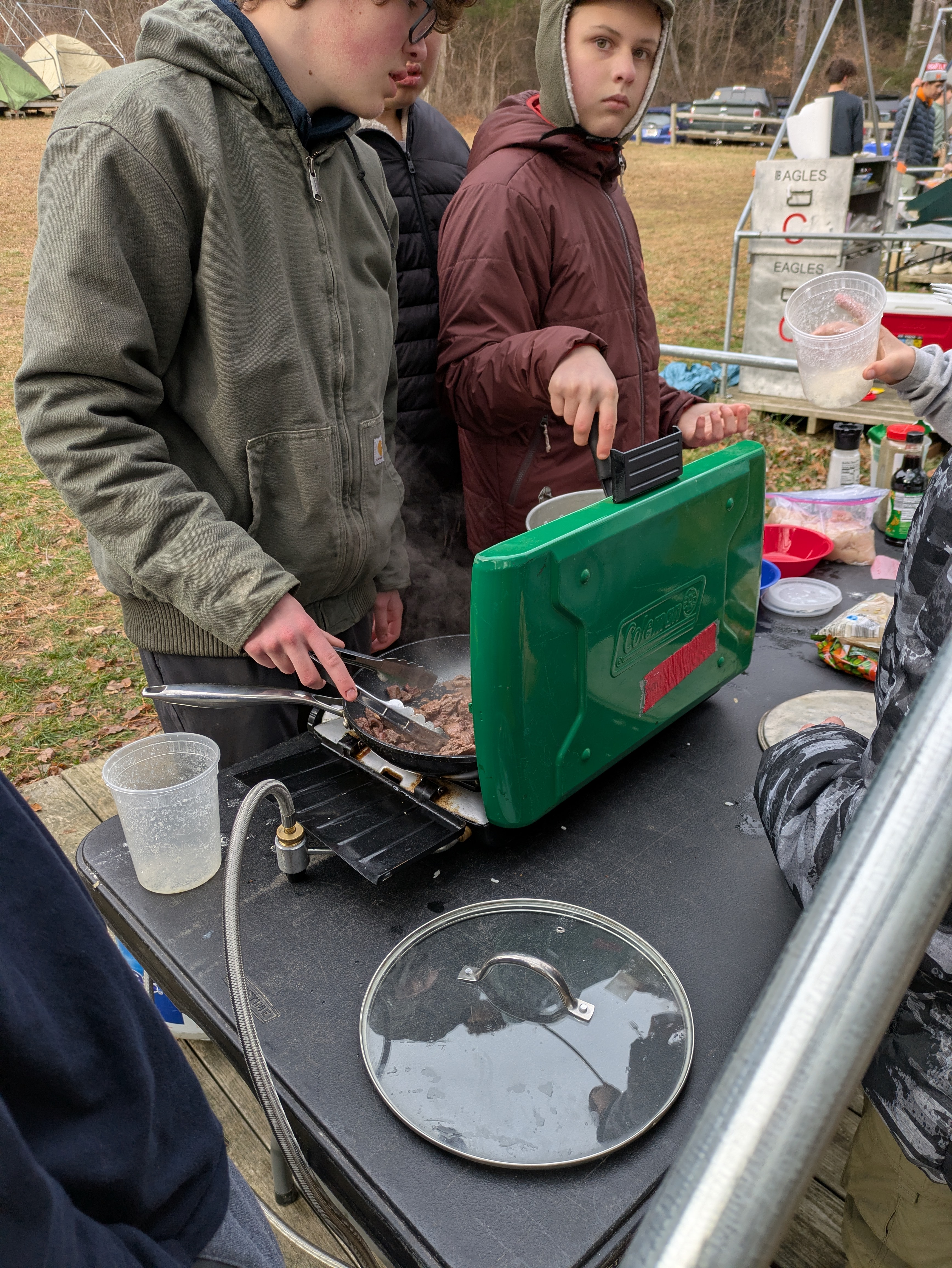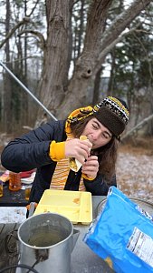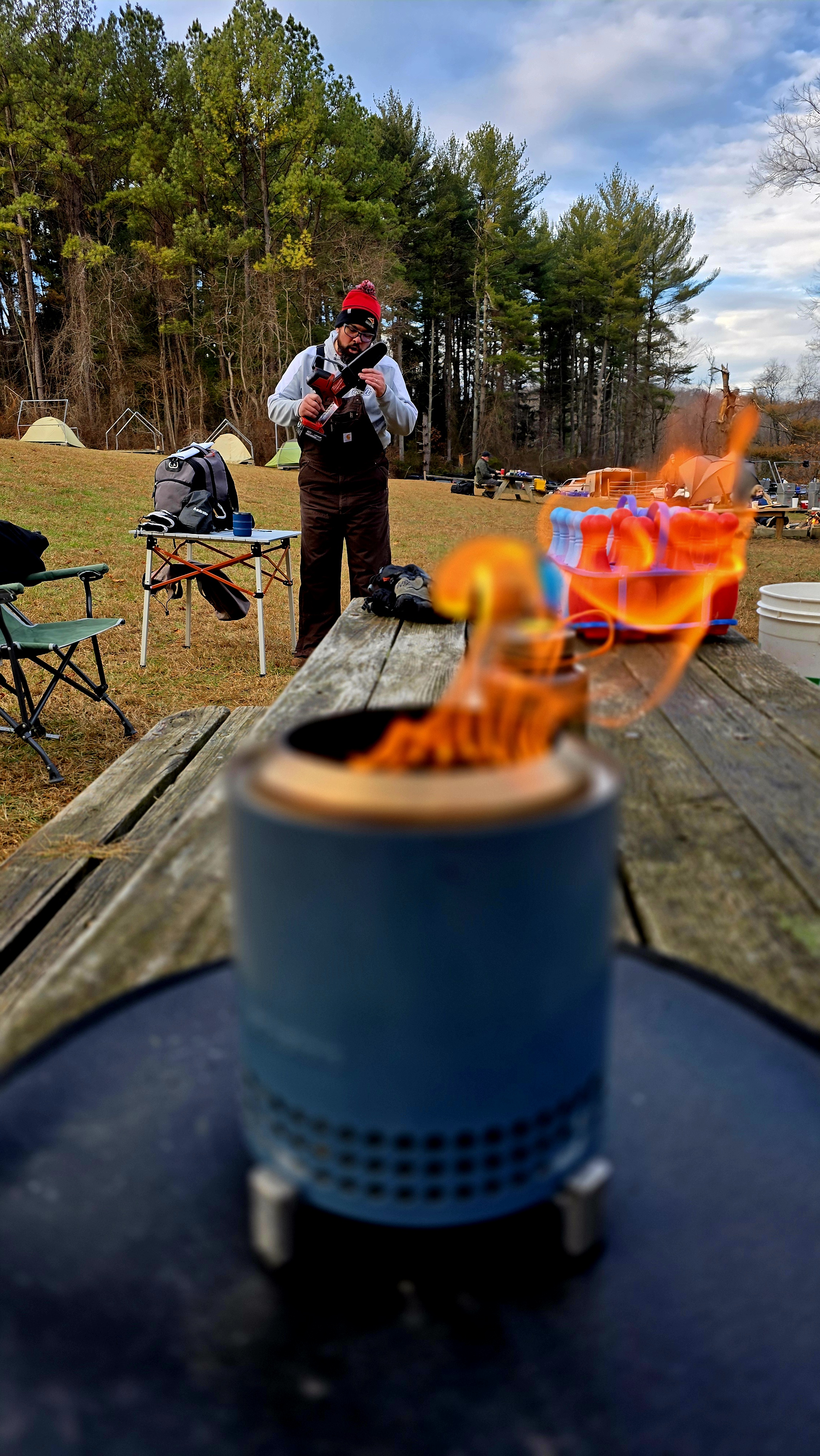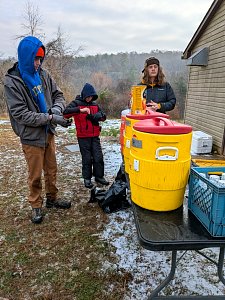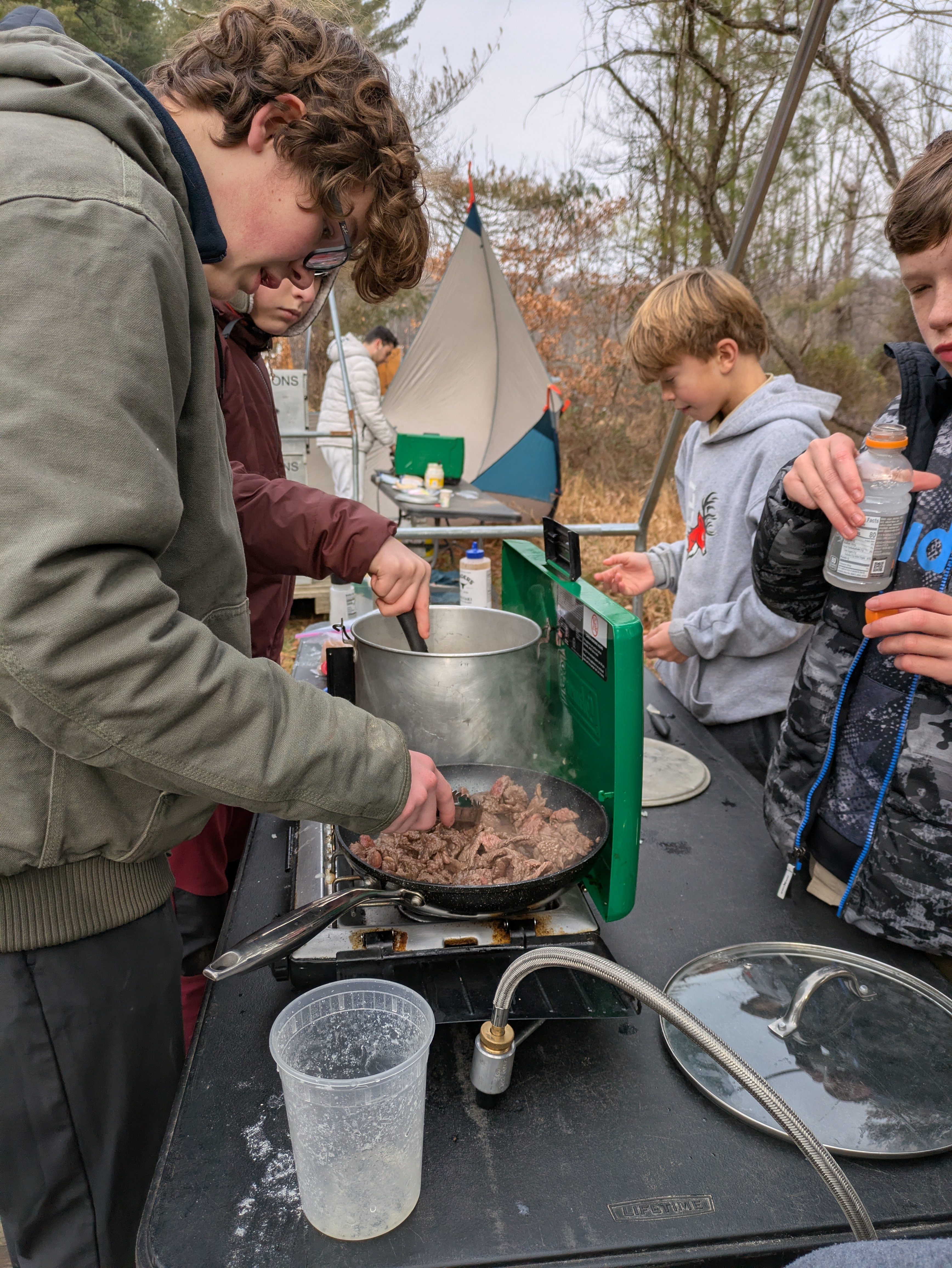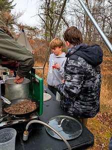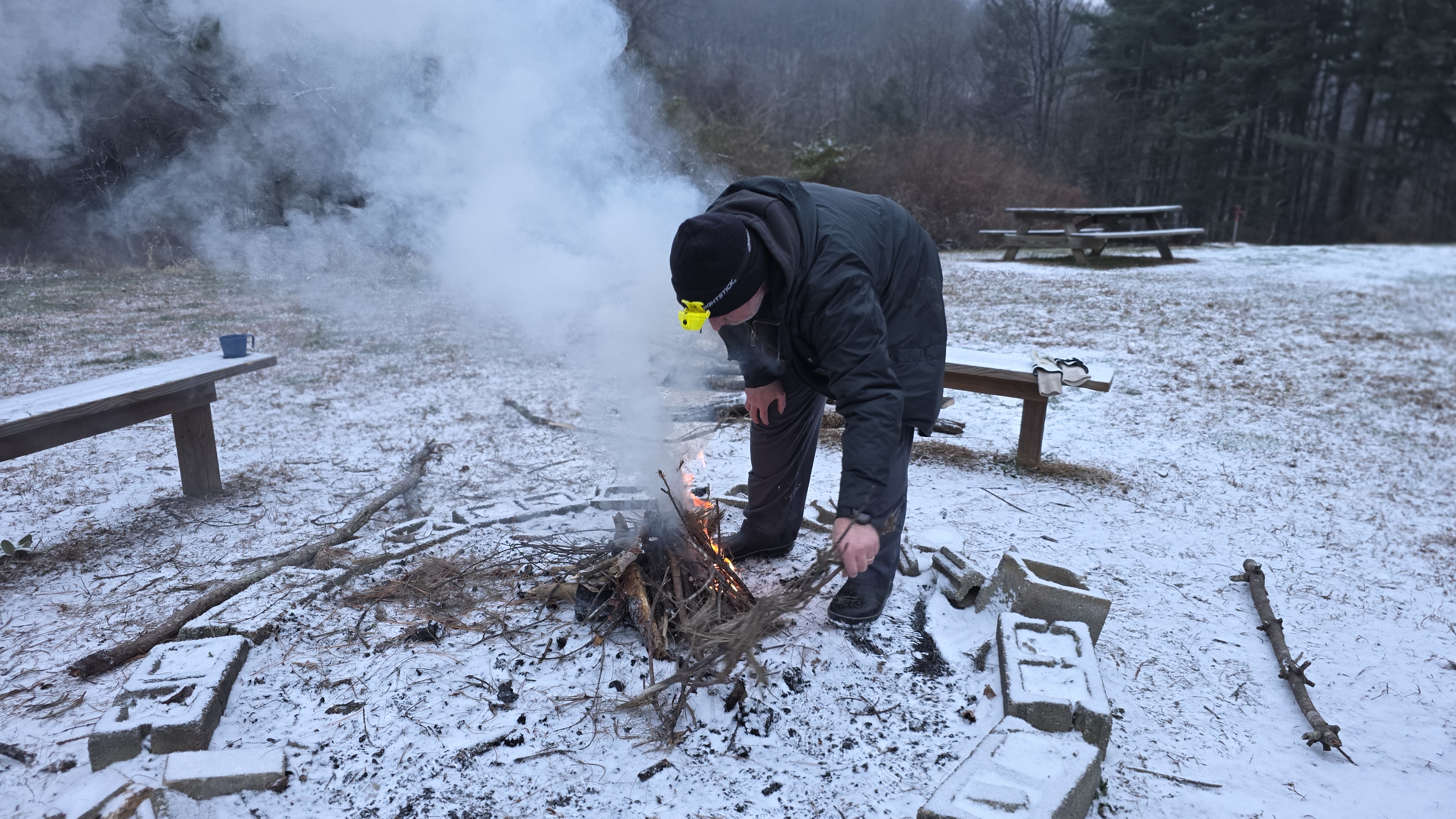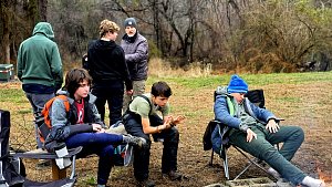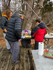 Senior Surprise took place at Camp Dan Beard, Broad Creek Memorial Scout Reservation, in Whiteford, MD on December 5-7, 2025. Friday evening we had snow on the ground and flurries while we were setting up camp. Temperatures dropped to 24°F on Saturday morning and 27°F on Sunday morning.Saturday was spent with the boys conquering the tasks set out in the Senior Surprise contest, which was a lot of fun for everyone. The clues added up to the theme of Song Fest. During the last song fest of 2025 around the campfire we had a special visit from Santa Claus.