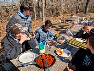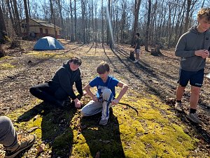 On 27 January - 1 March 2026 we camped at Camp at Rodney Scout Reservation, North East, MD. We stayed in Cabins Shawnee and Minsi and several adults tented. The eight adults who camped both nights and stayed in unheated accommodations earned 8 Texas Tough Points.The low temperature dropped to 25°F on Saturday with a high near 60°F. Sunday morning was warmer, 31°F.