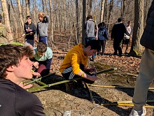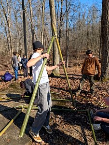 On Saturday morning some older scouts and adults taught the younger scouts how to make square, diagonal, tripod, and shear lashings. At the same time most of the older boys were practicing their lashing making various projects suing bamboo. After lunch we had some free time and time for advancement and PASS. Following that all the boys came together to lash a larger project out of bamboo and learned the importance of using triangle shapes in building project to prevent "racking".