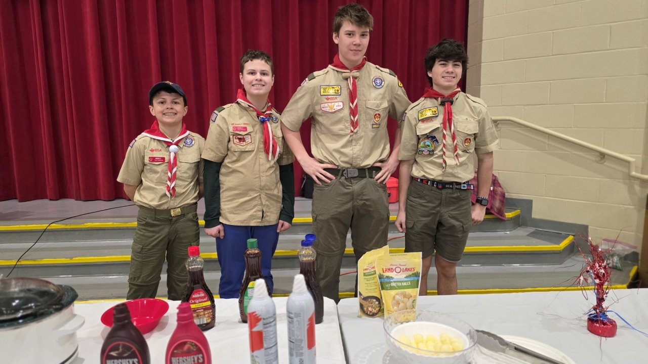 On 22 February 2026 Troop 497 held a Pancake Breakfast in the Multi-Purpose Room at St Joseph Parish in Texas, MD. Scouts, Parents, and Adults from the troop cooked and served pancakes and sausages for breakfast. There was also a bake table were guest could purchase baked goods. Proceeds from the event benefited the Troop and helps to support Scouting activities throughout the year.Click on a photograph to see the large, high quality version or right click and select the menu item to save it to your disk. Contact the photographers for even higher resolution images. Email Webmaster if you would like to contribute additional photographs.