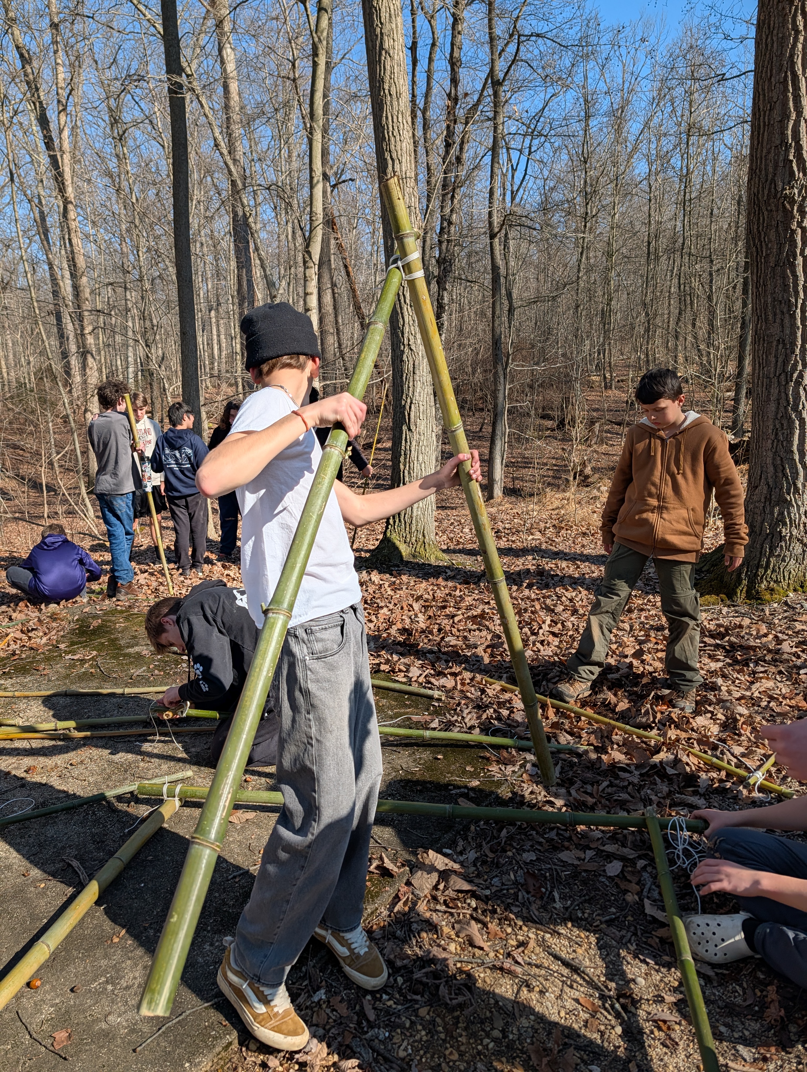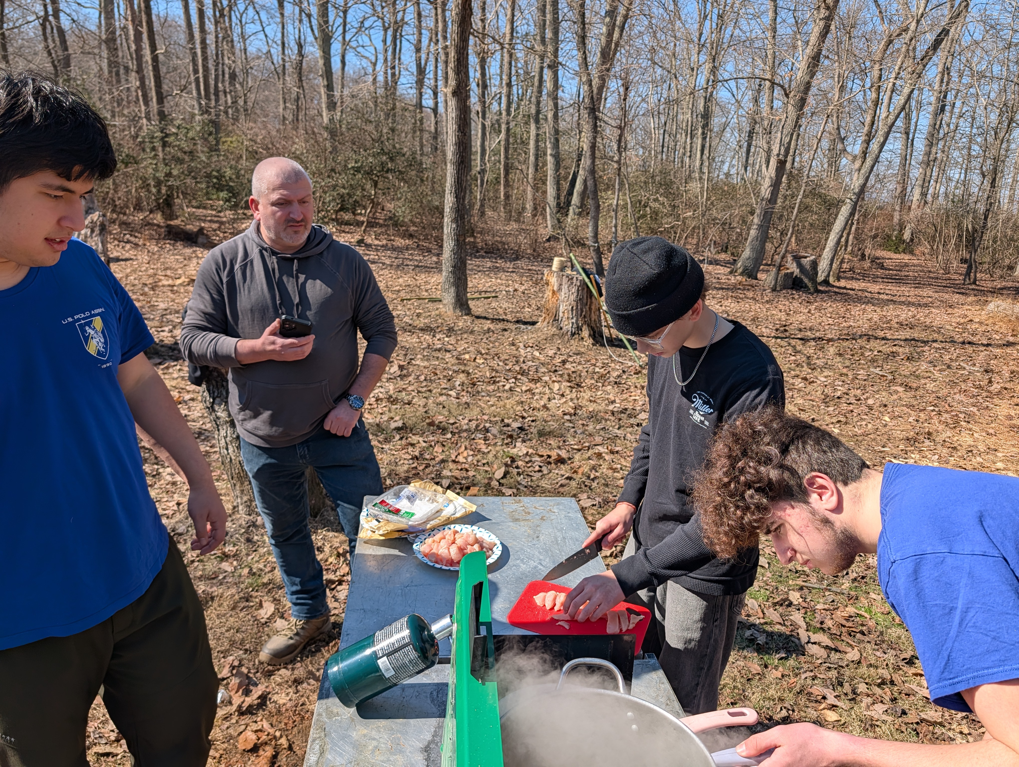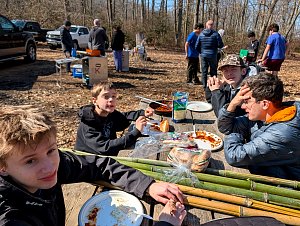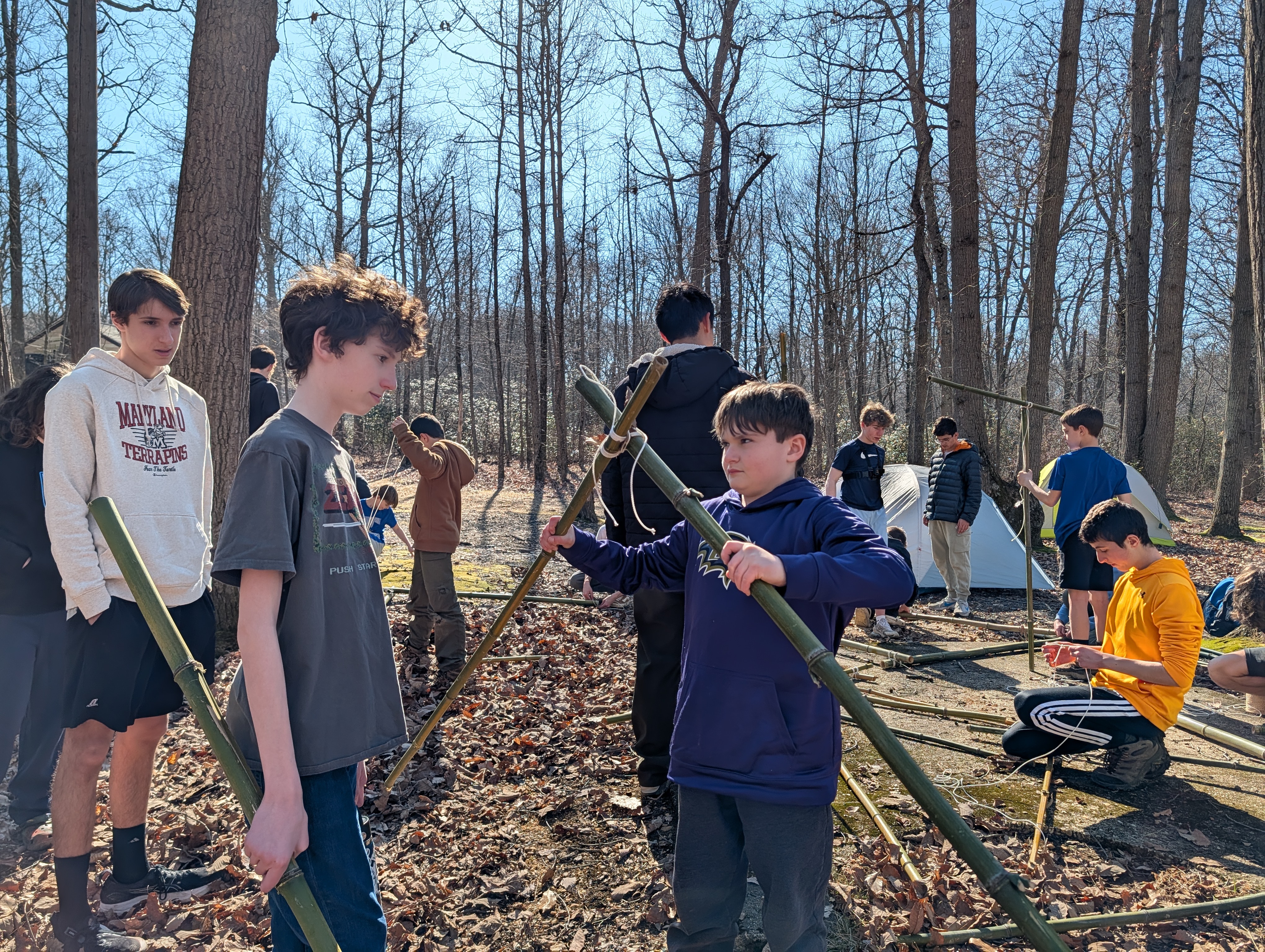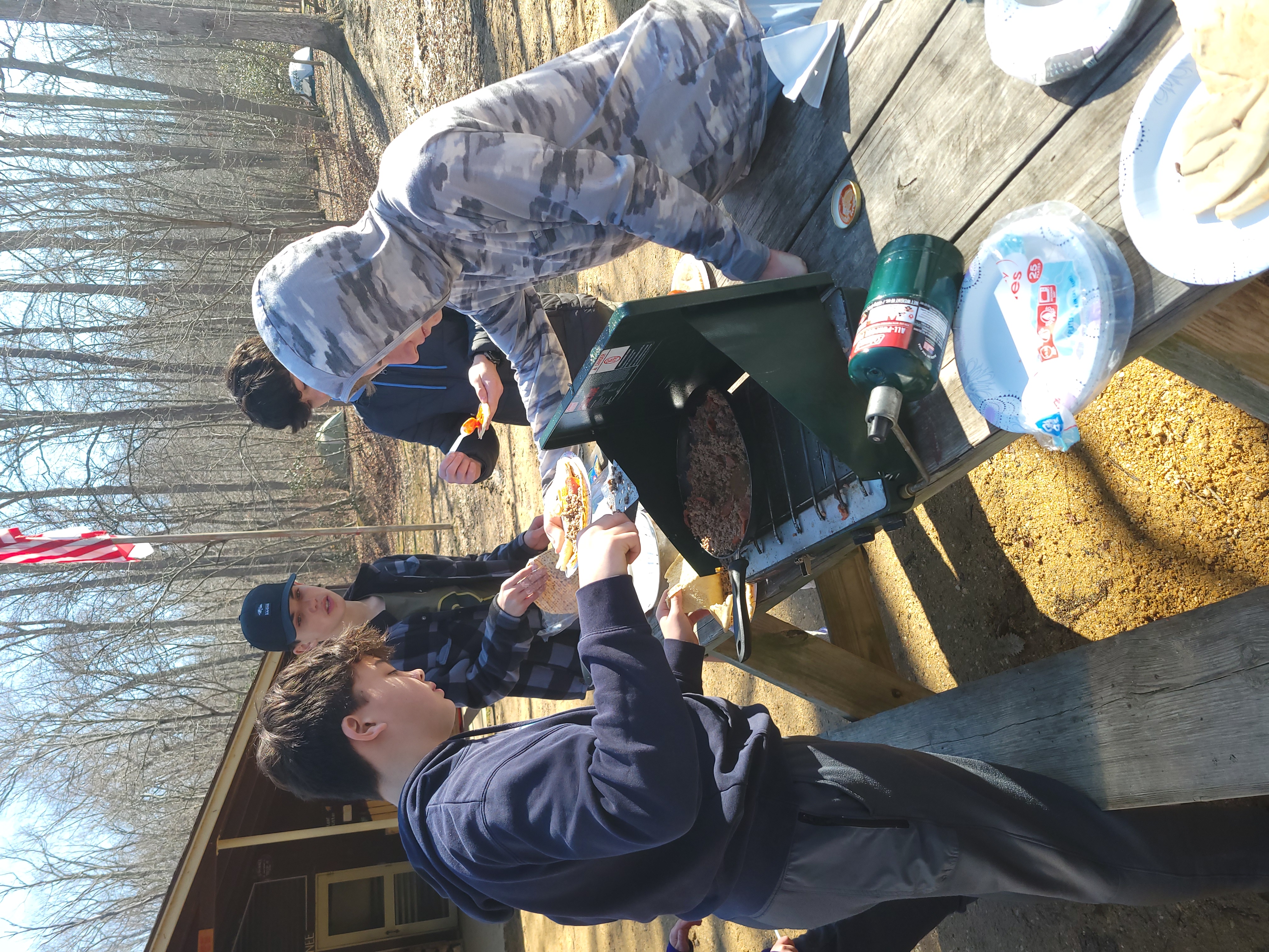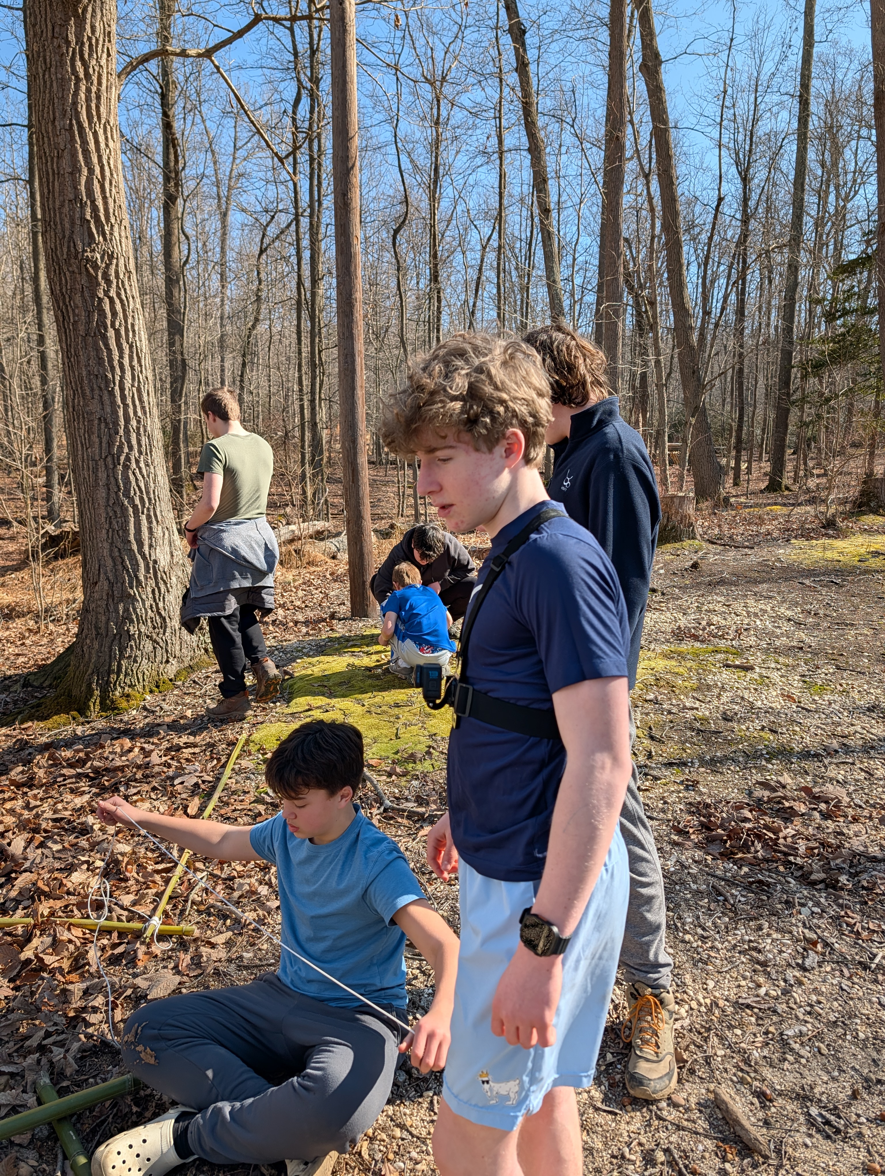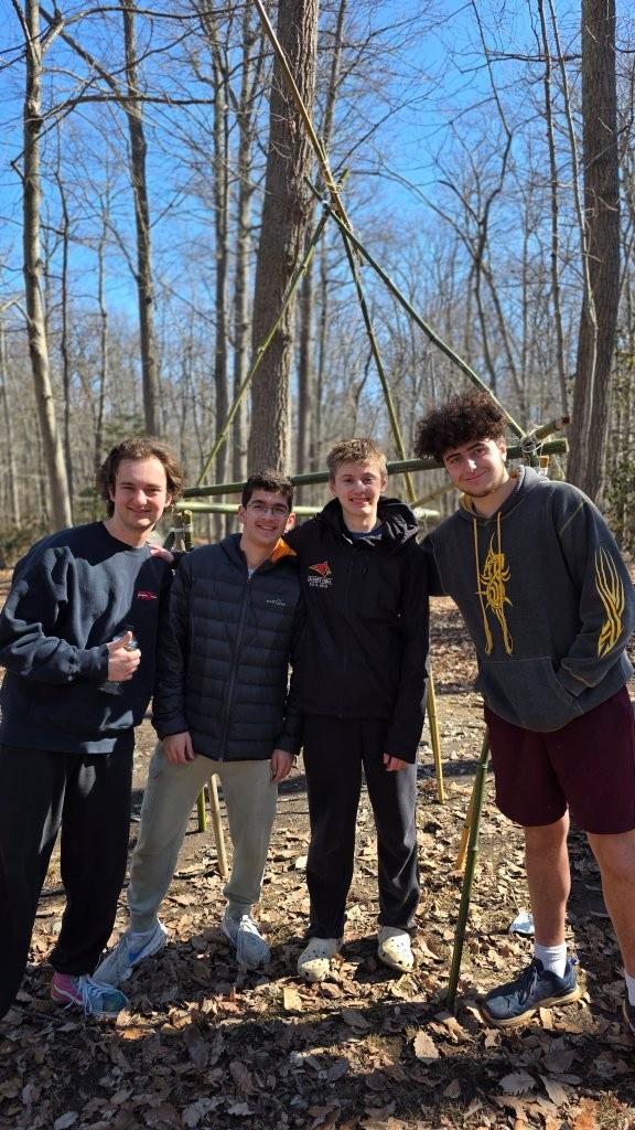 On 27 January - 1 March 2026 we camped at Camp at Rodney Scout Reservation, North East, MD. We stayed in Cabins Shawnee and Minsi and several adults tented. The eight adults who camped both nights and stayed in unheated accommodations earned 8 Texas Tough Points.The low temperature dropped to 25°F on Saturday with a high near 60°F. Sunday morning was warmer, 31°F.On Saturday morning some older scouts and adults taught the younger scouts how to make square, diagonal, tripod, and shear lashings. At the same time most of the older boys were practicing their lashing making various projects suing bamboo. After lunch we had some free time and time for advancement and PASS. Following that all the boys came together to lash a larger project out of bamboo and learned the importance of using triangle shapes in building project to prevent "racking".