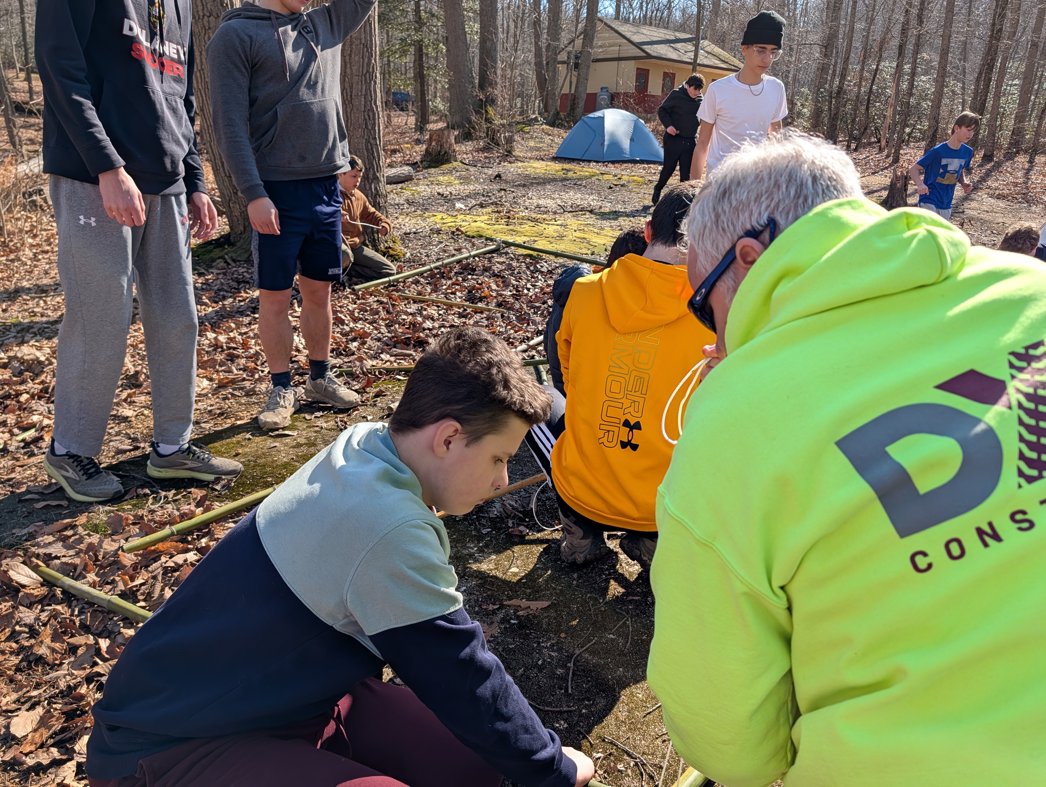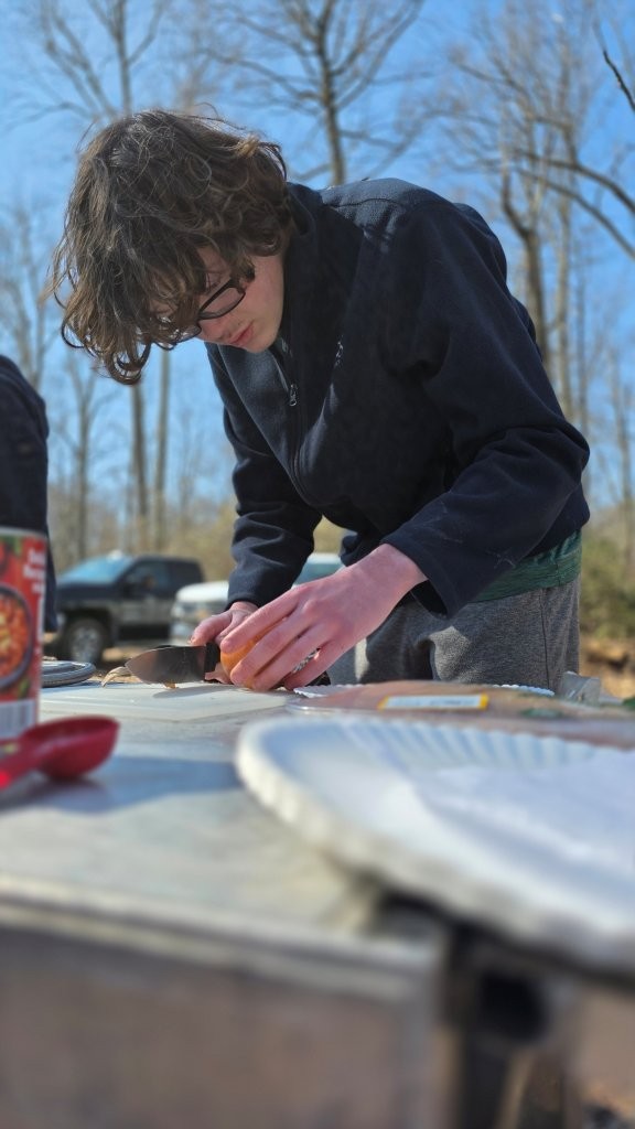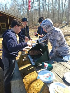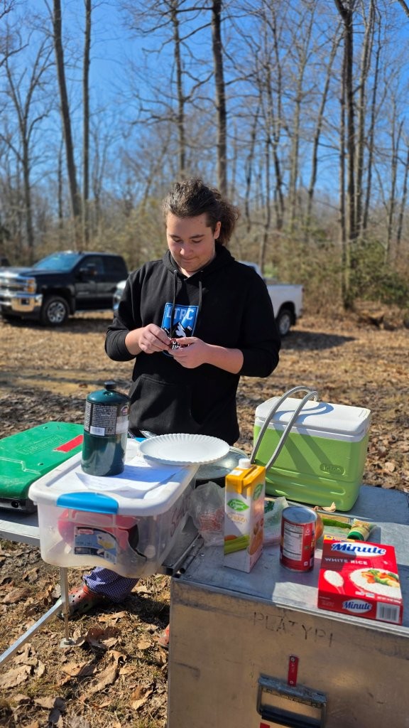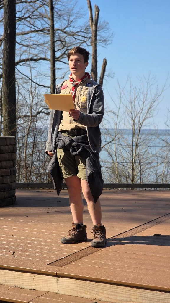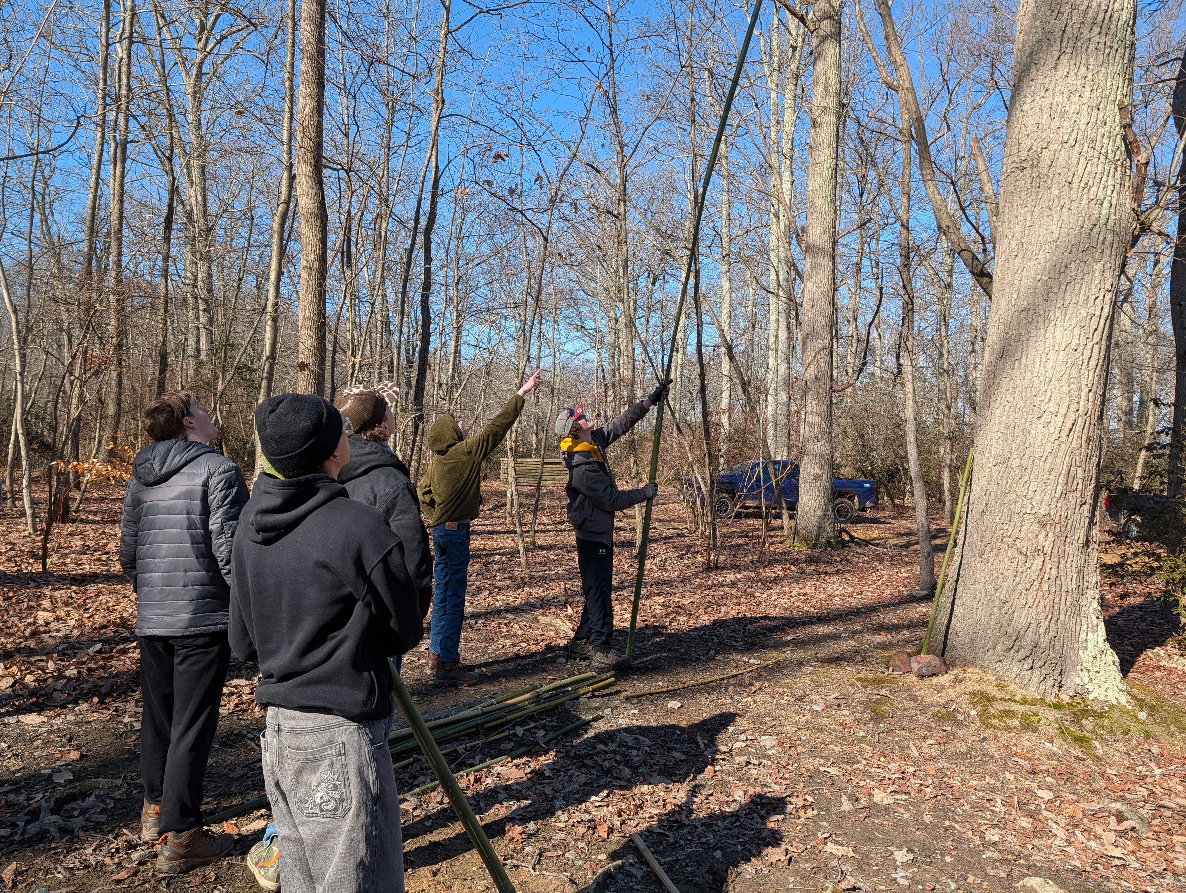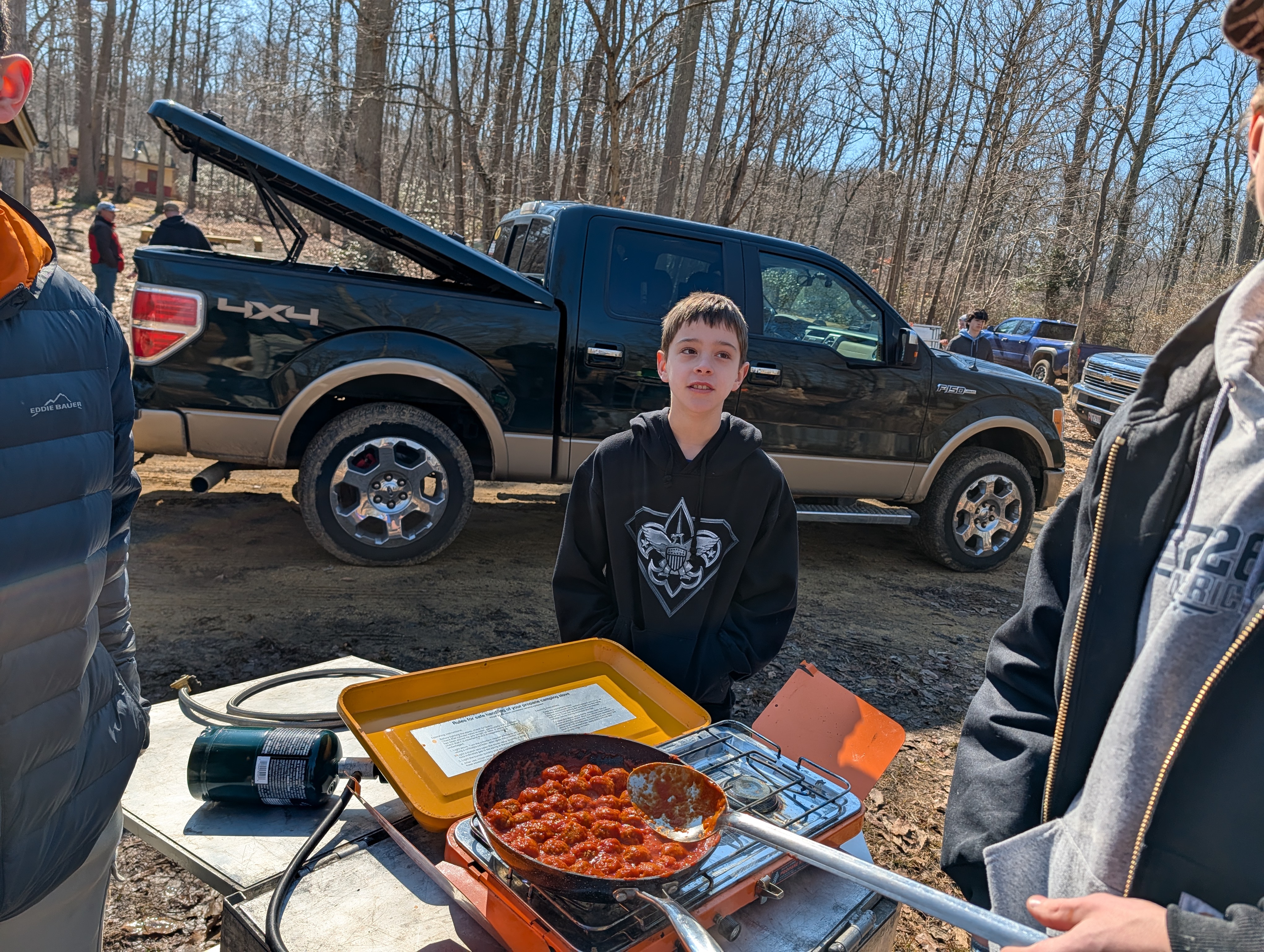 On 27 January - 1 March 2026 we camped at Camp at Rodney Scout Reservation, North East, MD. We stayed in Cabins Shawnee and Minsi and several adults tented. The eight adults who camped both nights and stayed in unheated accommodations earned 8 Texas Tough Points.The low temperature dropped to 25°F on Saturday with a high near 60°F. Sunday morning was warmer, 31°F.On Saturday morning some older scouts and adults taught the younger scouts how to make square, diagonal, tripod, and shear lashings. At the same time most of the older boys were practicing their lashing making various projects suing bamboo. After lunch we had some free time and time for advancement and PASS. Following that all the boys came together to lash a larger project out of bamboo and learned the importance of using triangle shapes in building project to prevent "racking".