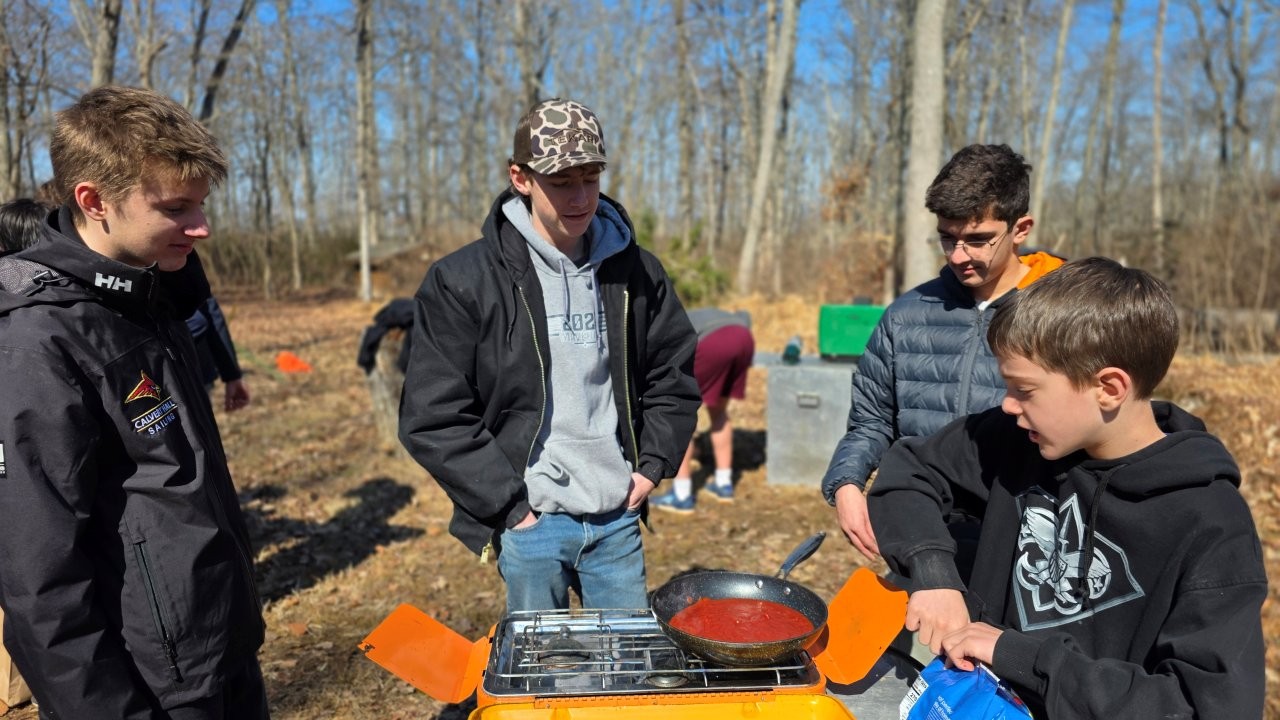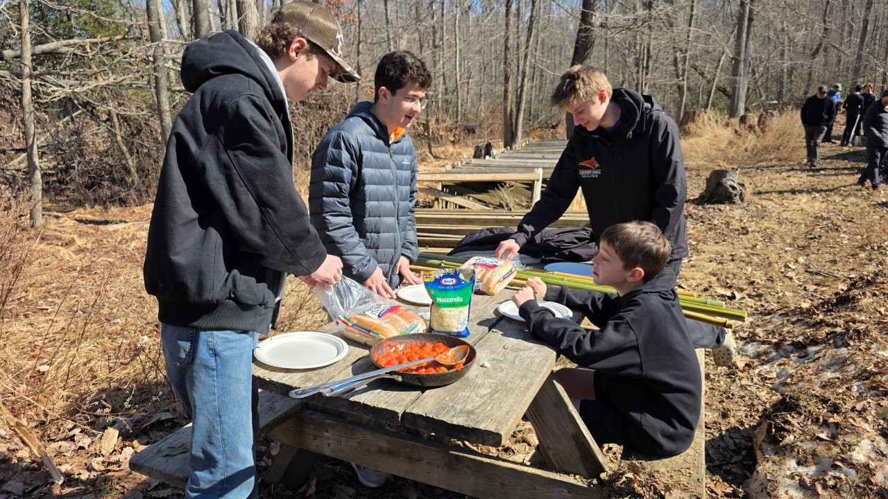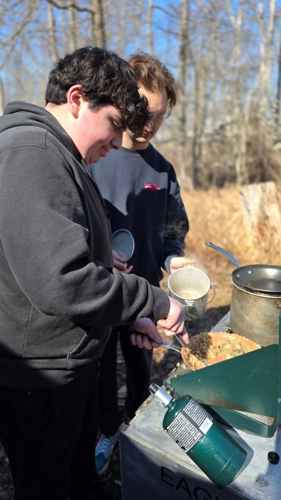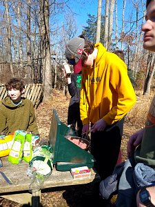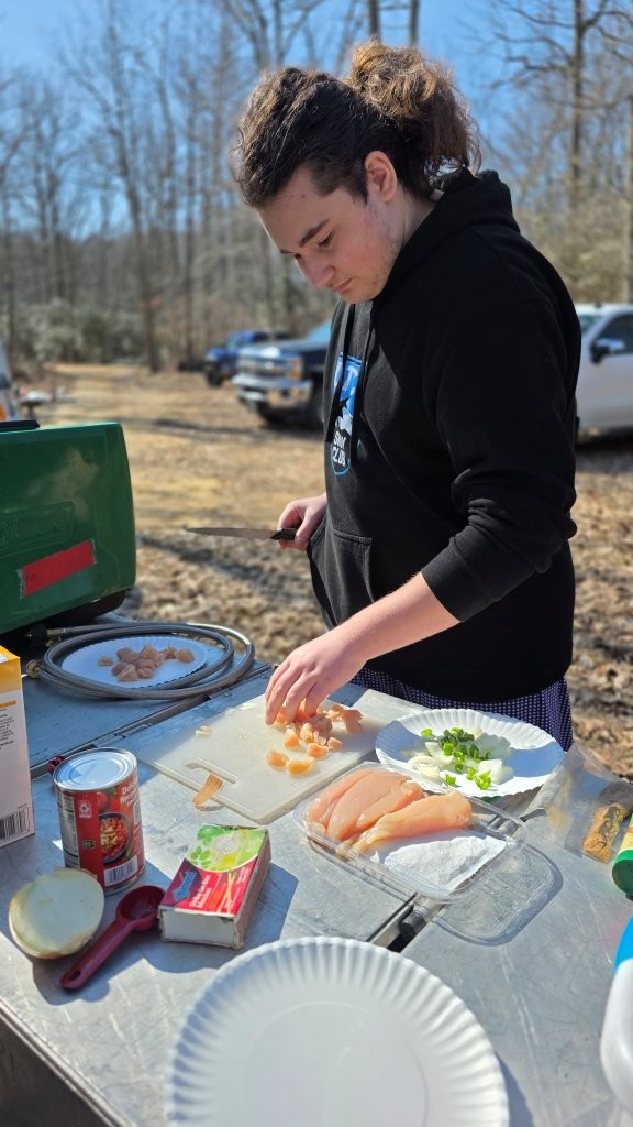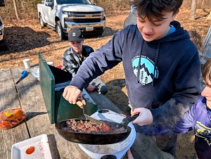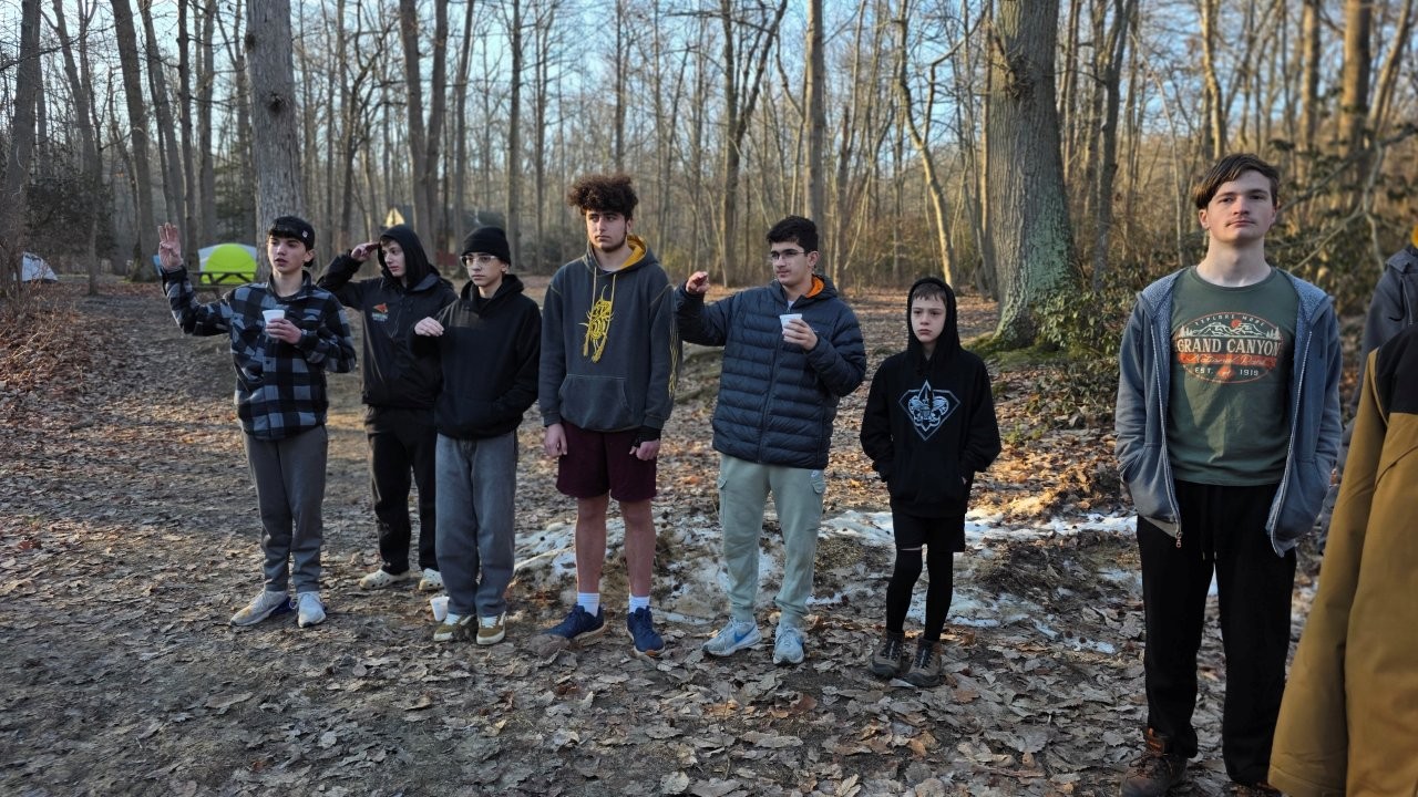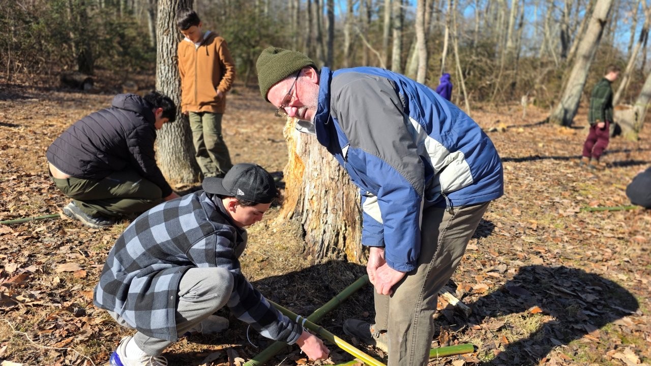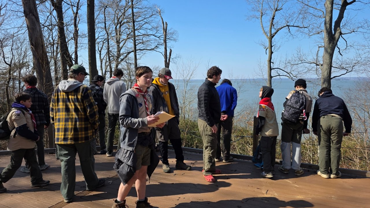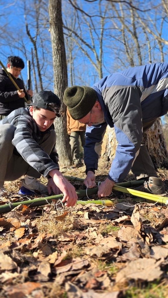On 27 January - 1 March 2026 we camped at Camp at Rodney Scout Reservation, North East, MD. We stayed in Cabins Shawnee and Minsi and several adults tented. The eight adults who camped both nights and stayed in unheated accommodations earned 8 Texas Tough Points.The low temperature dropped to 25°F on Saturday with a high near 60°F. Sunday morning was warmer, 31°F.On Saturday morning some older scouts and adults taught the younger scouts how to make square, diagonal, tripod, and shear lashings. At the same time most of the older boys were practicing their lashing making various projects suing bamboo. After lunch we had some free time and time for advancement and PASS. Following that all the boys came together to lash a larger project out of bamboo and learned the importance of using triangle shapes in building project to prevent "racking".