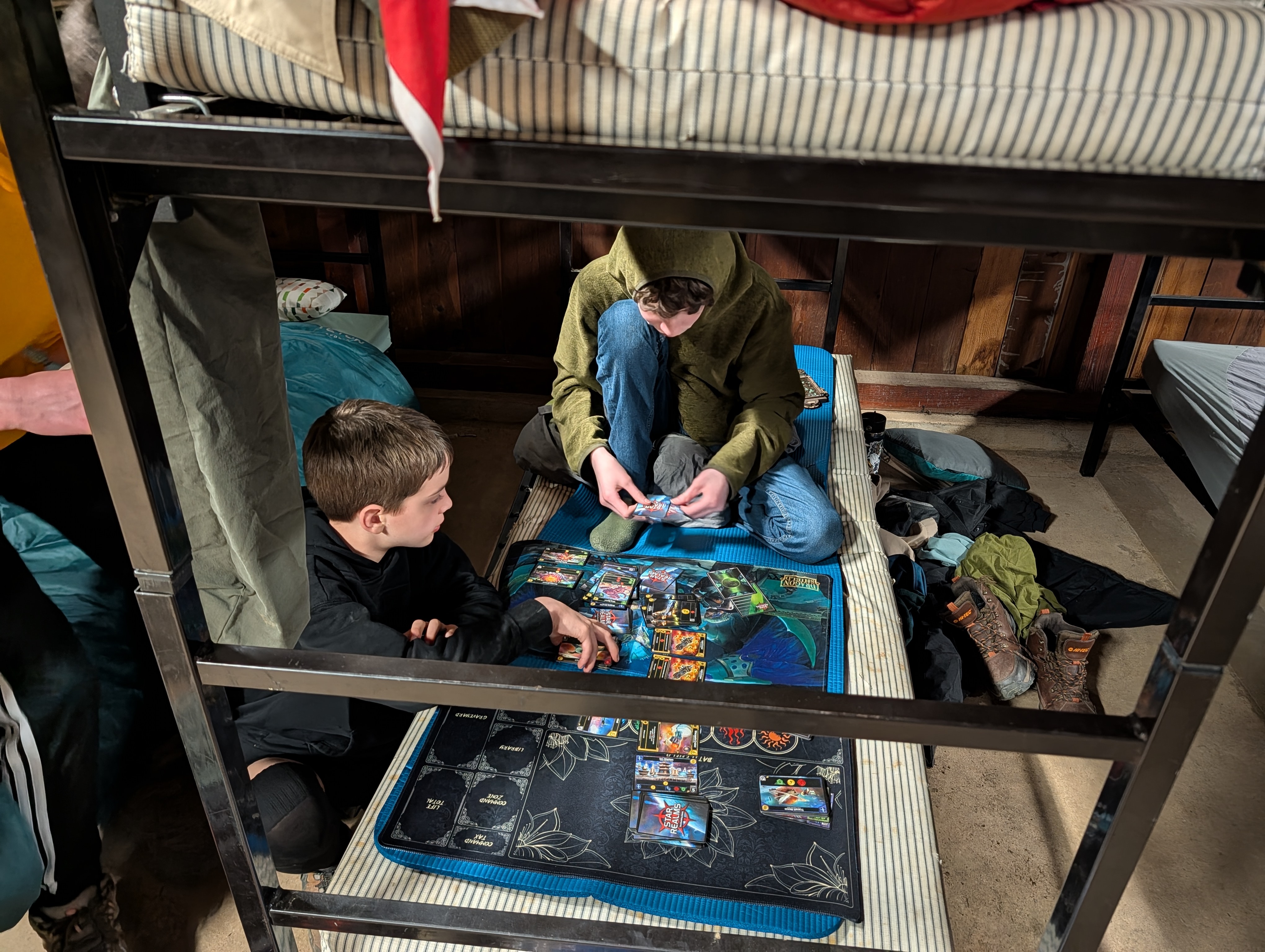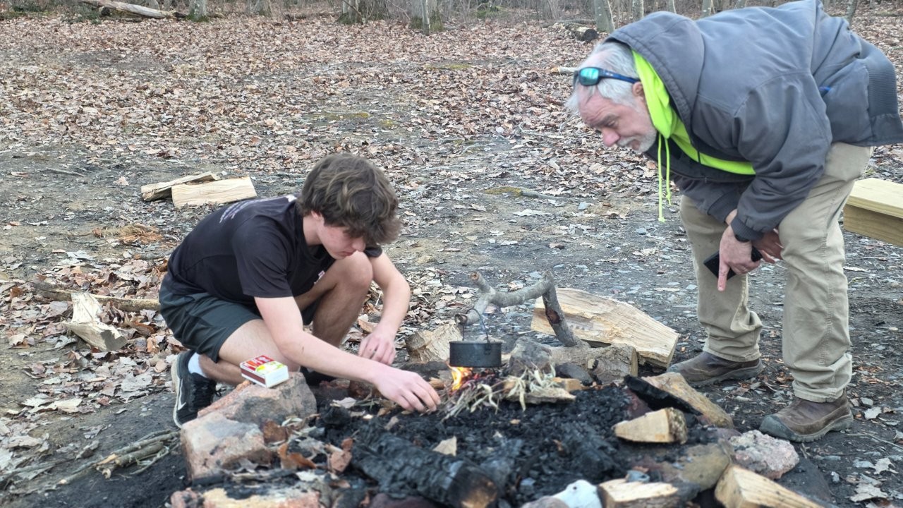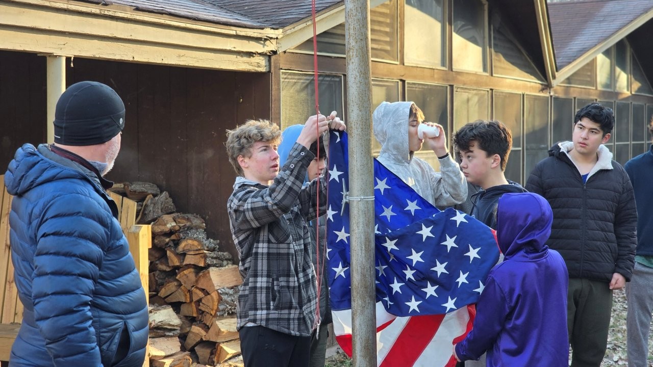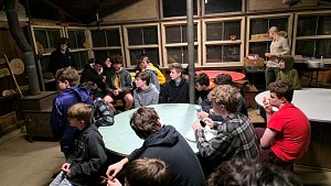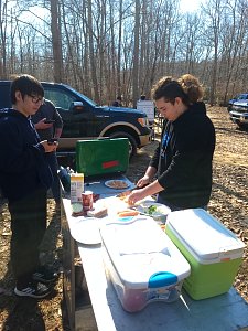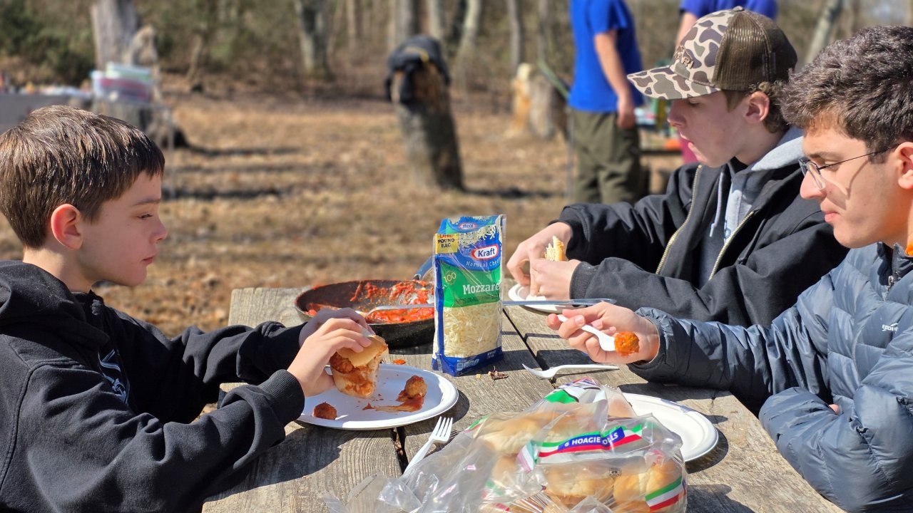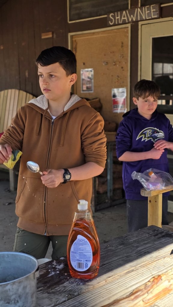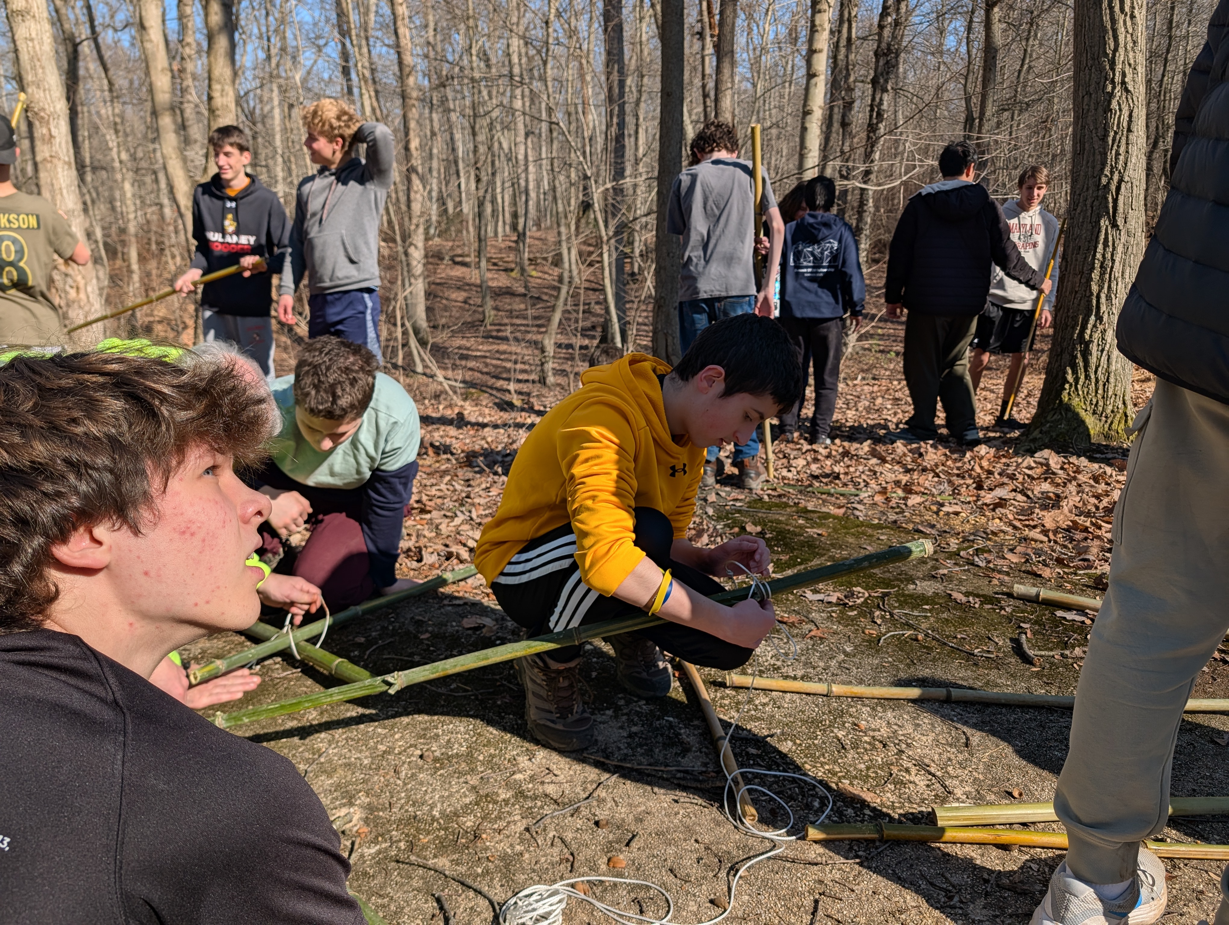 On 27 January - 1 March 2026 we camped at Camp at Rodney Scout Reservation, North East, MD. We stayed in Cabins Shawnee and Minsi and several adults tented. The eight adults who camped both nights and stayed in unheated accommodations earned 8 Texas Tough Points.The low temperature dropped to 25°F on Saturday with a high near 60°F. Sunday morning was warmer, 31°F.On Saturday morning some older scouts and adults taught the younger scouts how to make square, diagonal, tripod, and shear lashings. At the same time most of the older boys were practicing their lashing making various projects suing bamboo. After lunch we had some free time and time for advancement and PASS. Following that all the boys came together to lash a larger project out of bamboo and learned the importance of using triangle shapes in building project to prevent "racking".